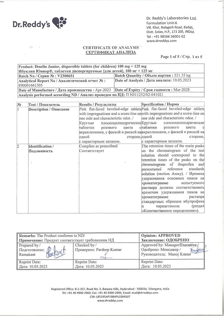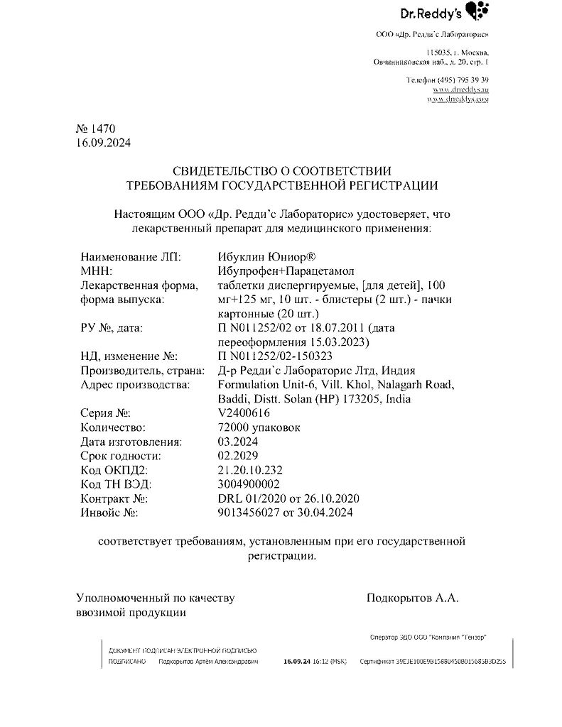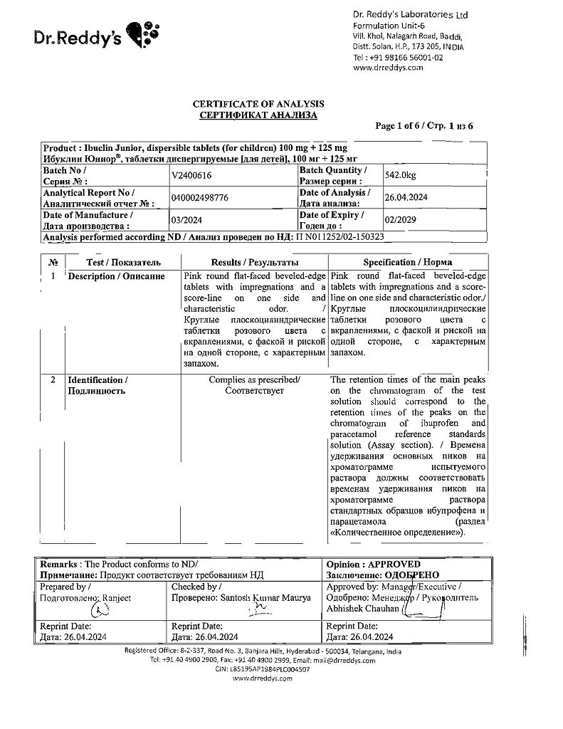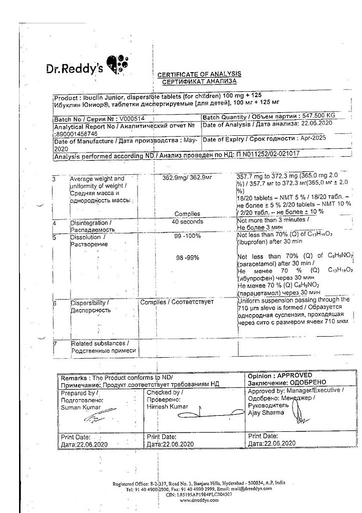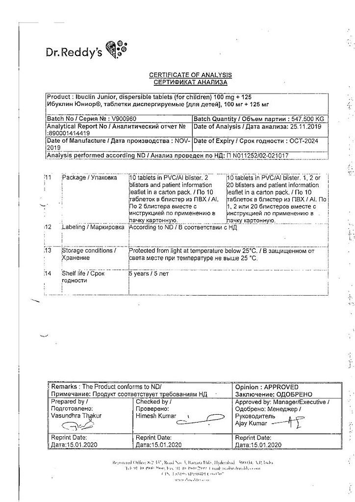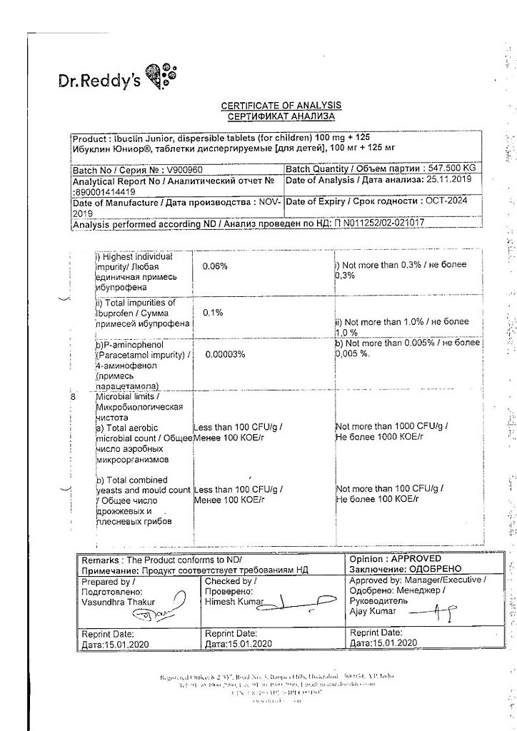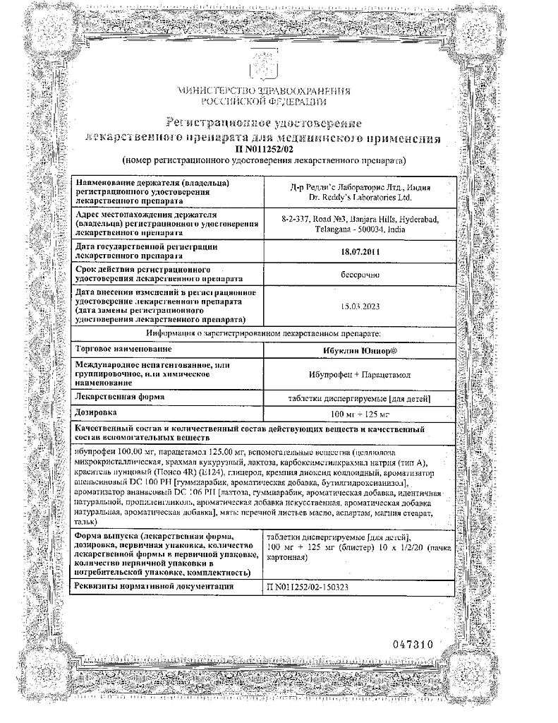 Документы Ибуклин Юниор таблетки диспергируемые 100 мг+125 мг 20 шт