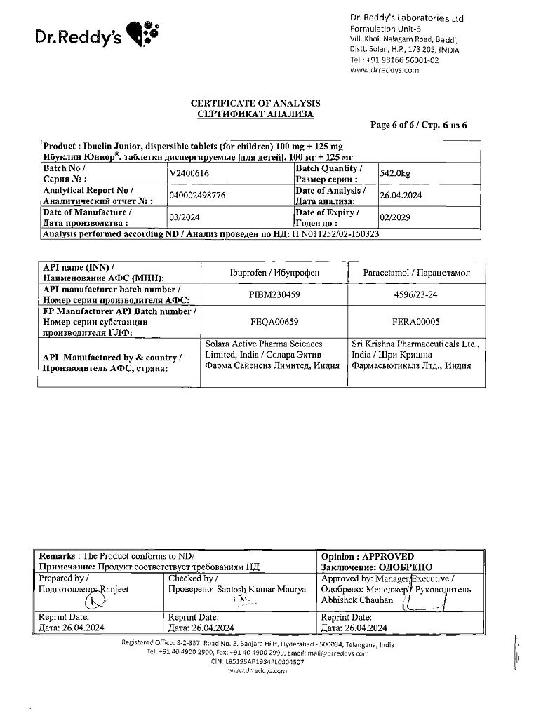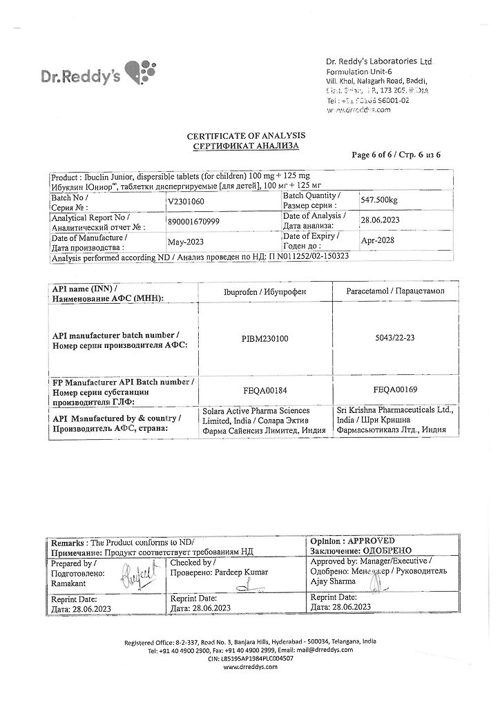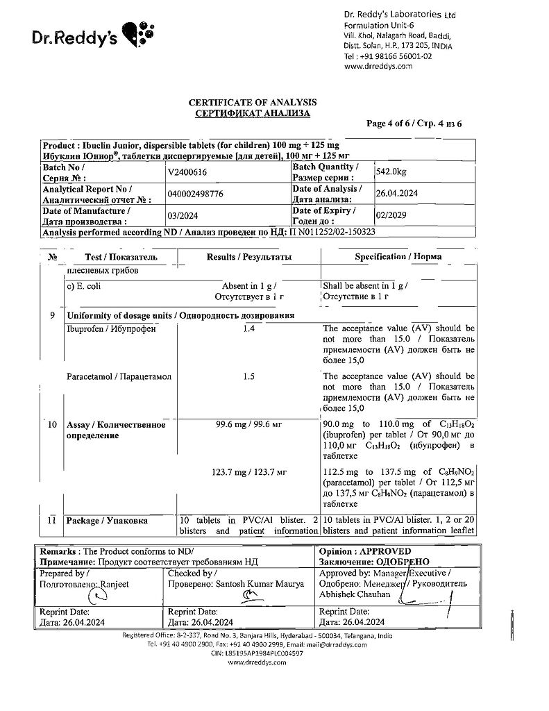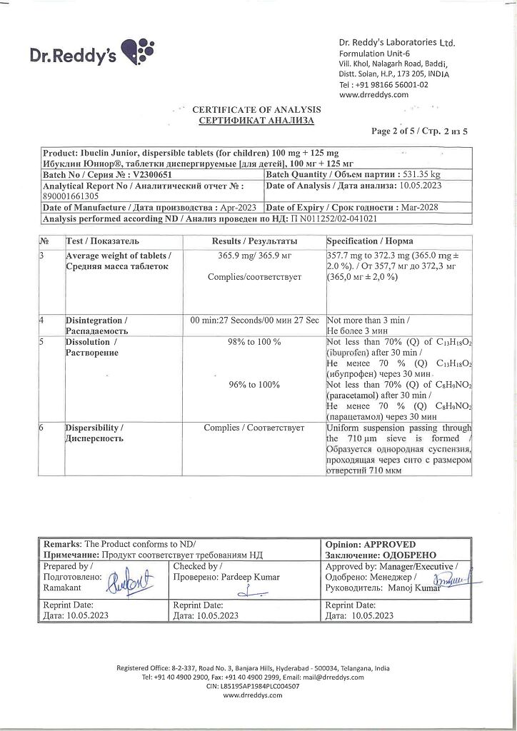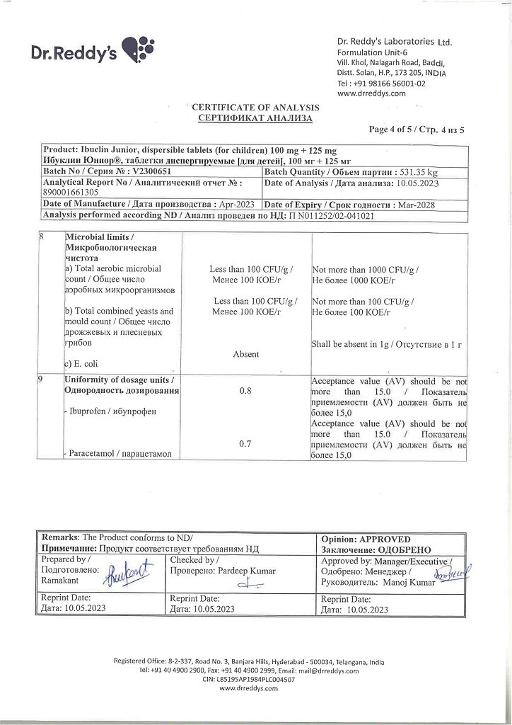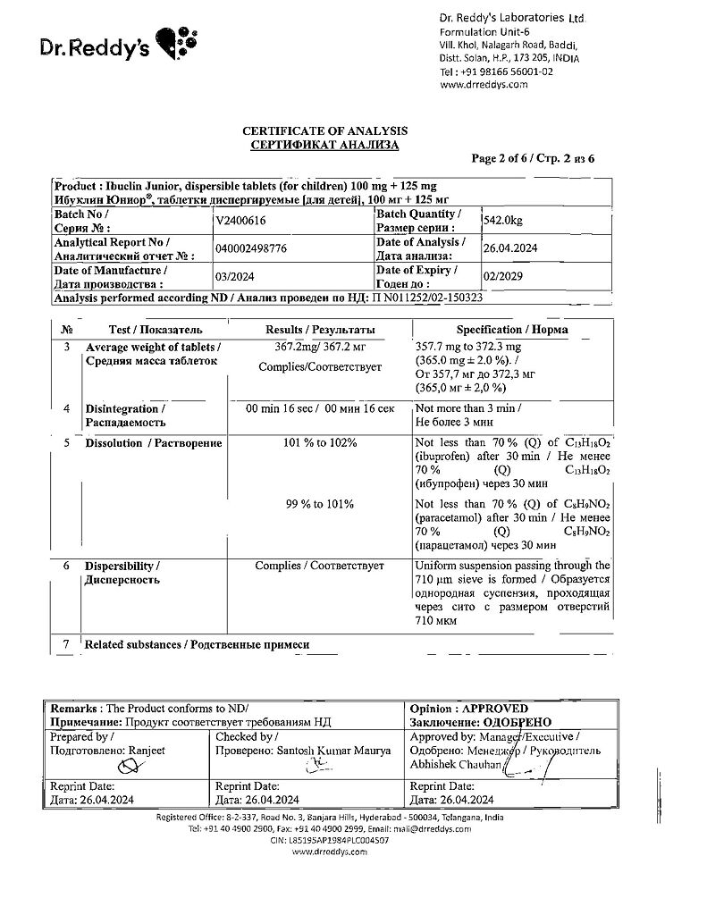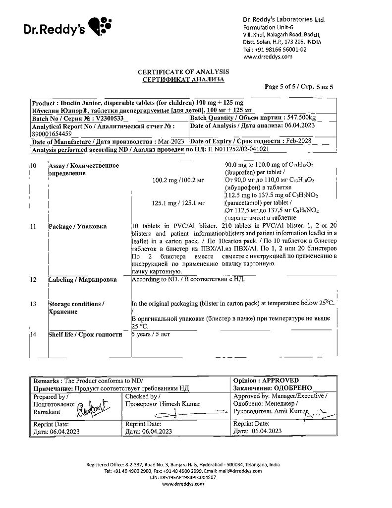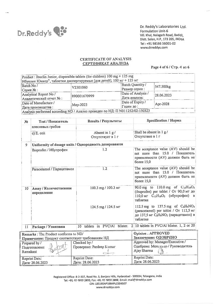 Документы Ибуклин Юниор таблетки диспергируемые 100 мг+125 мг 20 шт