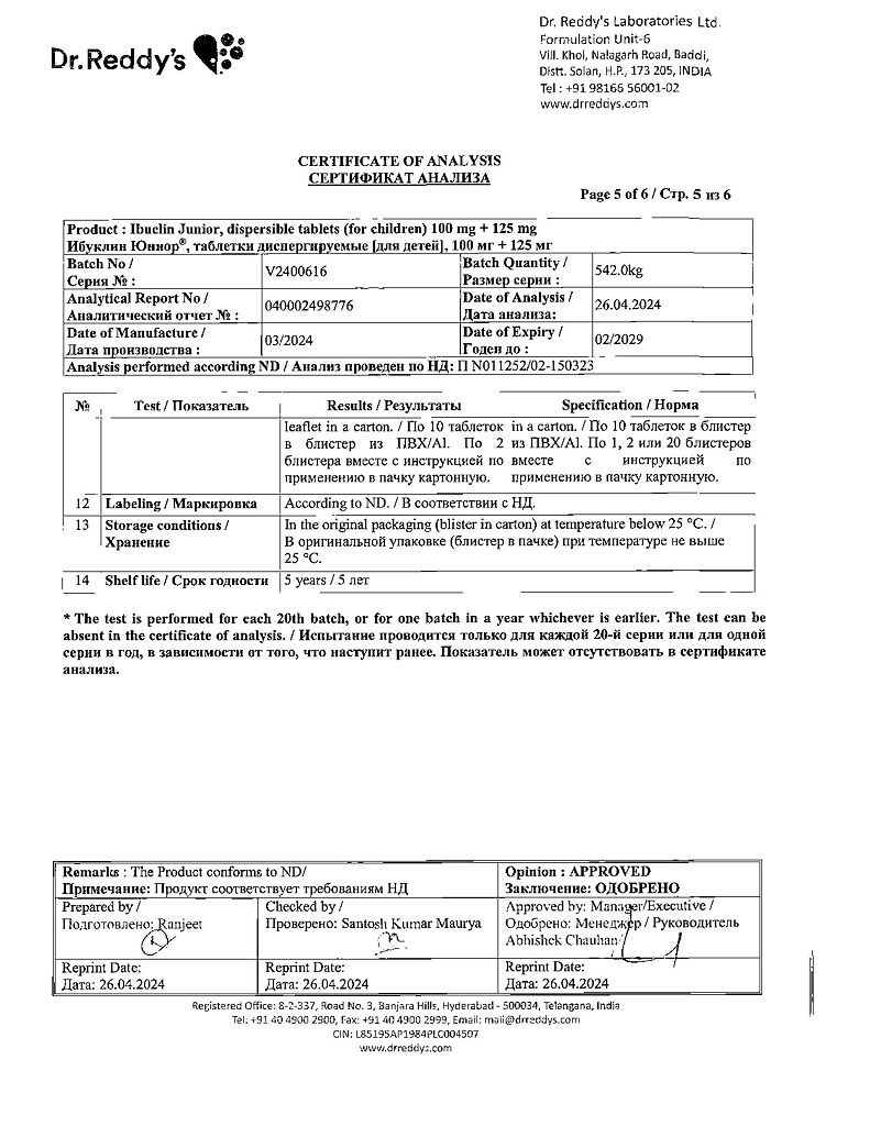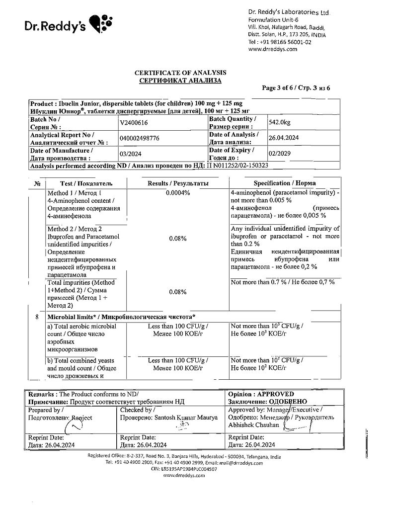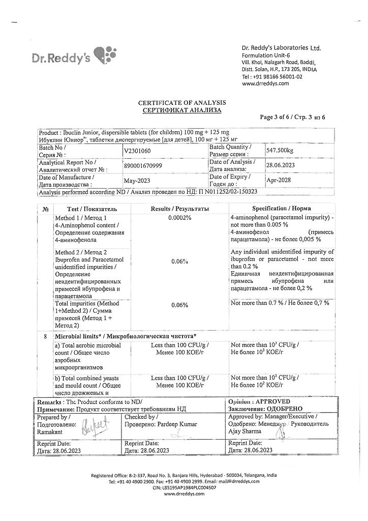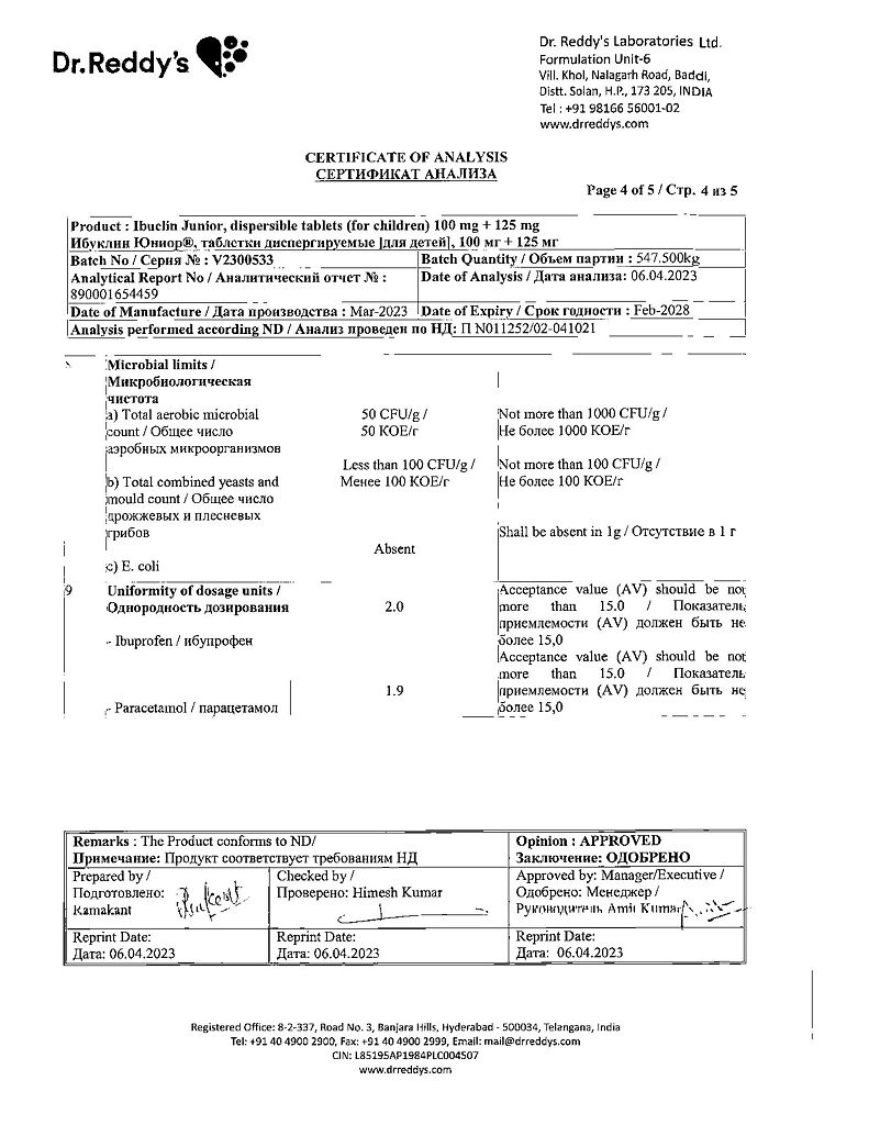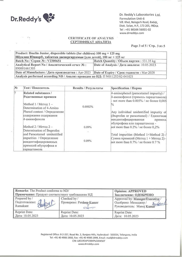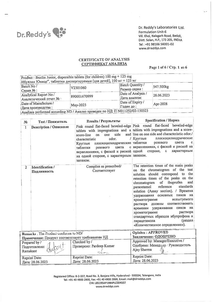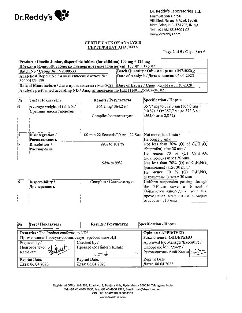 Документы Ибуклин Юниор таблетки диспергируемые 100 мг+125 мг 20 шт