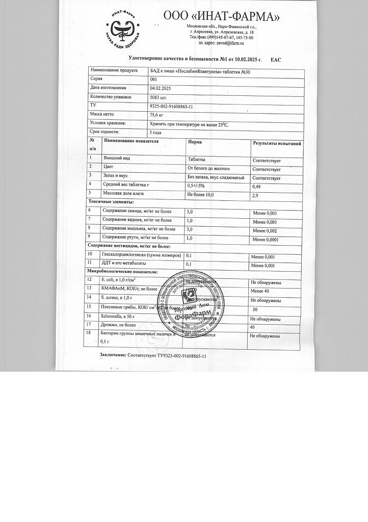 Документы Послабин Лактулоза таблетки массой 500 мг 30 шт