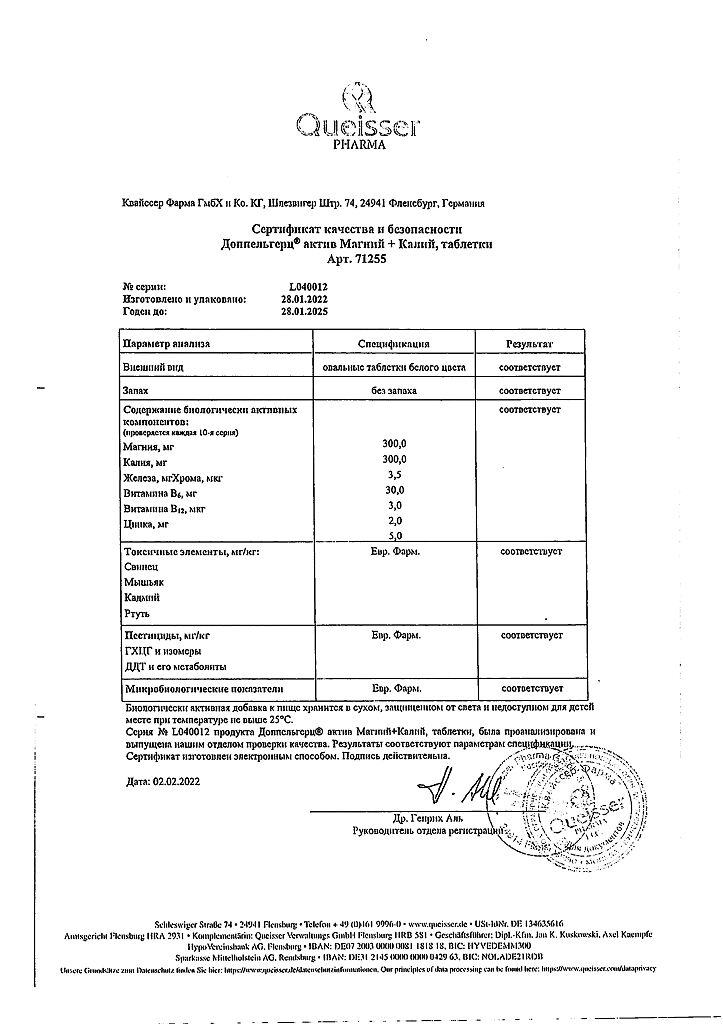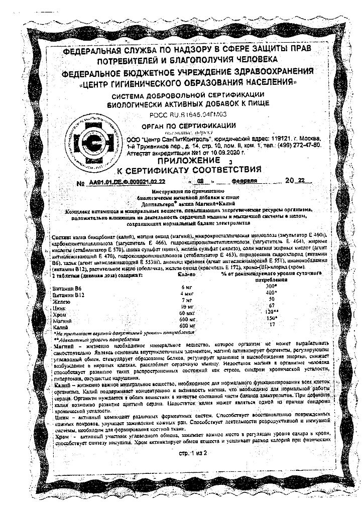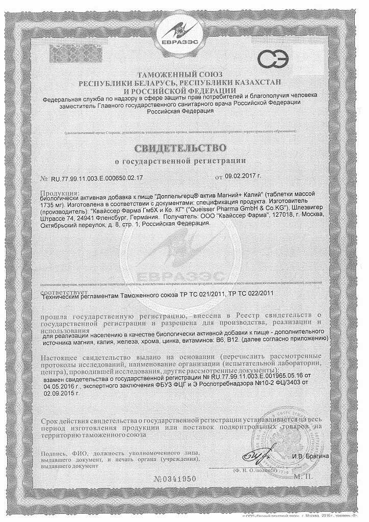 Документы Доппельгерц Актив Магний+Калий таблетки массой 1770 мг 30 шт
