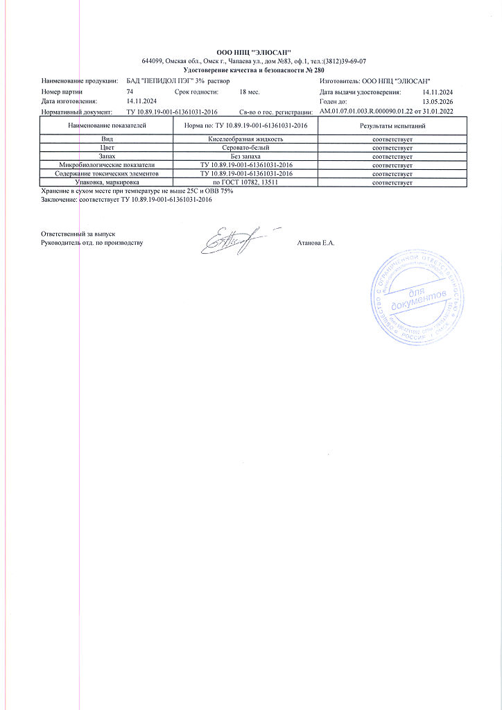 ООО НПЦ «ЭЛЮСАН» 644099, Российская Федерация, Омская область, г. Омск, ул. Чапаева, д. 83, офис 1