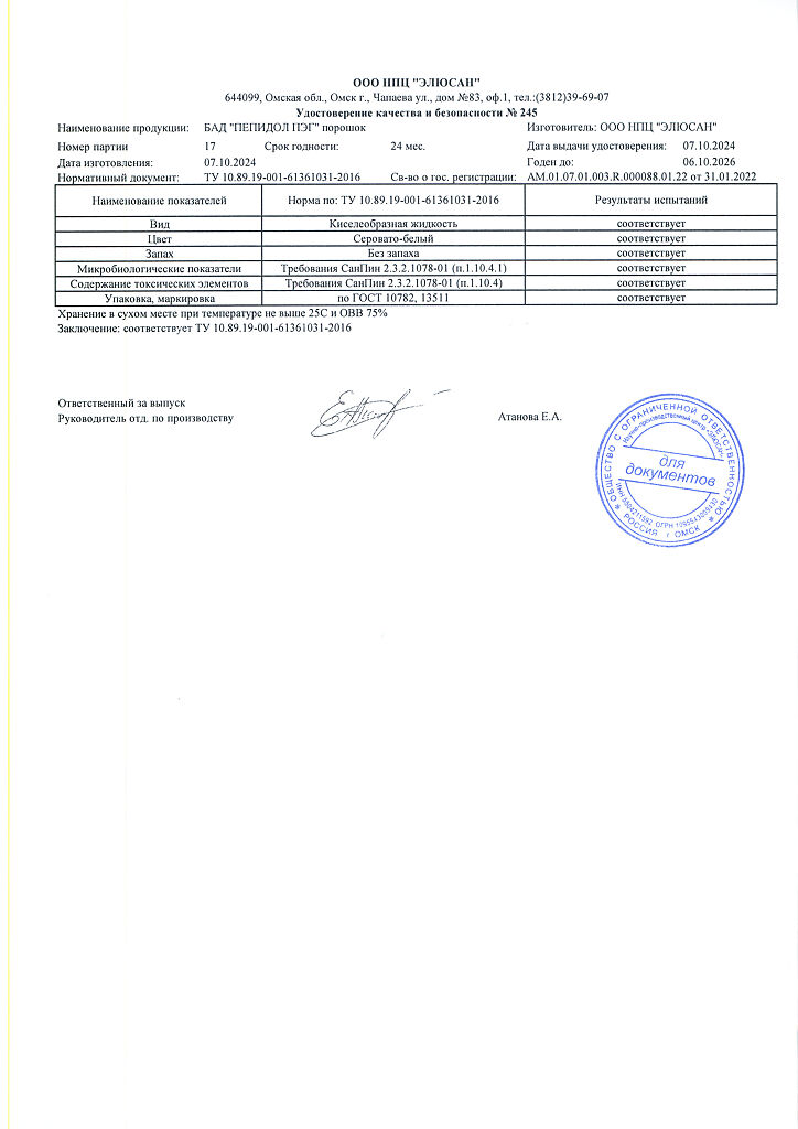 Производитель: НПЦ Элюсан, Россия