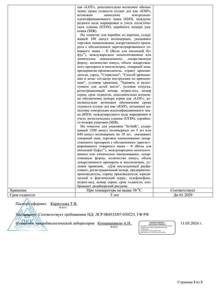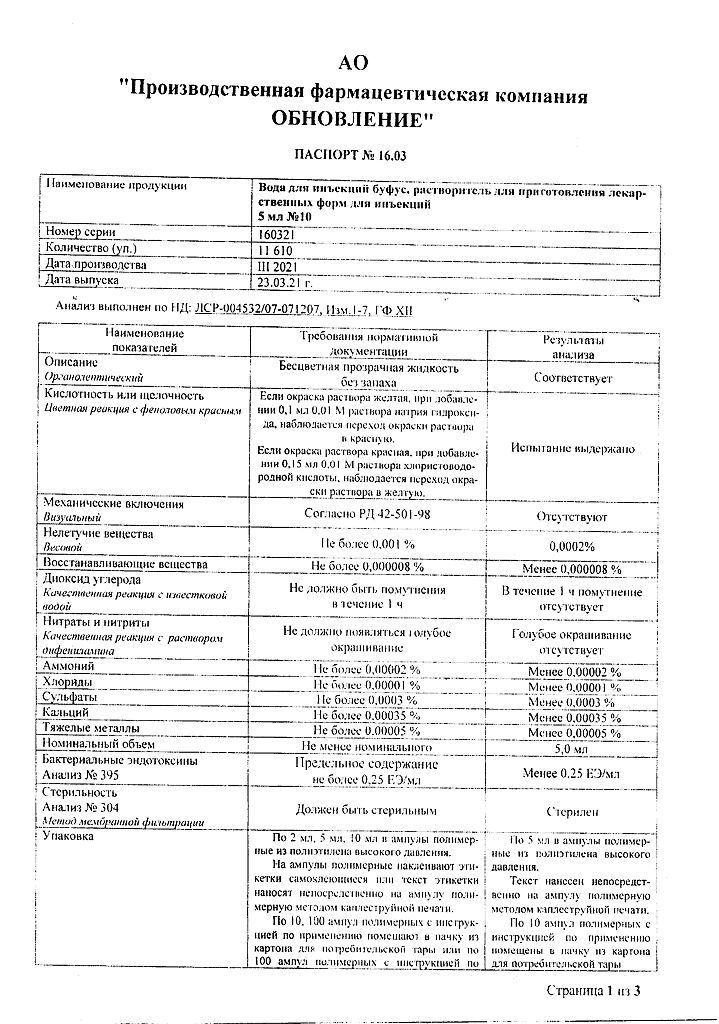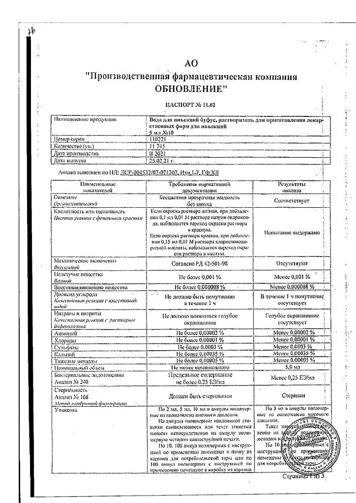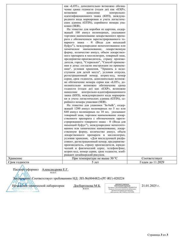 Вода для инъекций в качестве растворителя лекарственных средств не применяется, если в качестве растворителя указан другой.