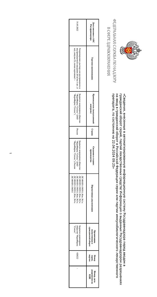 Страница носит информационный характер о наличии препаратов. Перед назначением и применением проконсультируйтесь с врачом