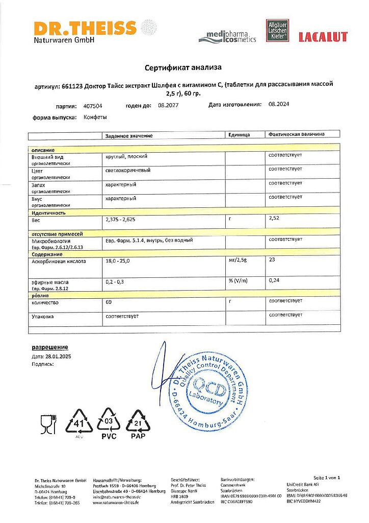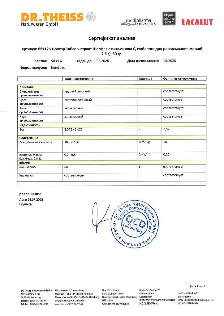 Производитель: Др.Тайсс Натурварен ГмбХ, Германия