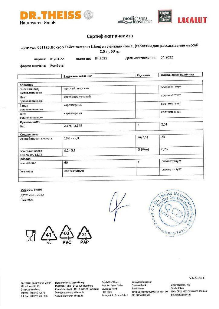 Все варианты Доктор Тайсс Шалфея экстракт с витамином С