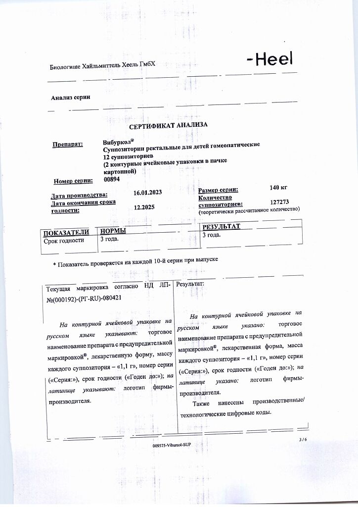 Суппозитории ректальные для детей гомеопатические. По 6 суппозиториев в контурную ячейковую упаковку из поливинилхлоридной / полиэтиленовой пленки. 12 суппозиториев (2 контурные ячейковые упаковки) вместе с инструкцией по медицинскому применению помещают в пачку картонную.