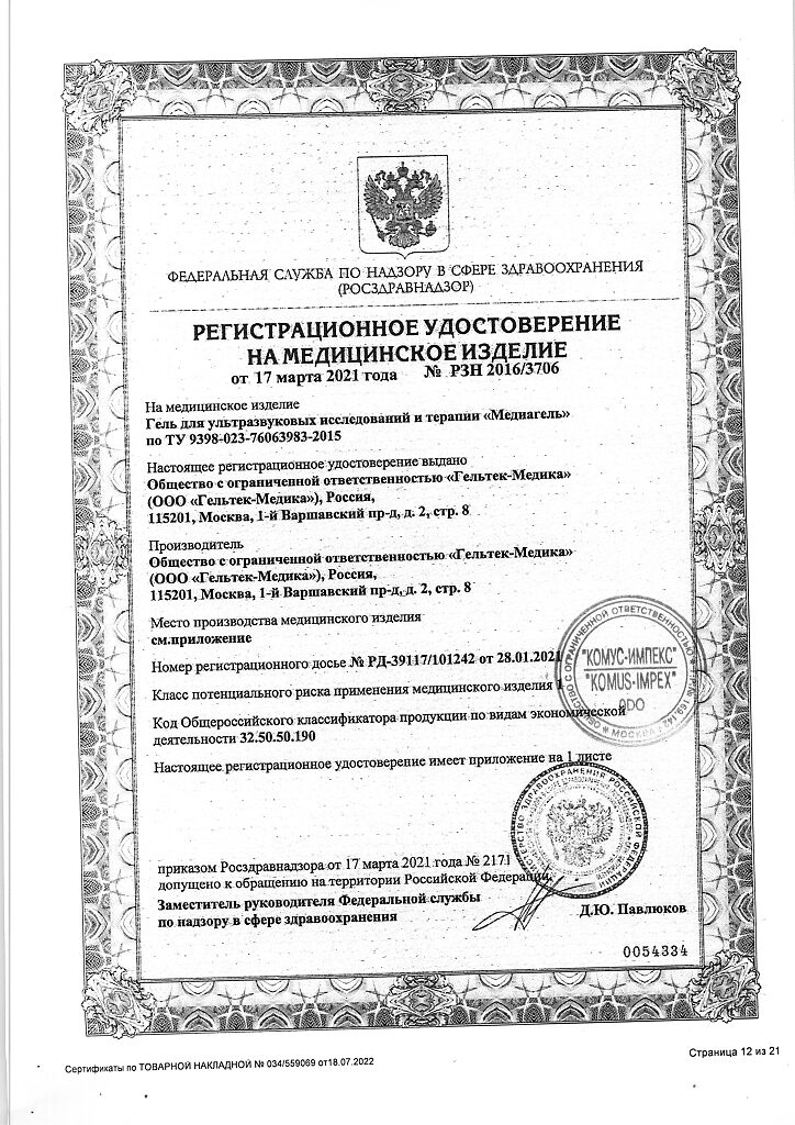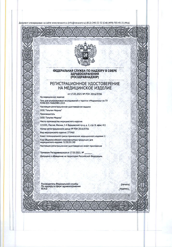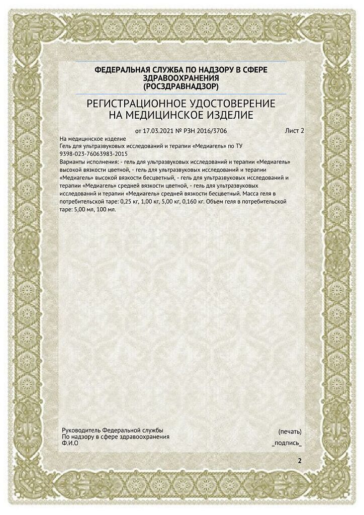 Гель для УЗИ "Медиагель" - является универсальными контактным средством для проведения ультразвуковой терапии, ультразвуковых исследований, доплерографии, а также фото- и лазерных процедур (косметологии, эпиляции, омоложения и т.д.).