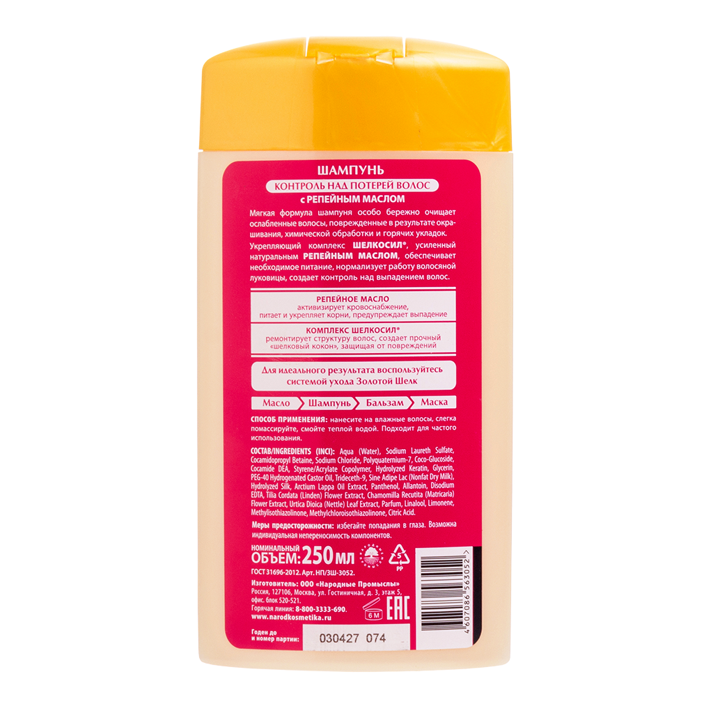 Золотой Шелк Шампунь Контроль над потерей волос с репейным маслом 250 мл 1 шт: 15 отзывов покупателей и фармацевтов