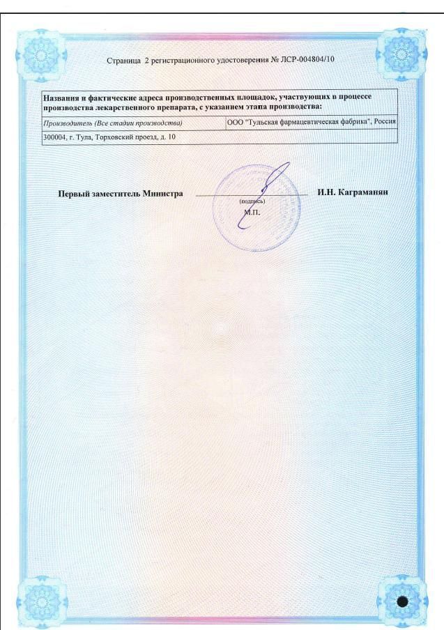 Производитель: Тульская фармфабрика, Россия