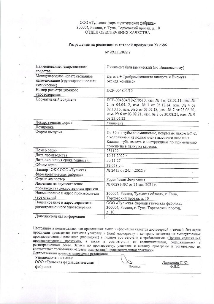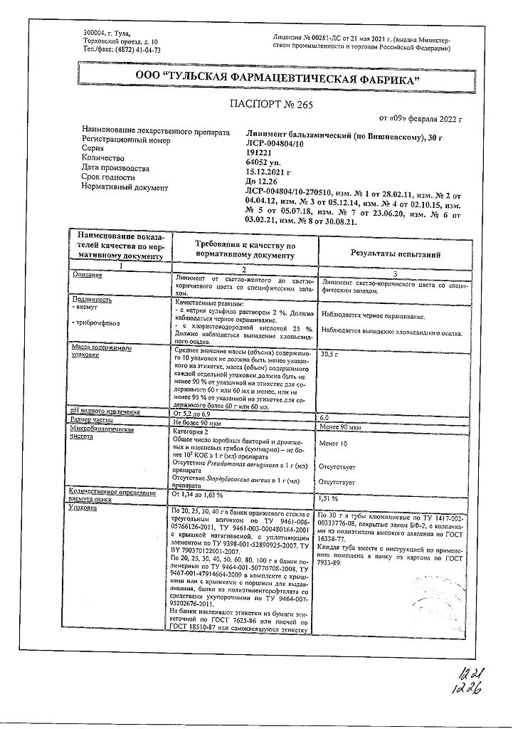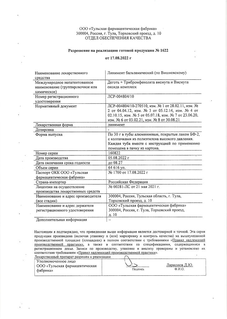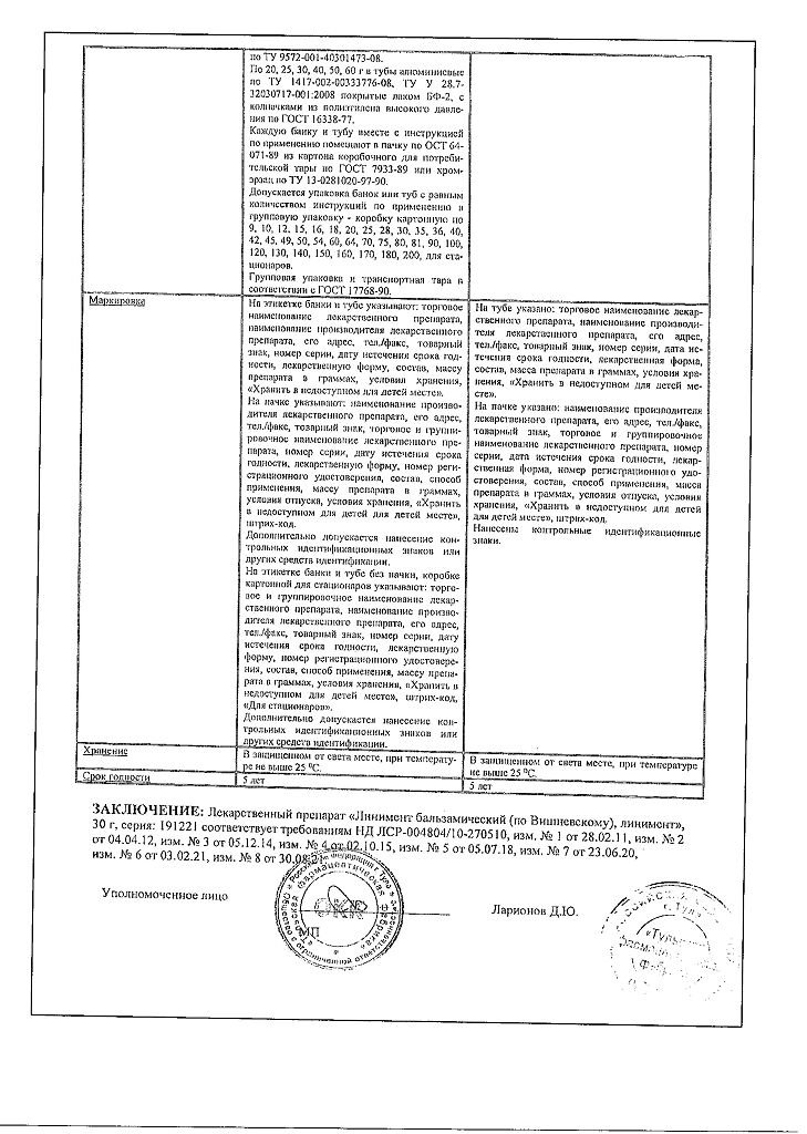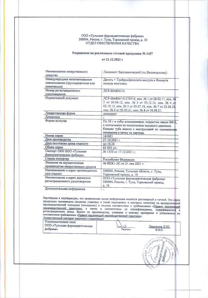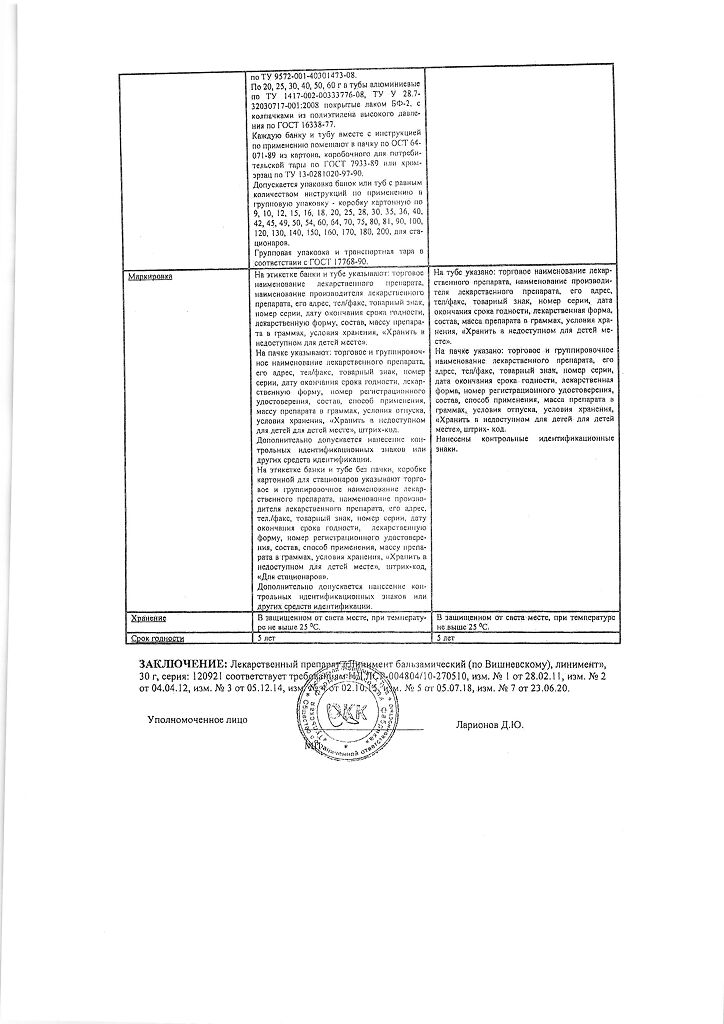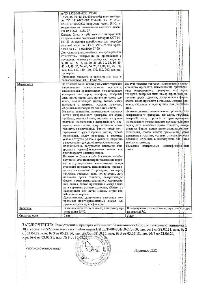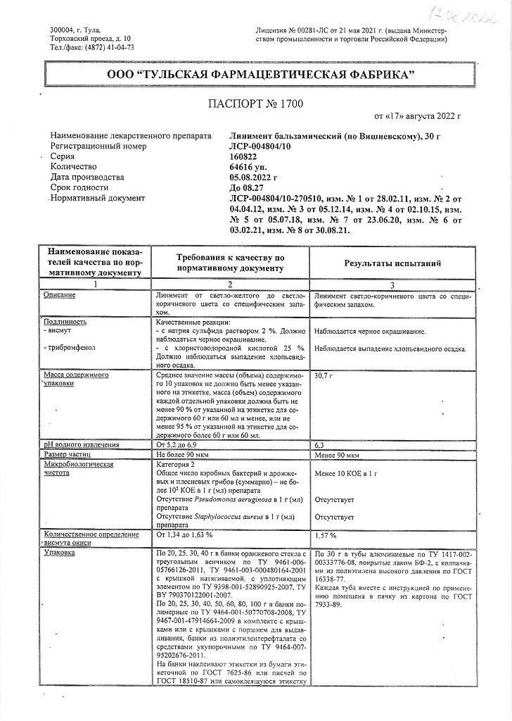 Все формы Линимент бальзамический (по Вишневскому)