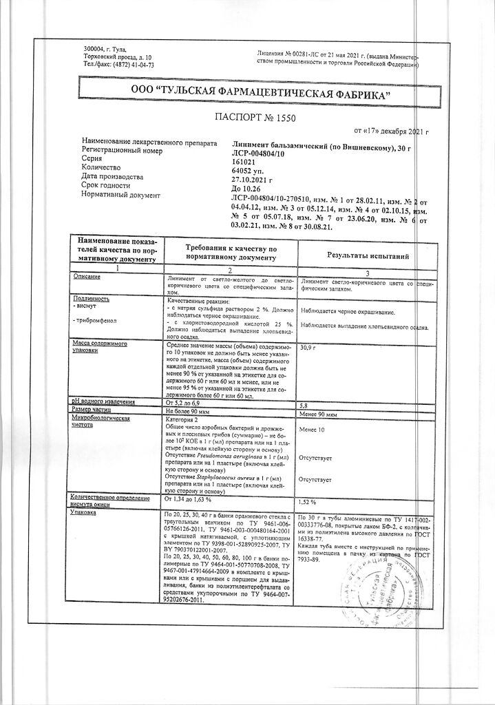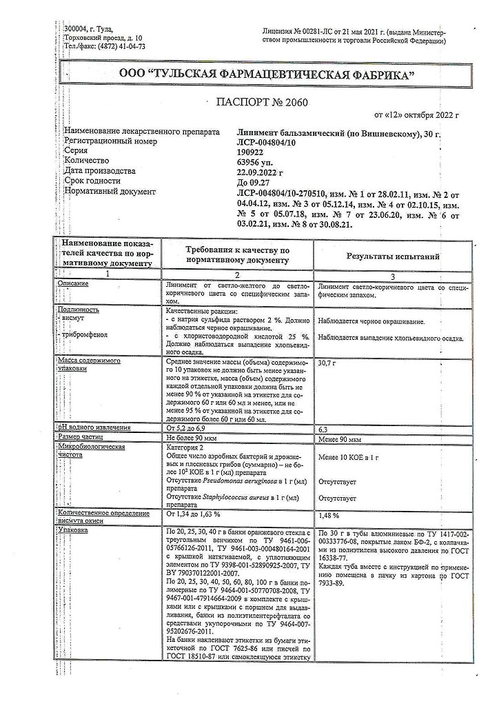 Цены на Линимент бальзамический (по Вишневскому) в других городах