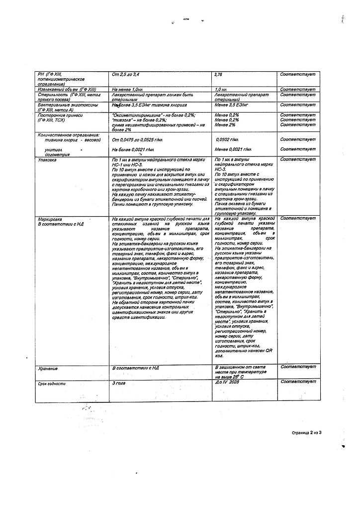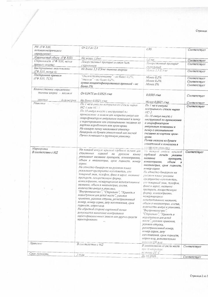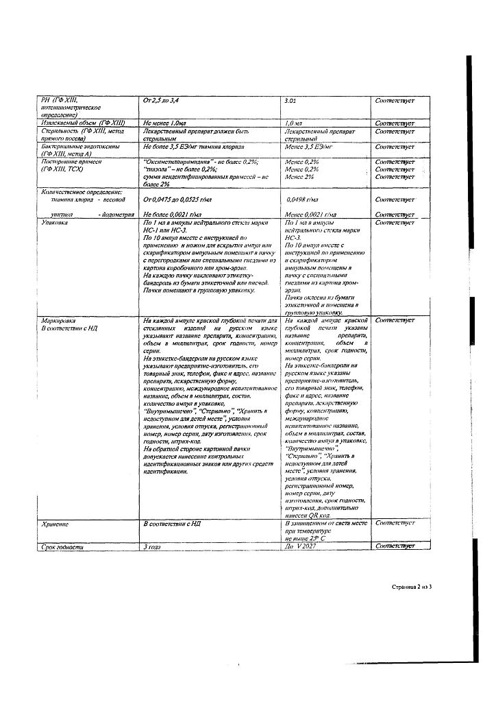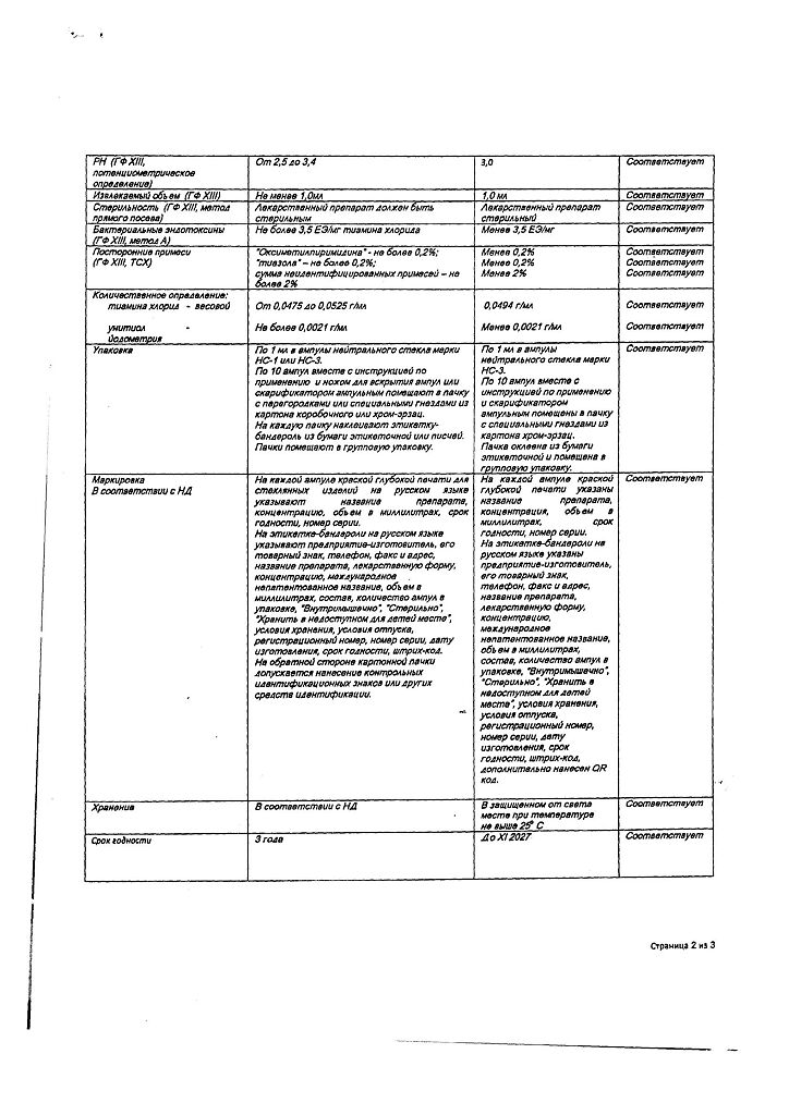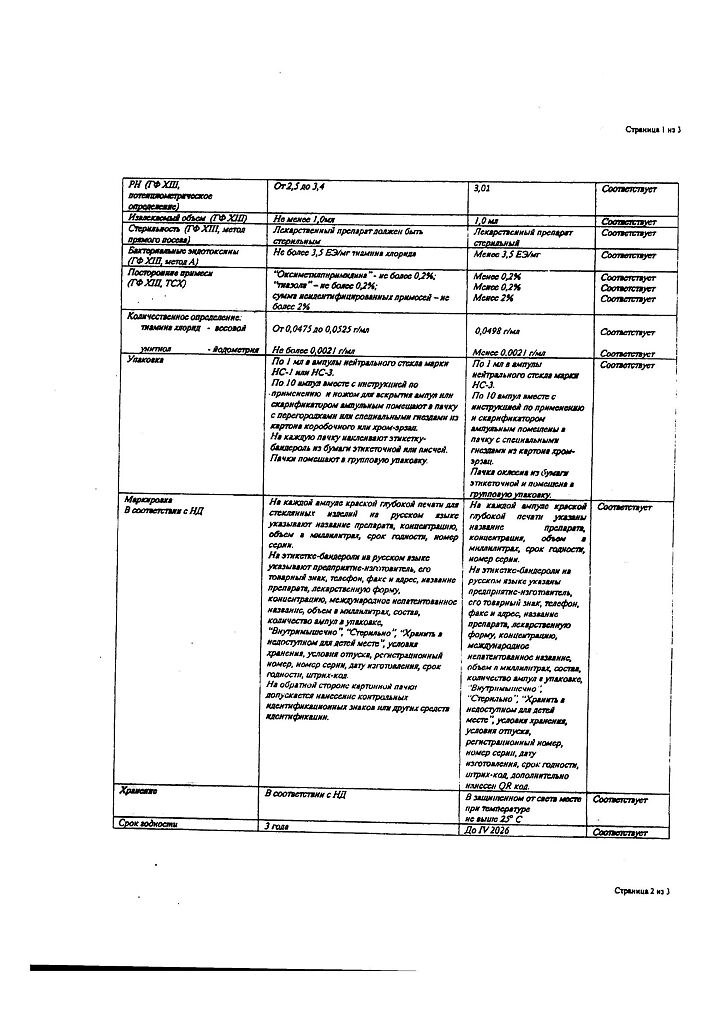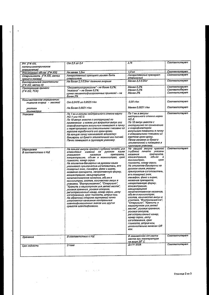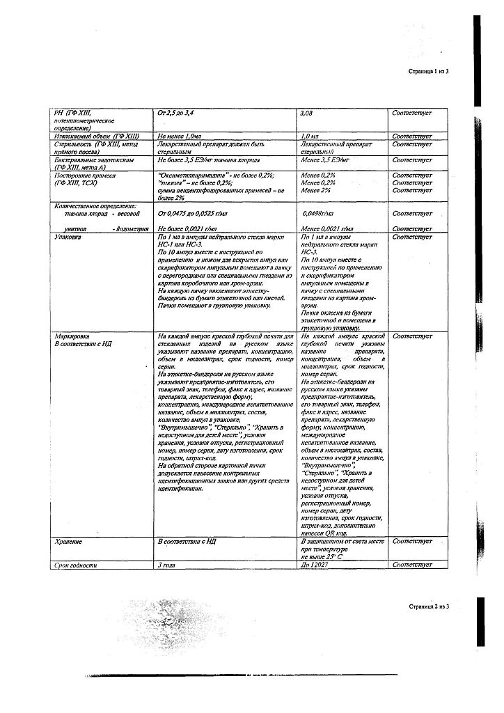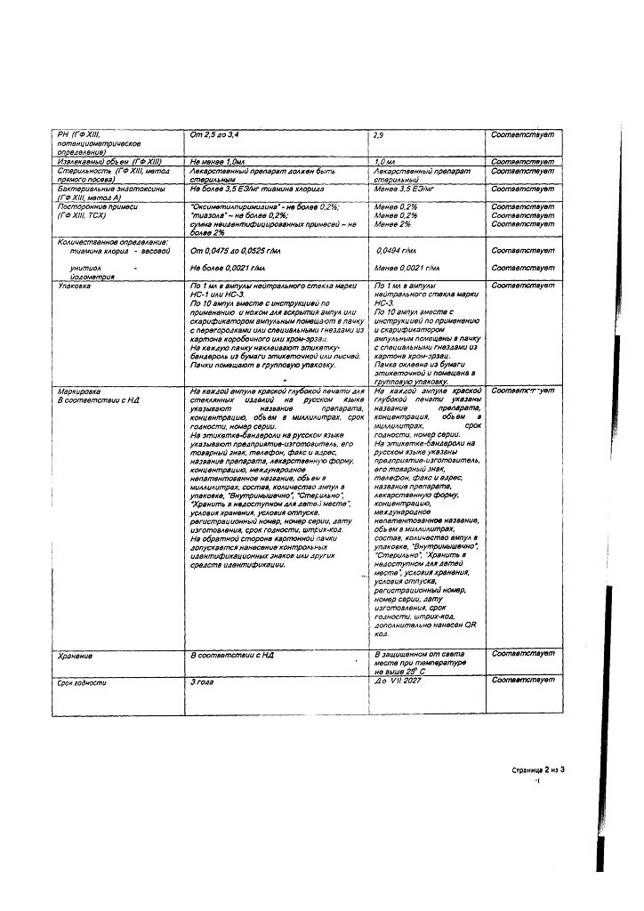Действующее вещество: Тиамин