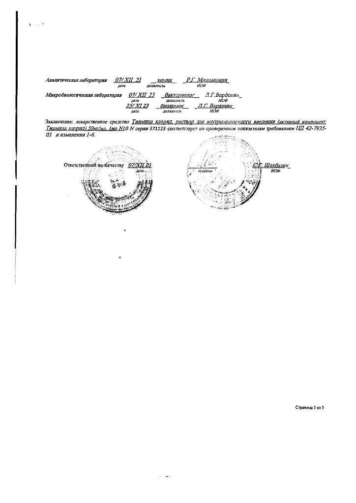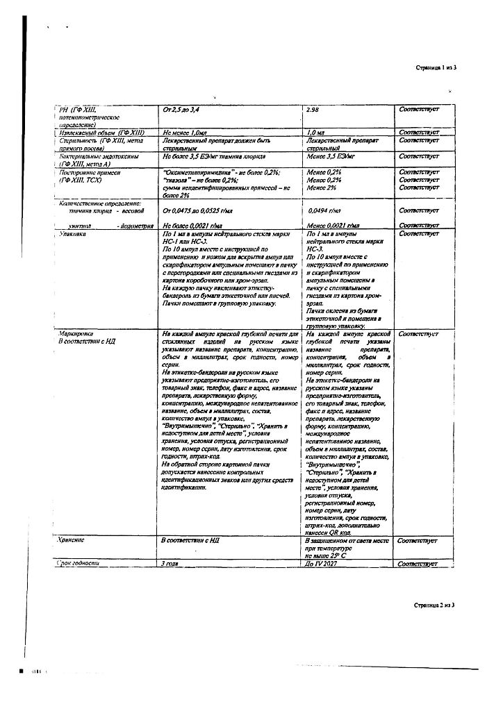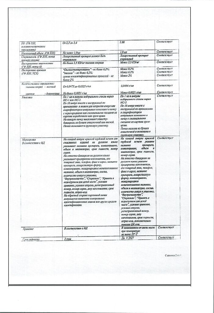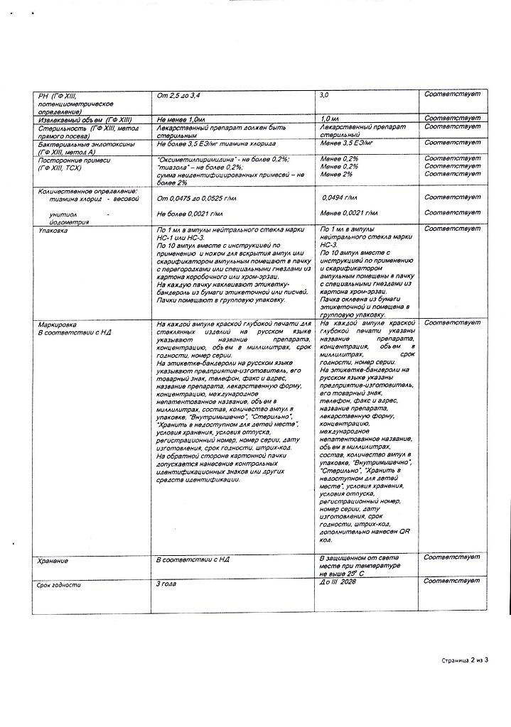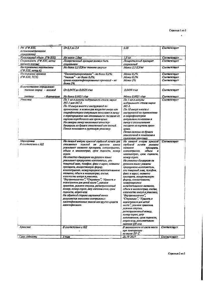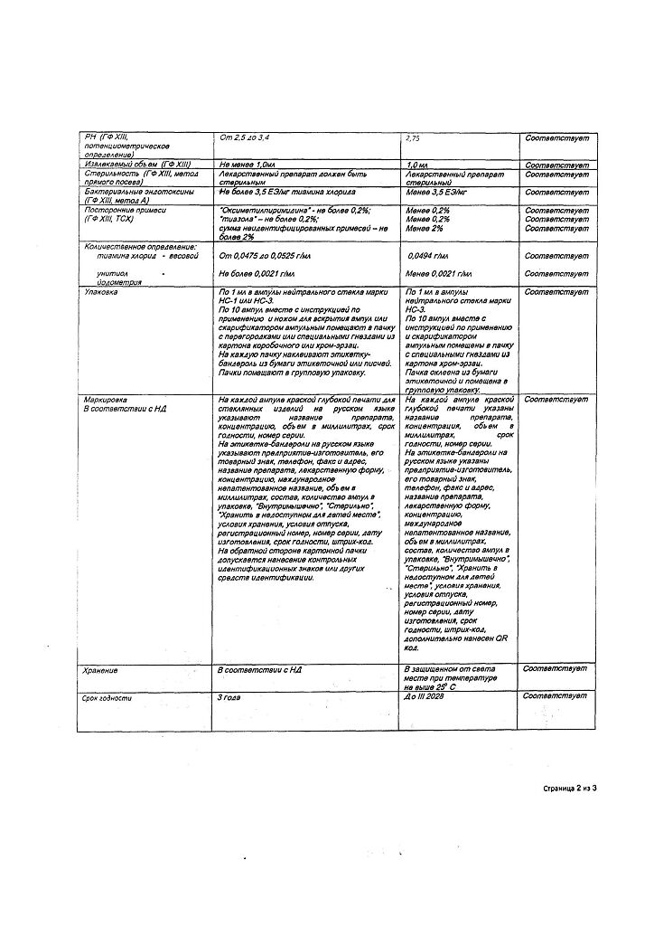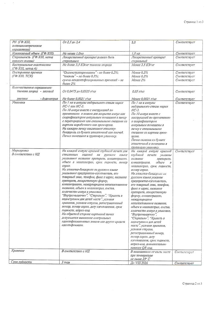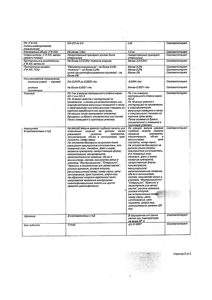 Действующее вещество: Тиамин