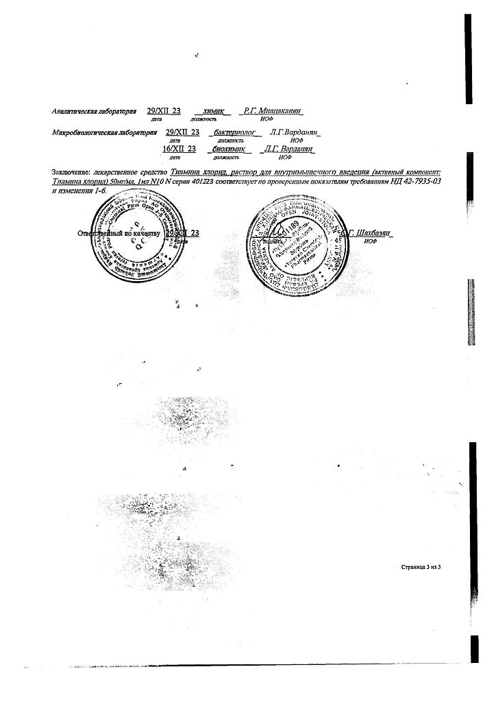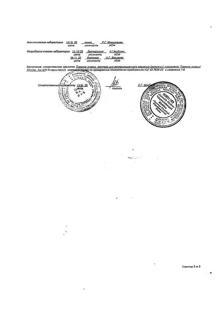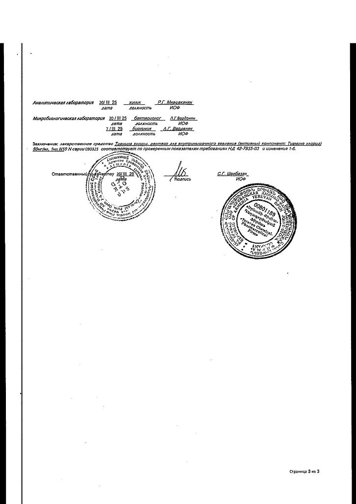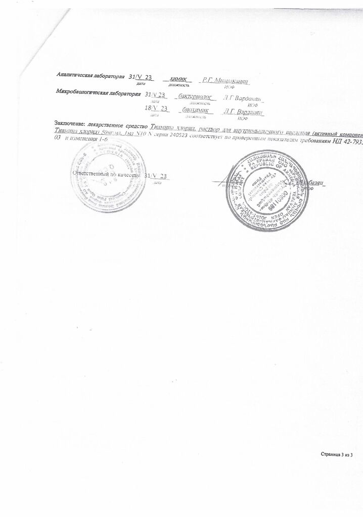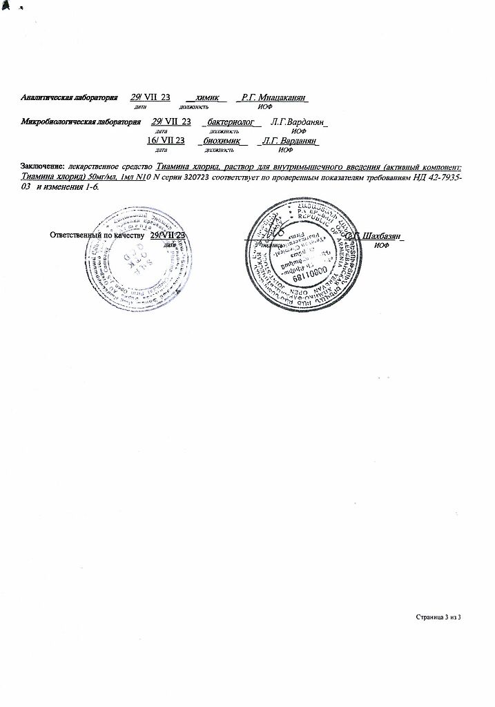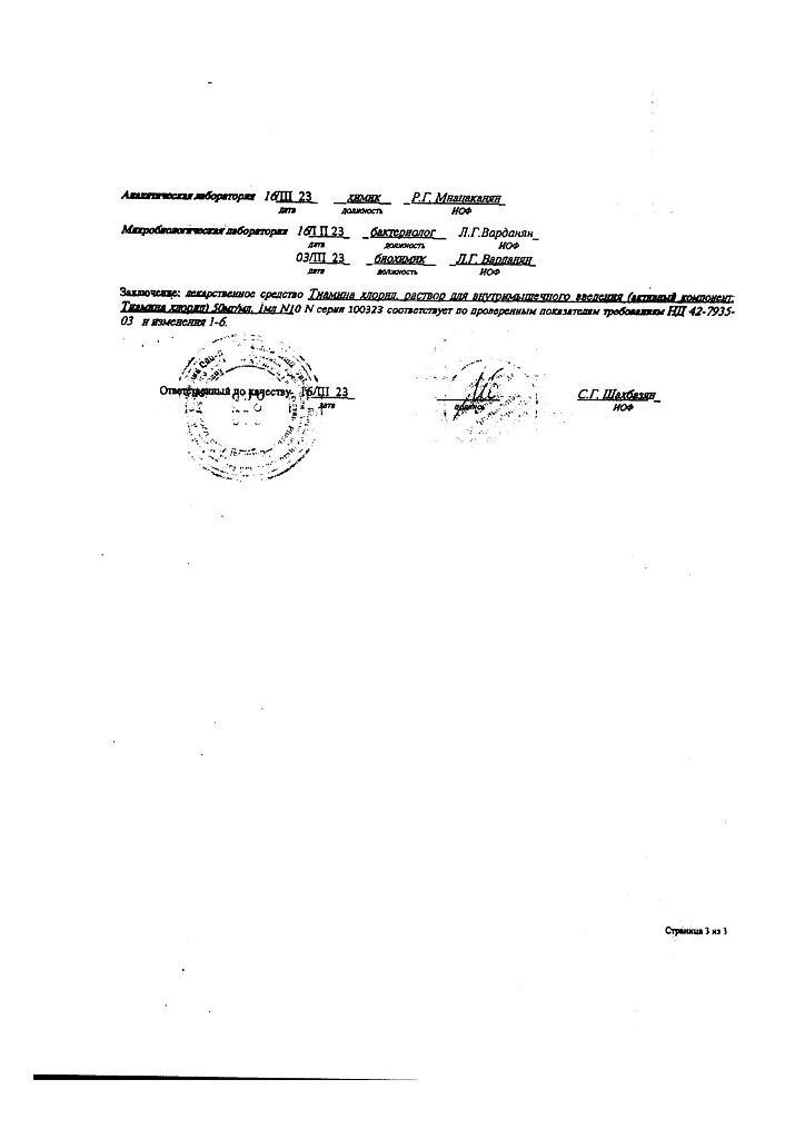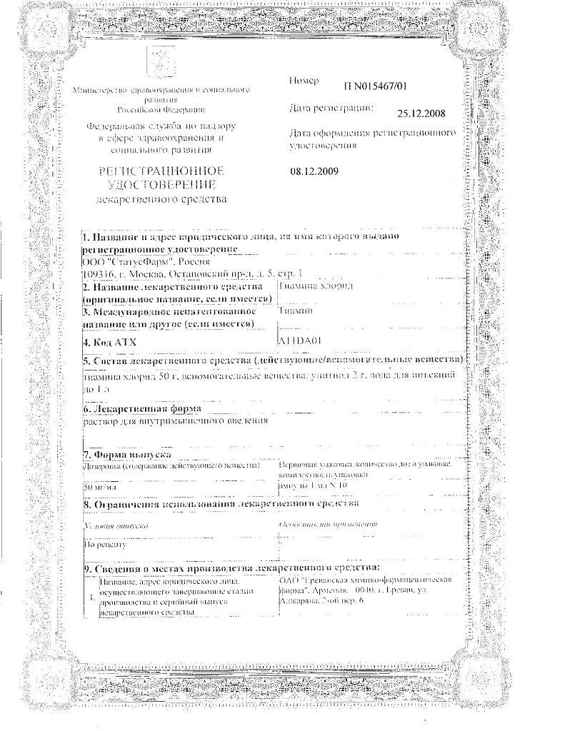 Действующее вещество: Тиамин