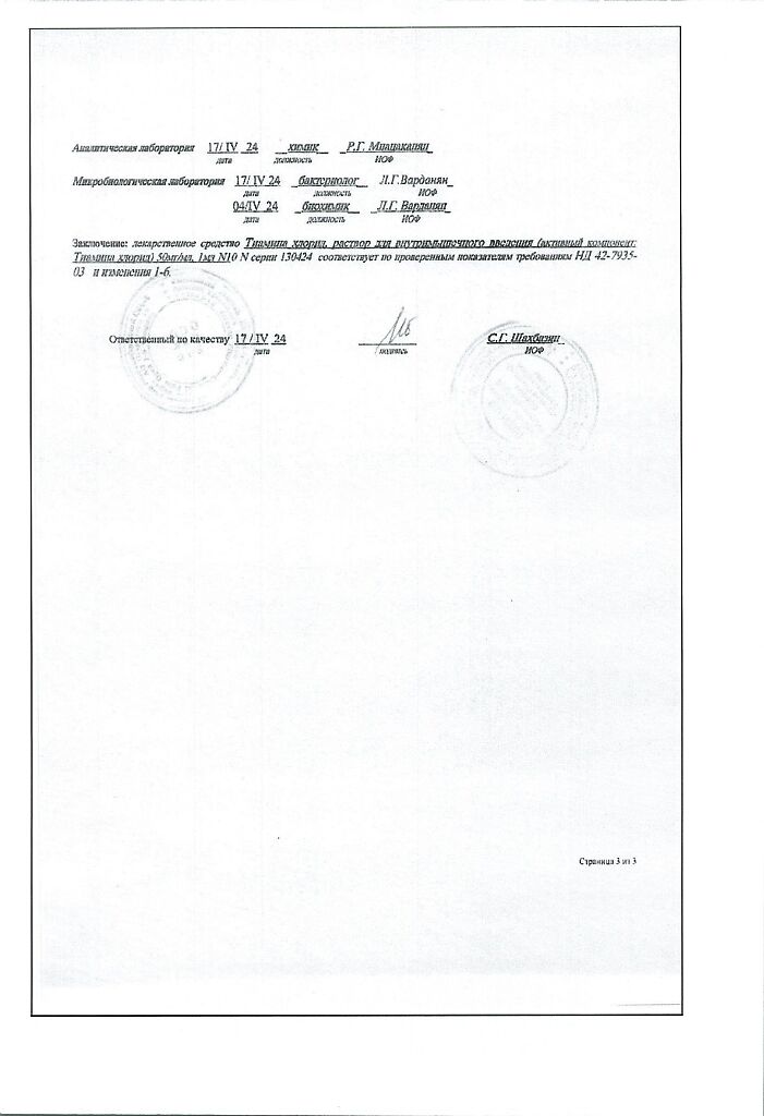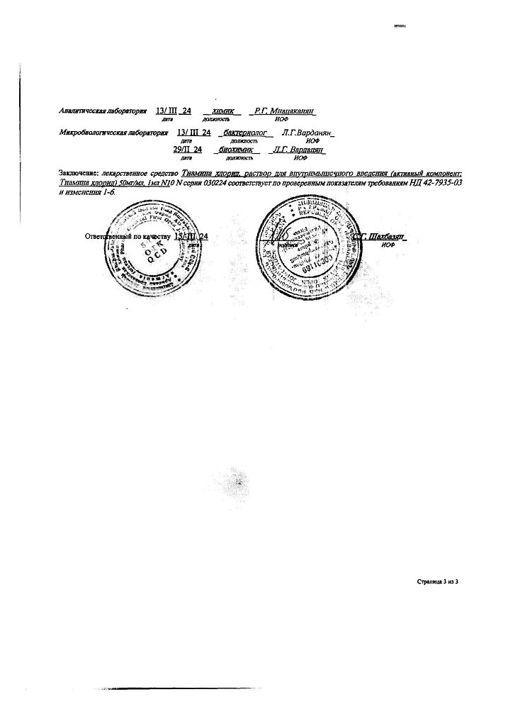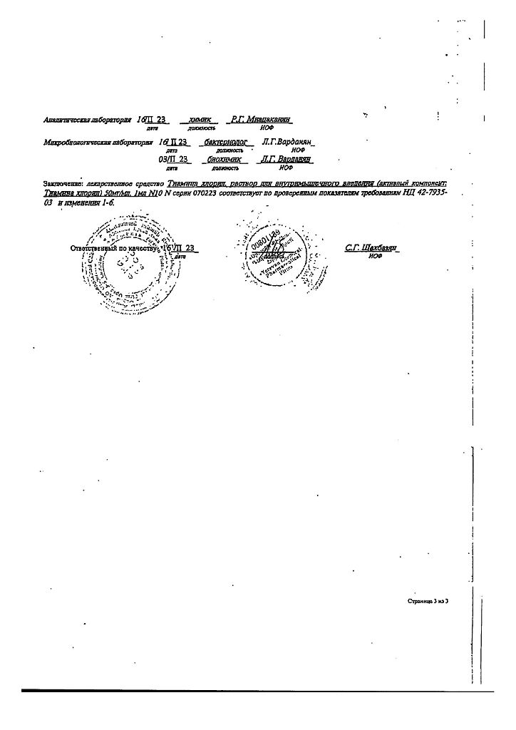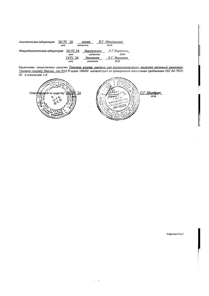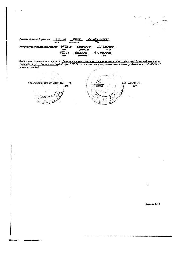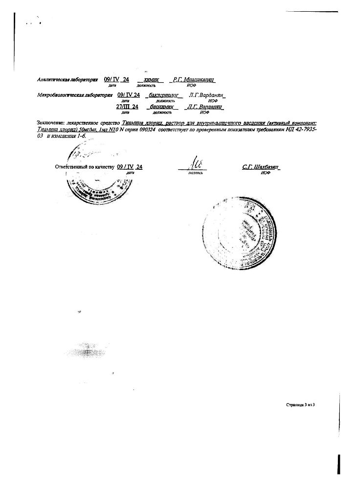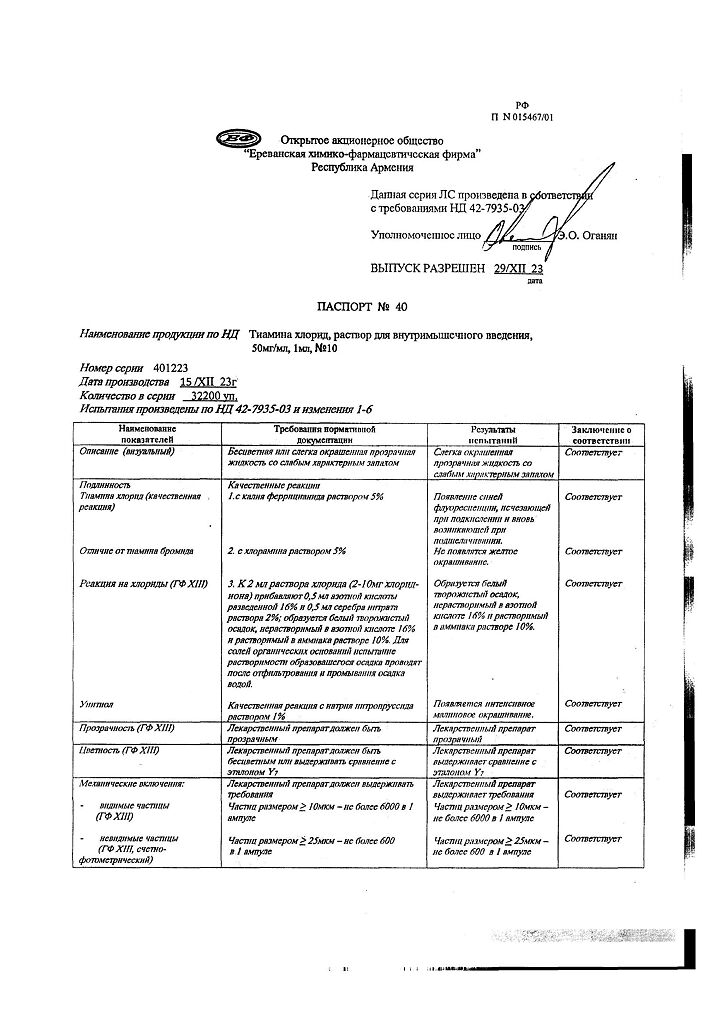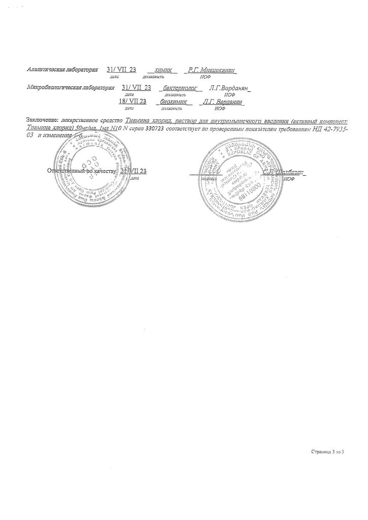 Действующее вещество: Тиамин