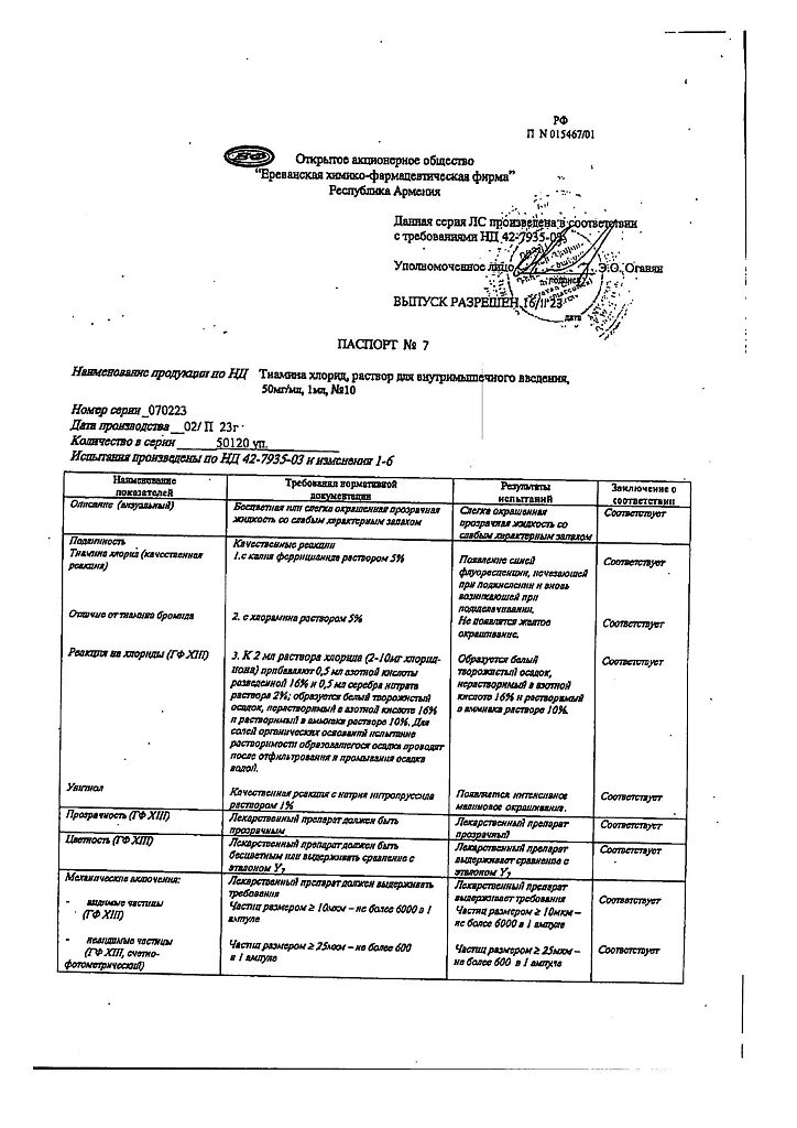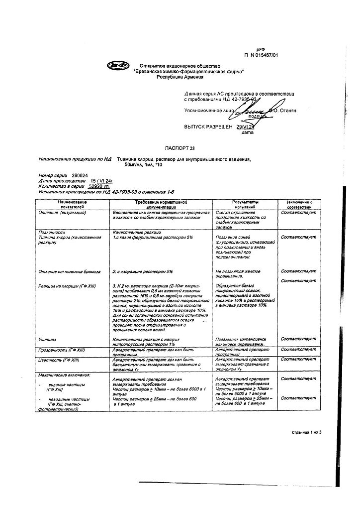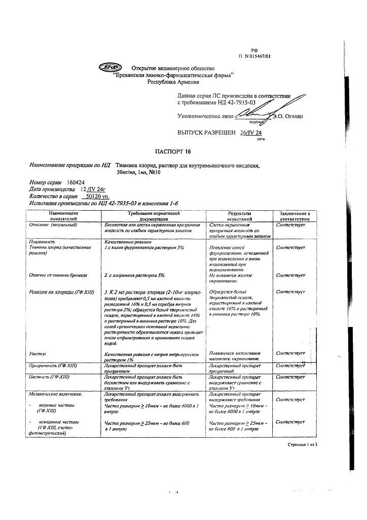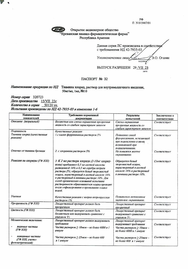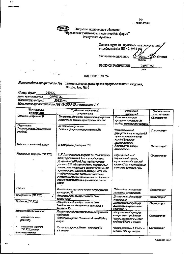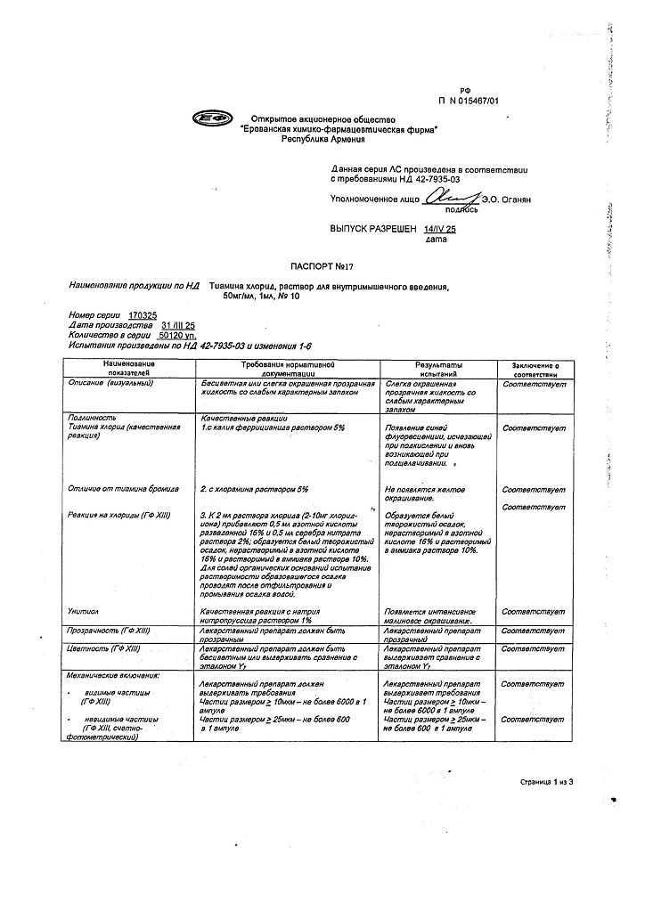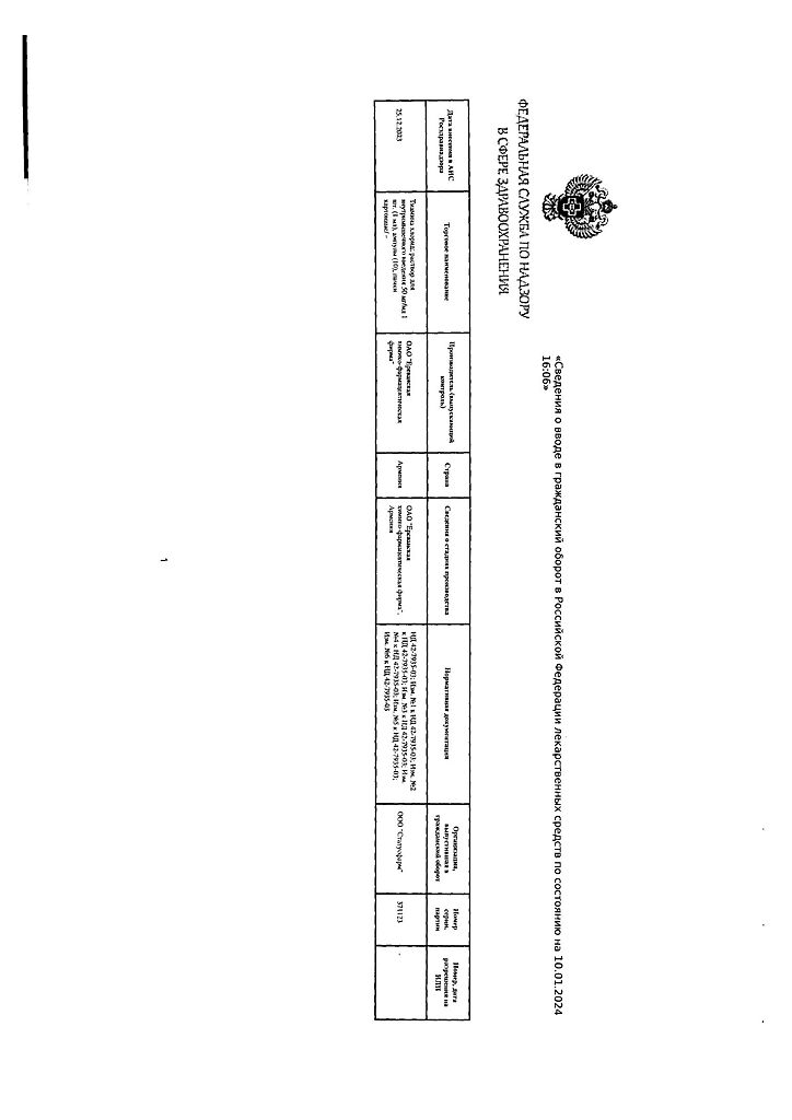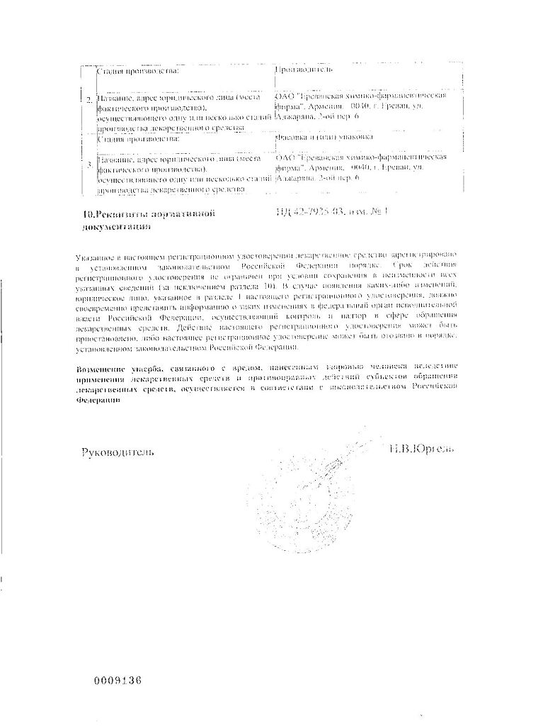 Производитель: Ереванская ХФФ, Армения