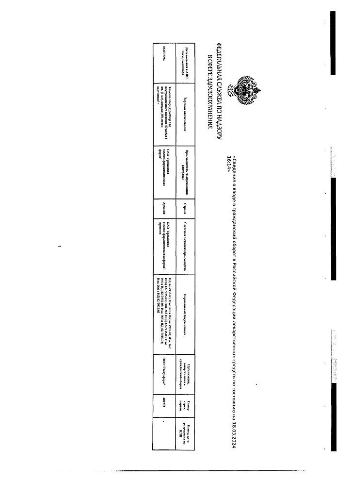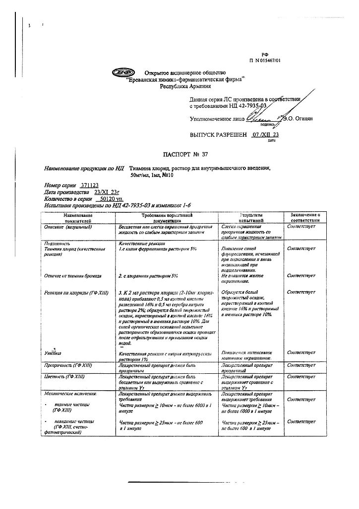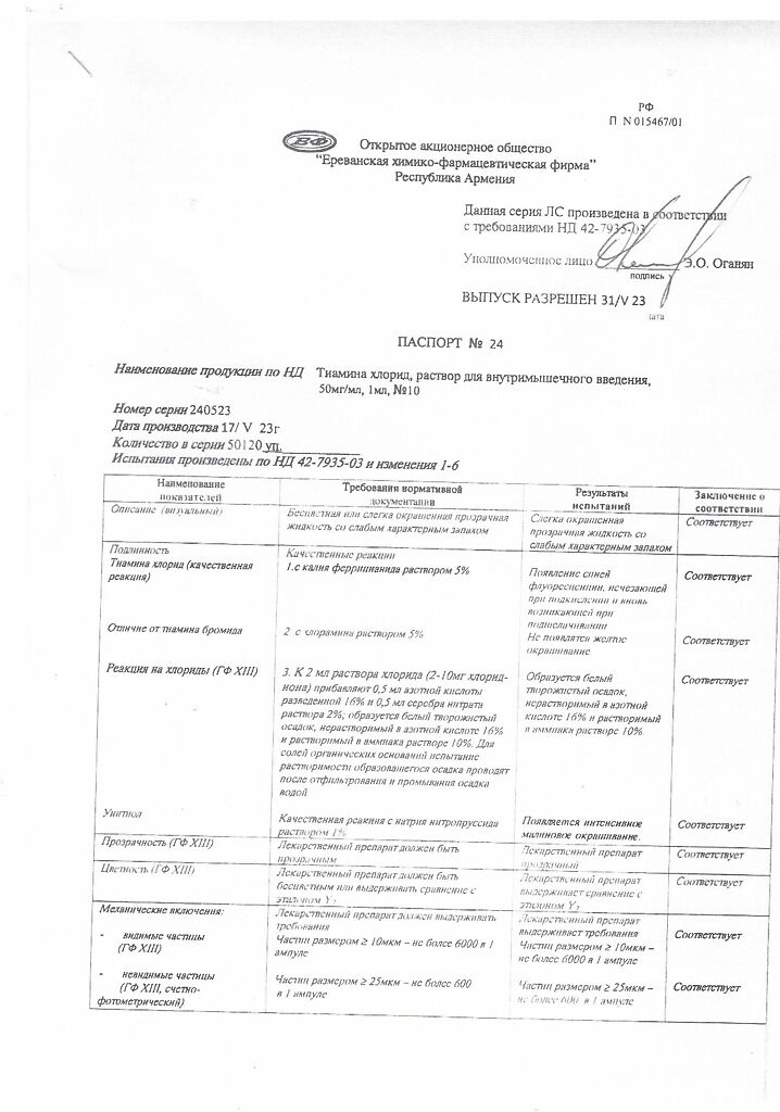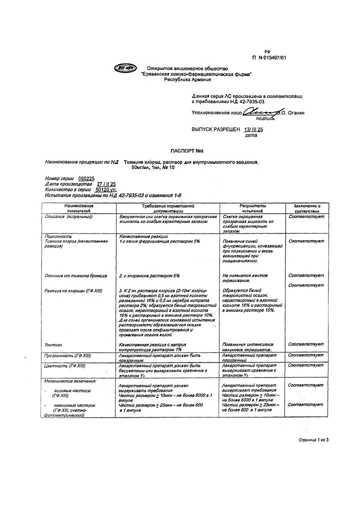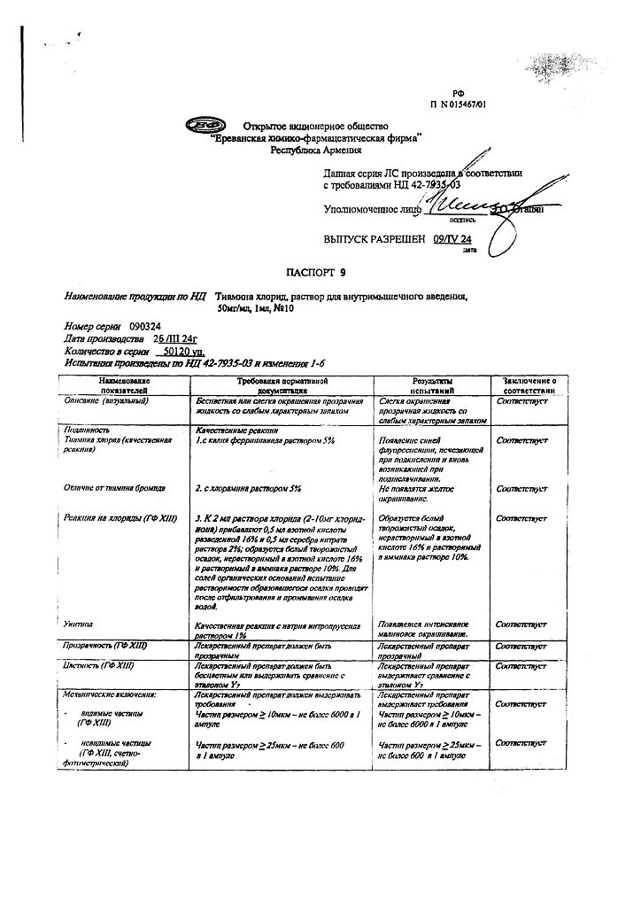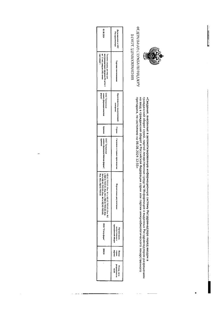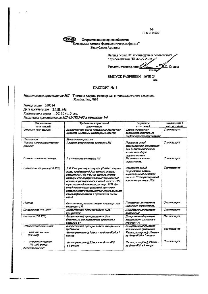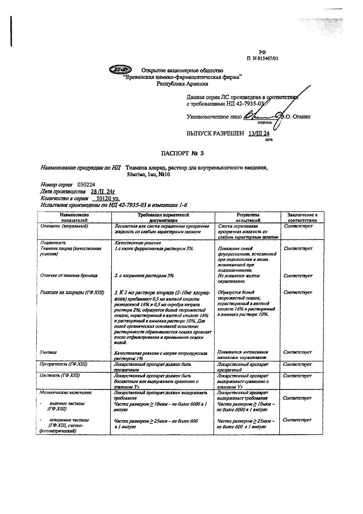 Производитель: Ереванская ХФФ, Армения