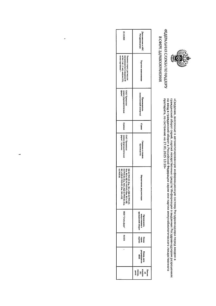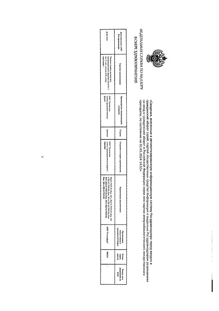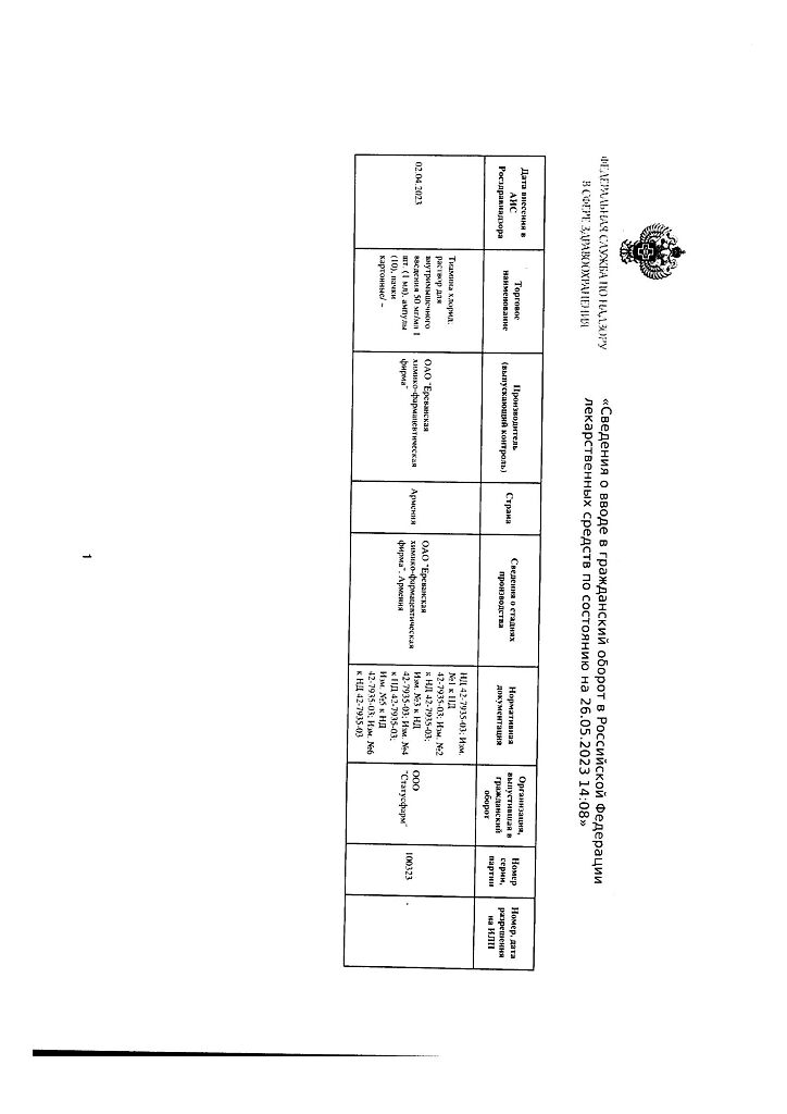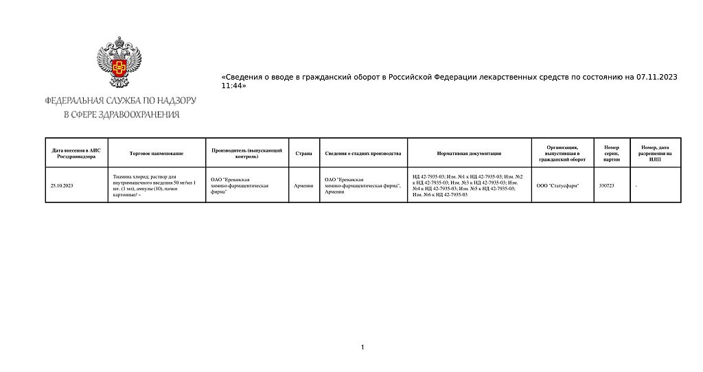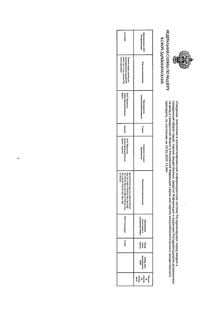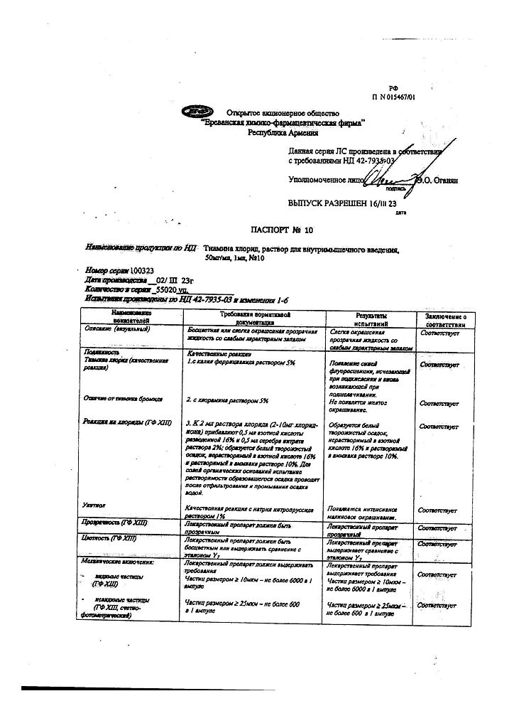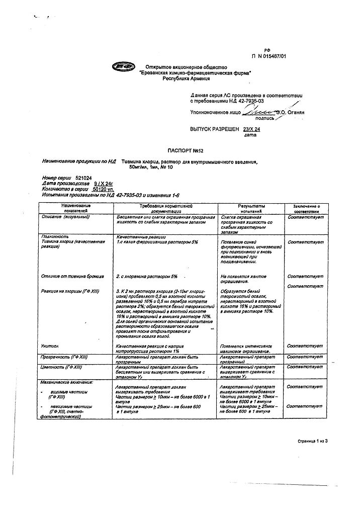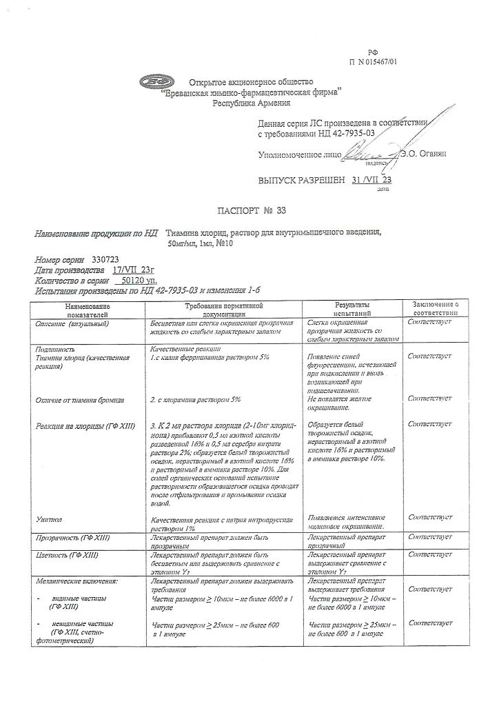 Производитель: Ереванская ХФФ, Армения