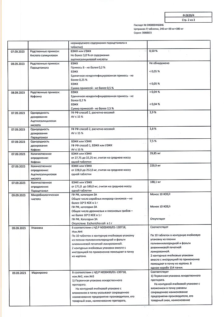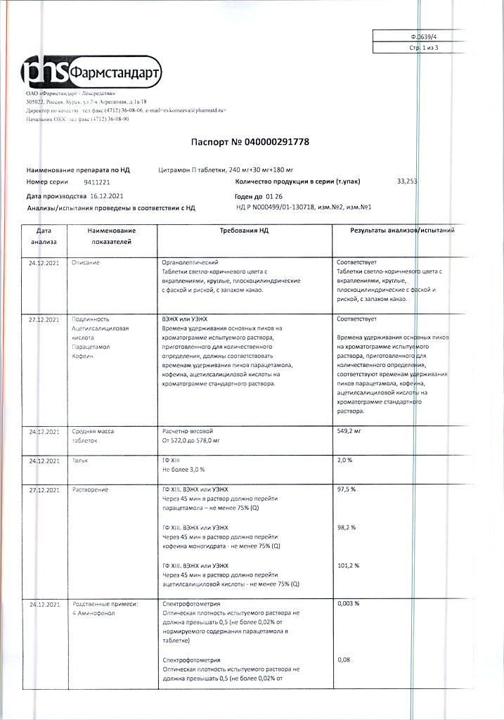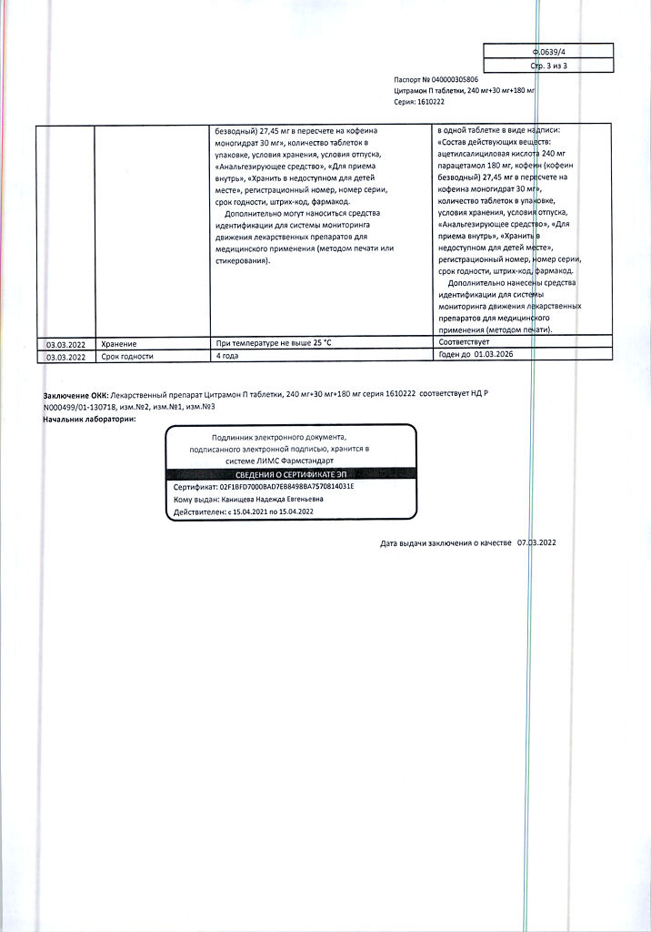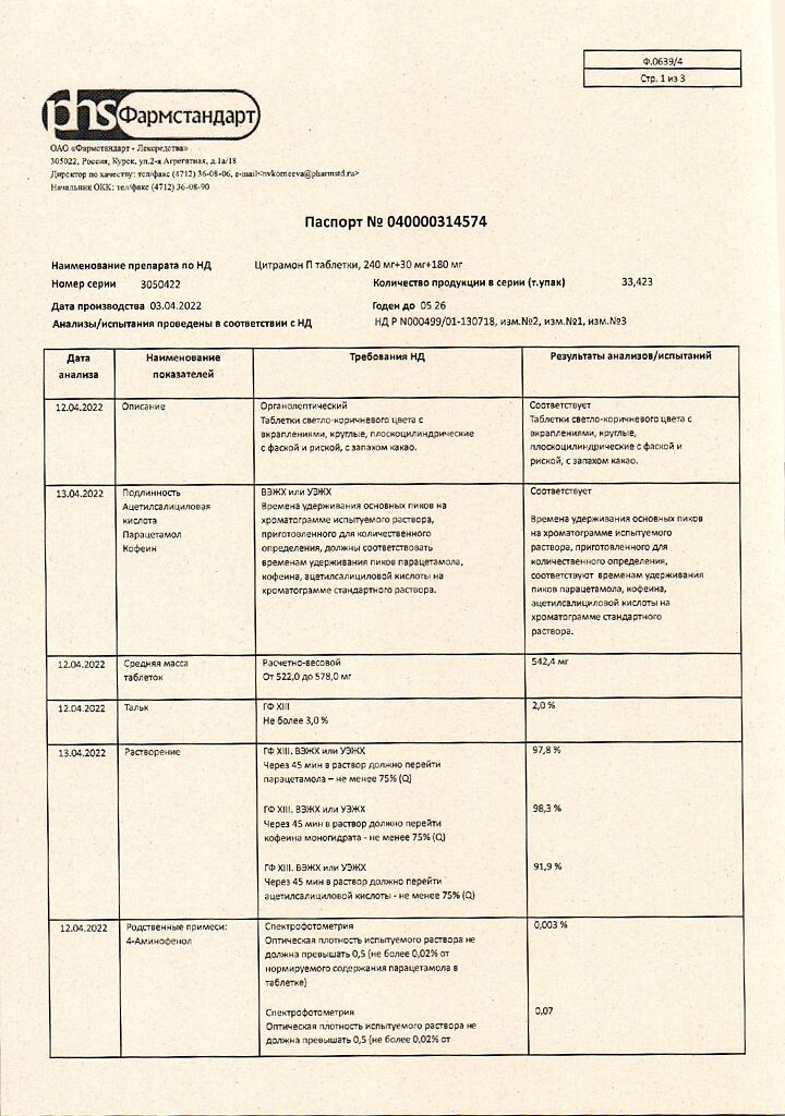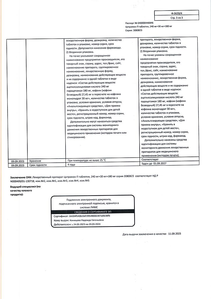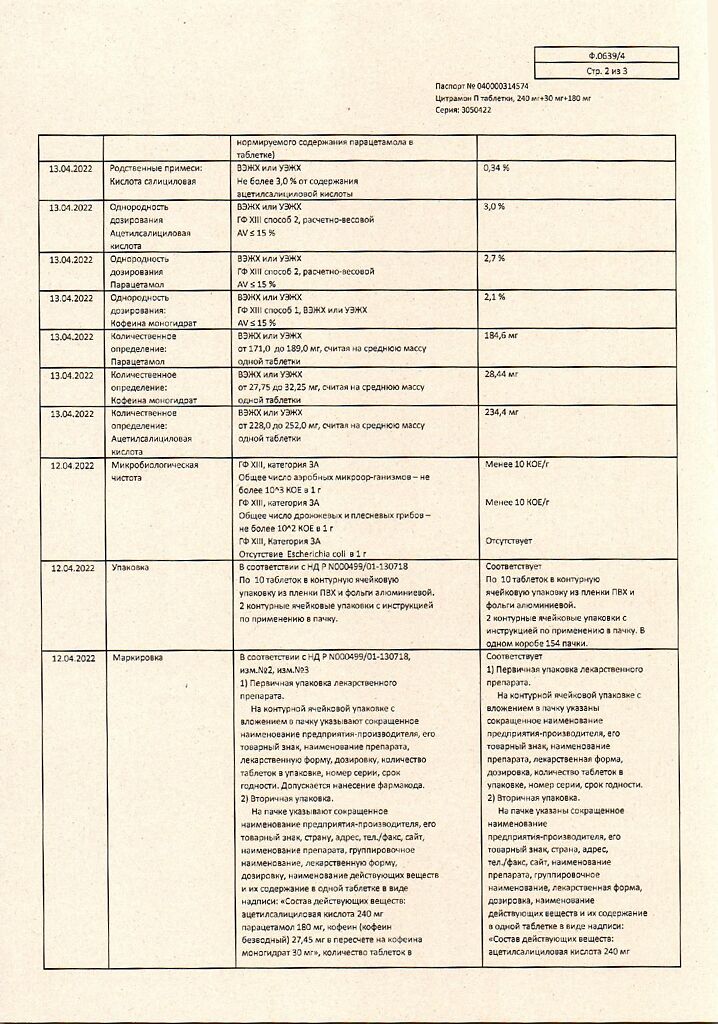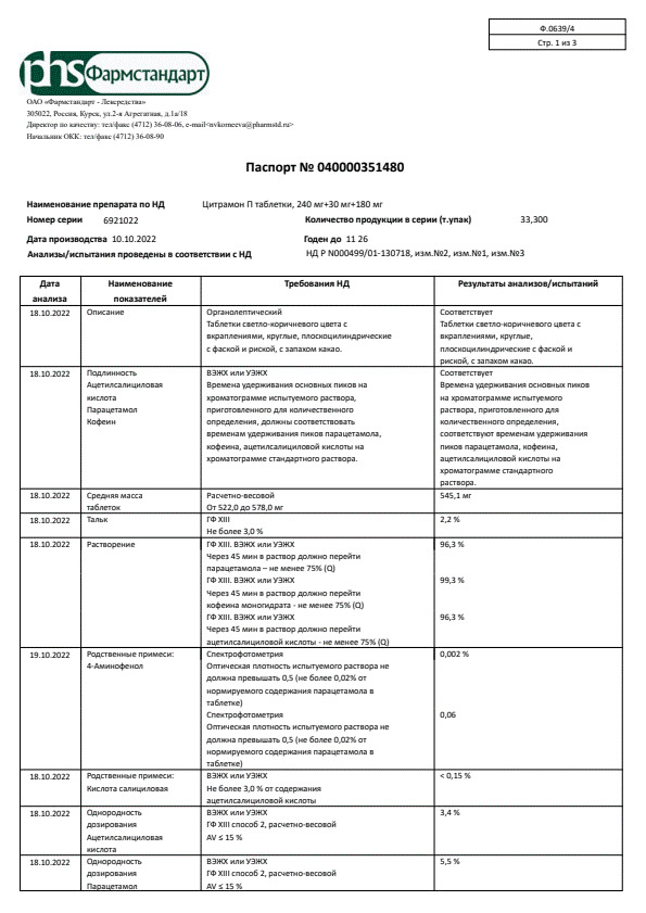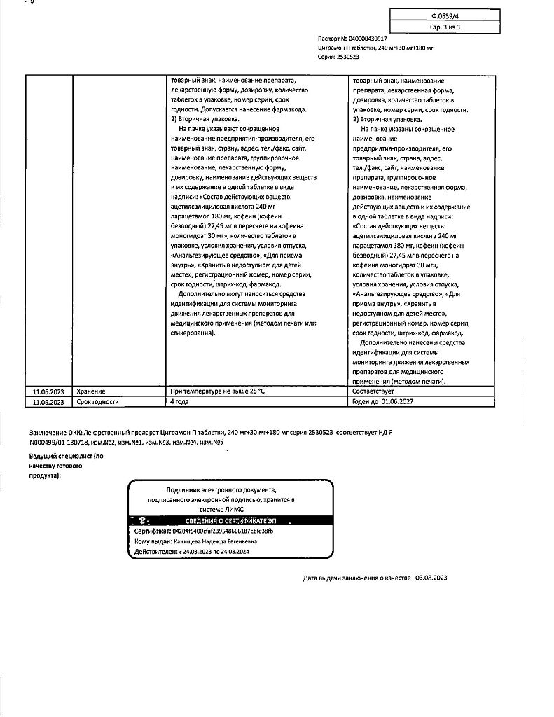 Цитрамон П таблетки 240 мг+30 мг+180 мг 20 шт: 6 отзывов покупателей и фармацевтов