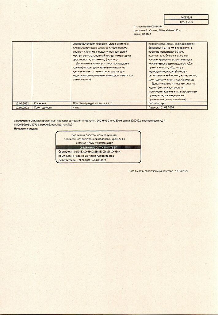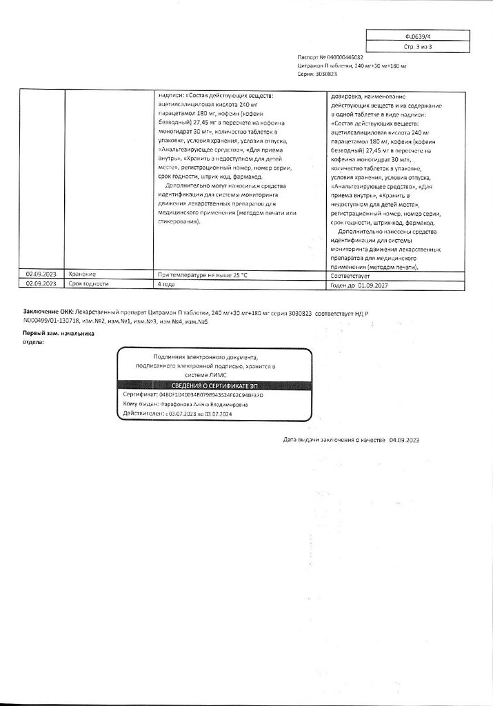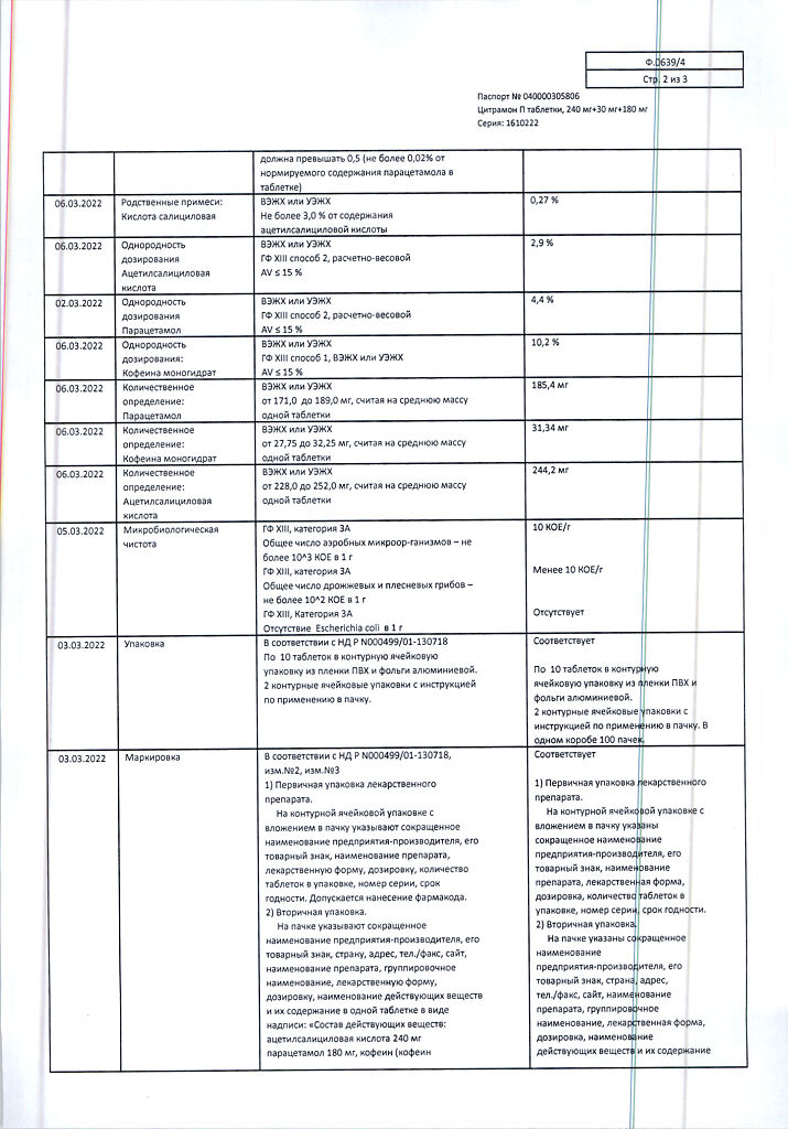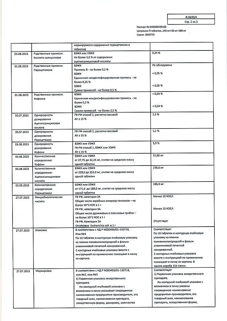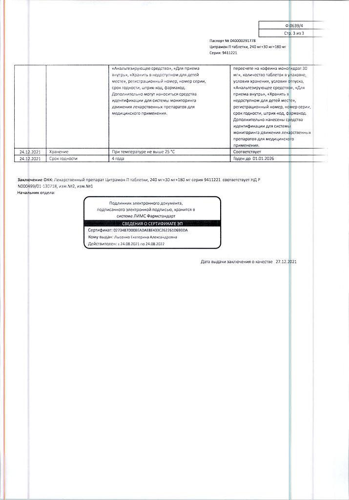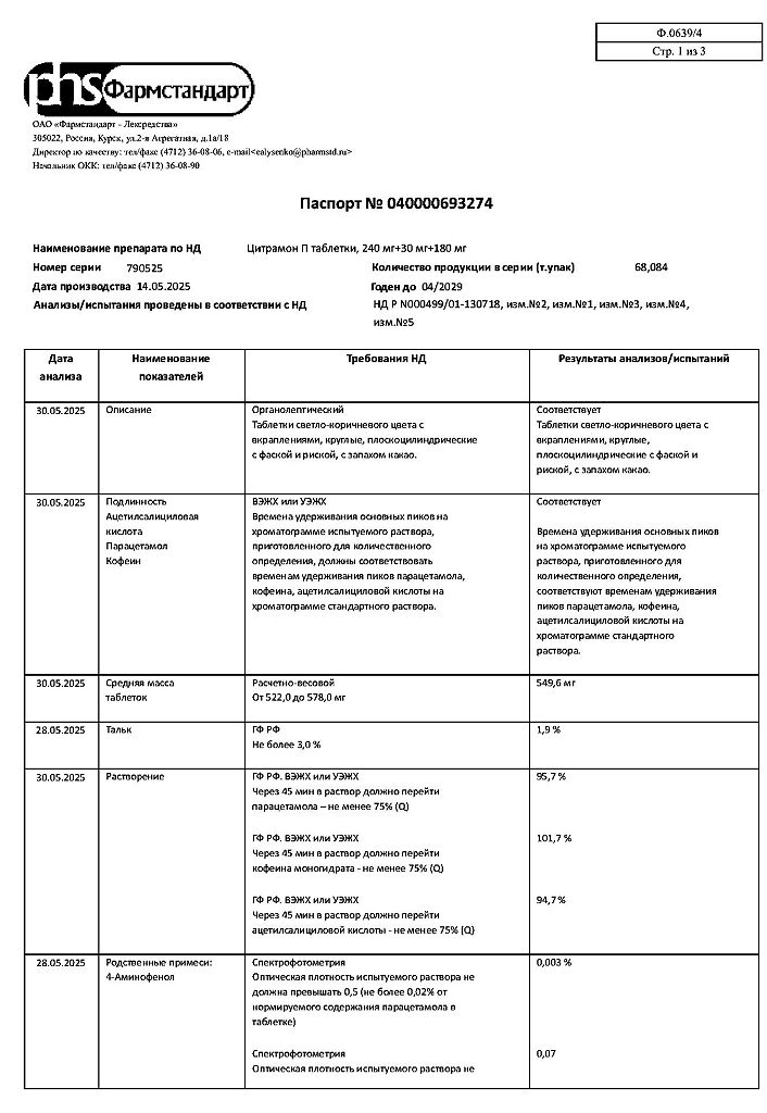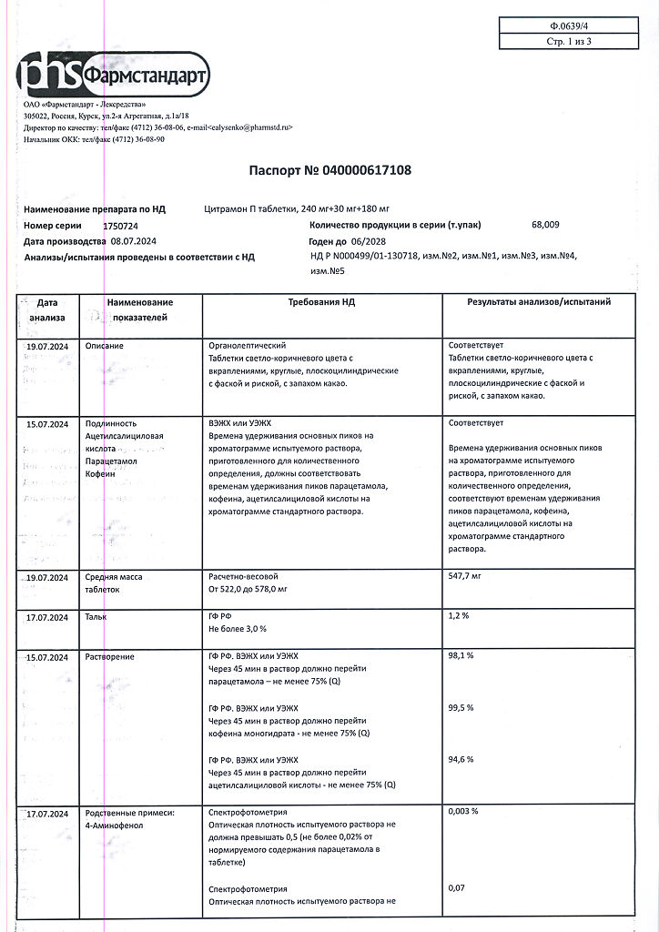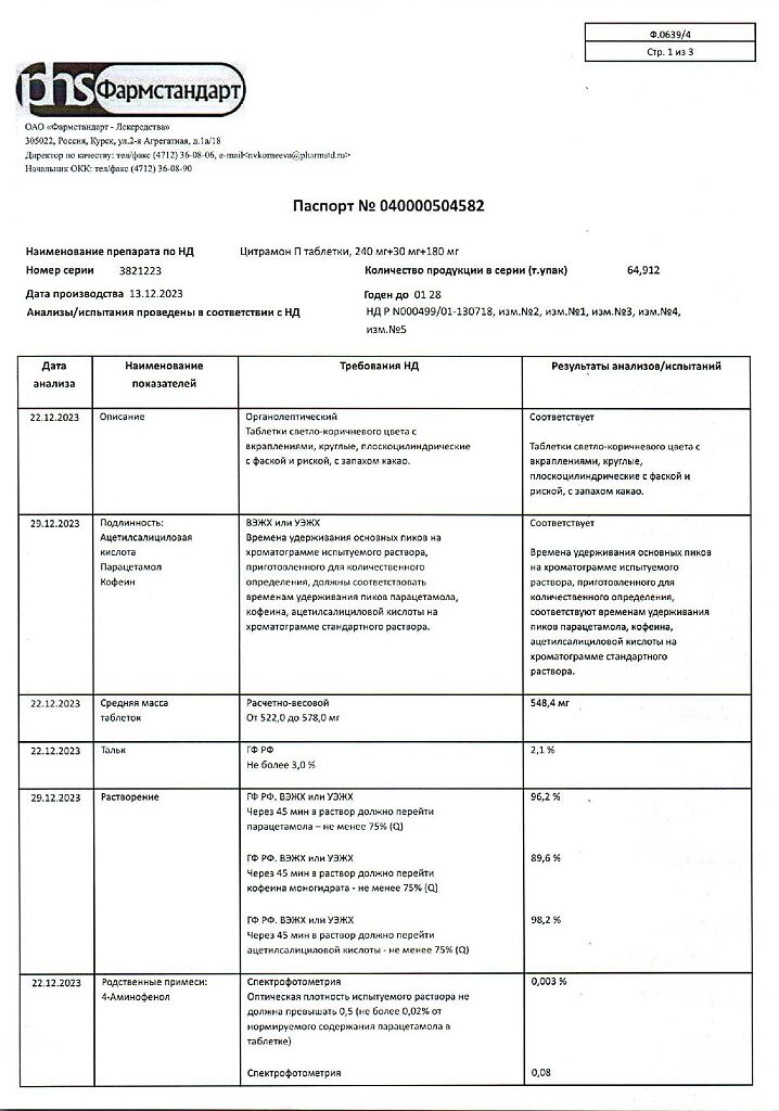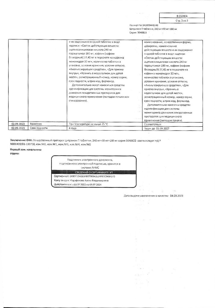 Цитрамон П таблетки 240 мг+30 мг+180 мг 20 шт: 6 отзывов покупателей и фармацевтов