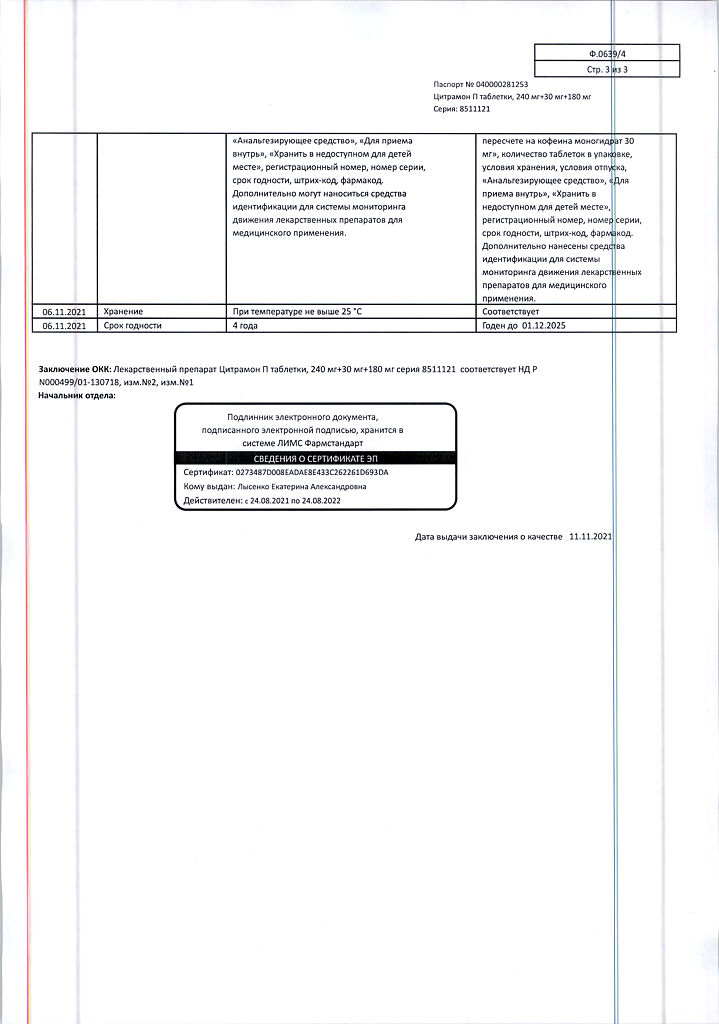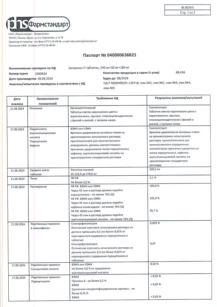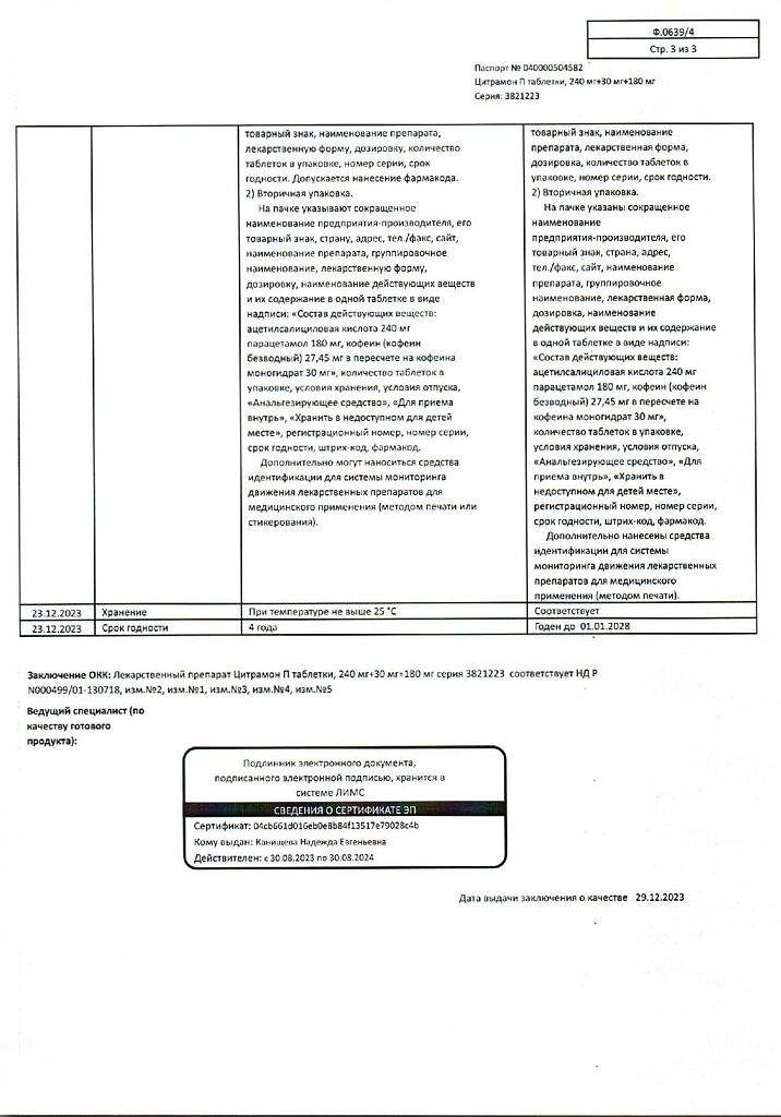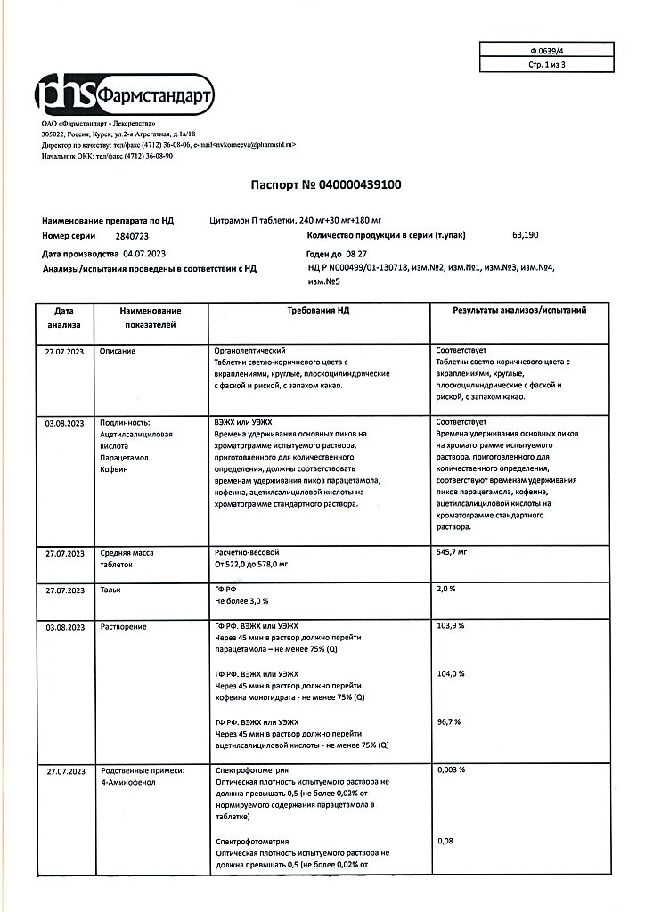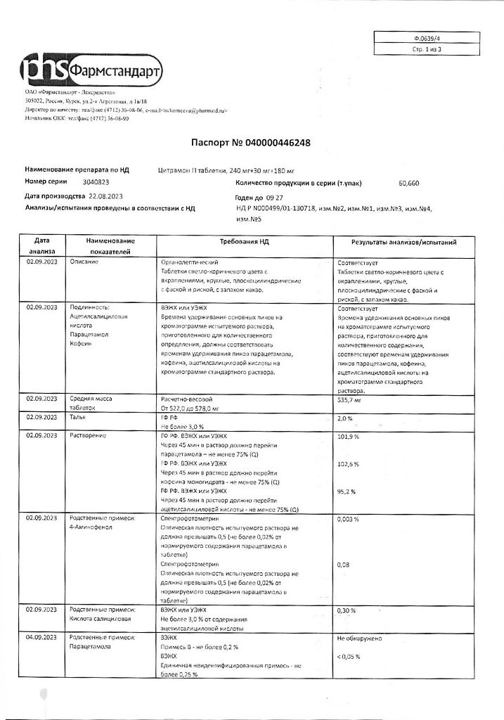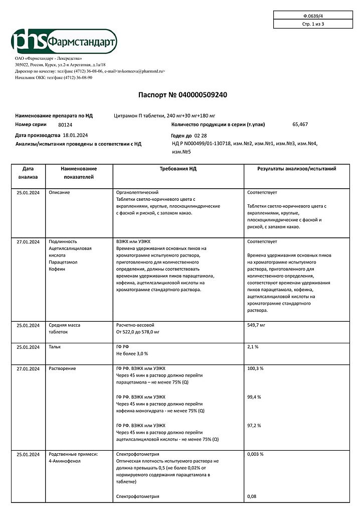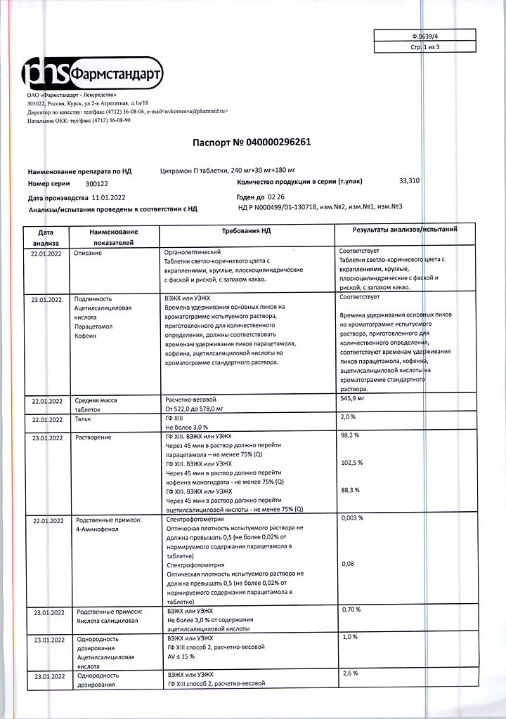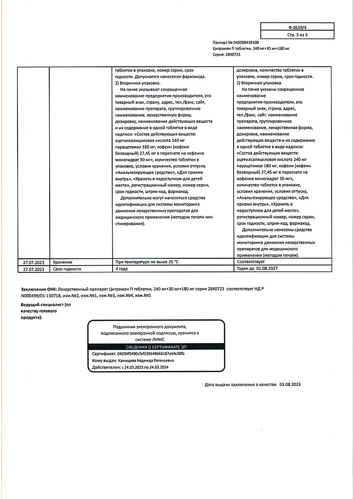 Цитрамон П таблетки 240 мг+30 мг+180 мг 20 шт: 6 отзывов покупателей и фармацевтов