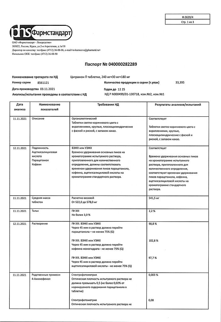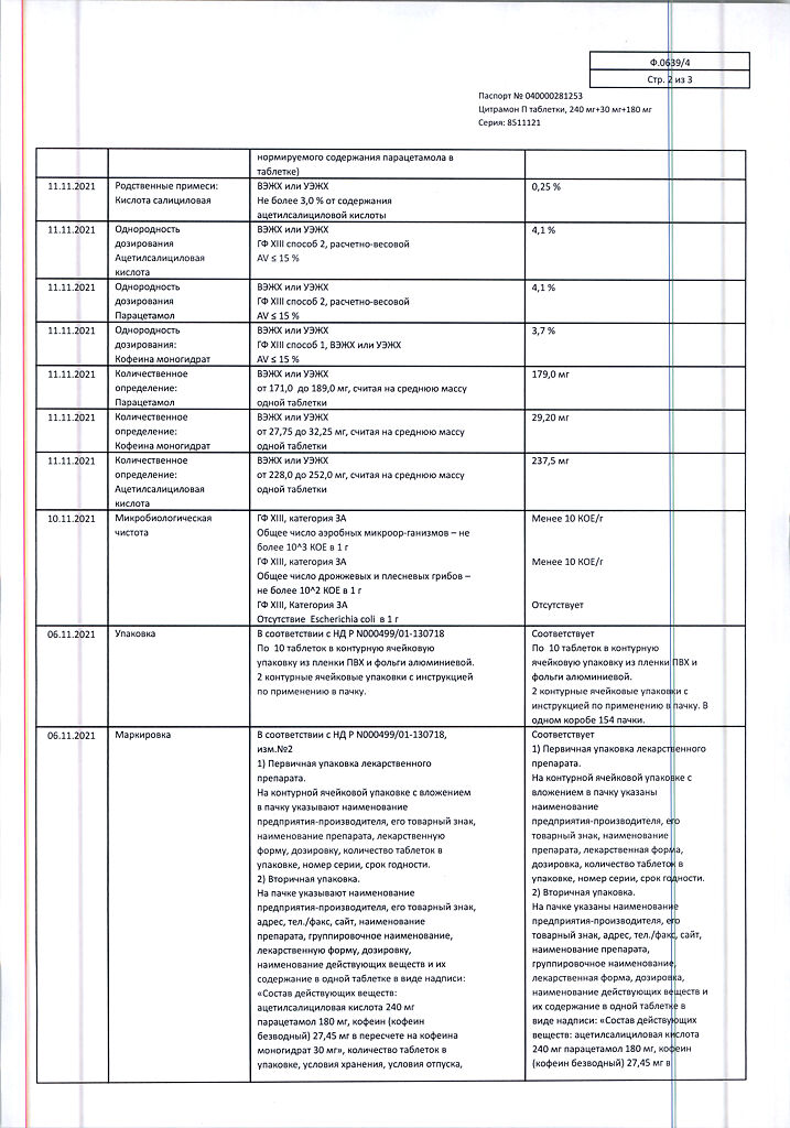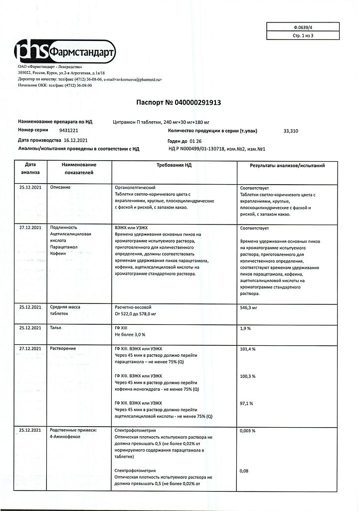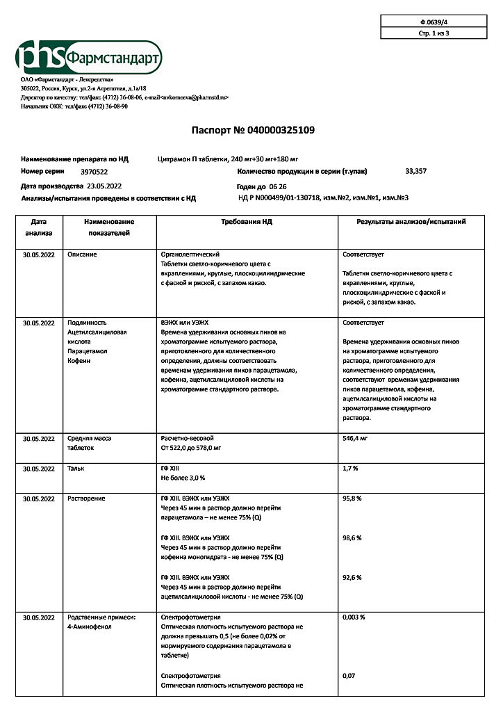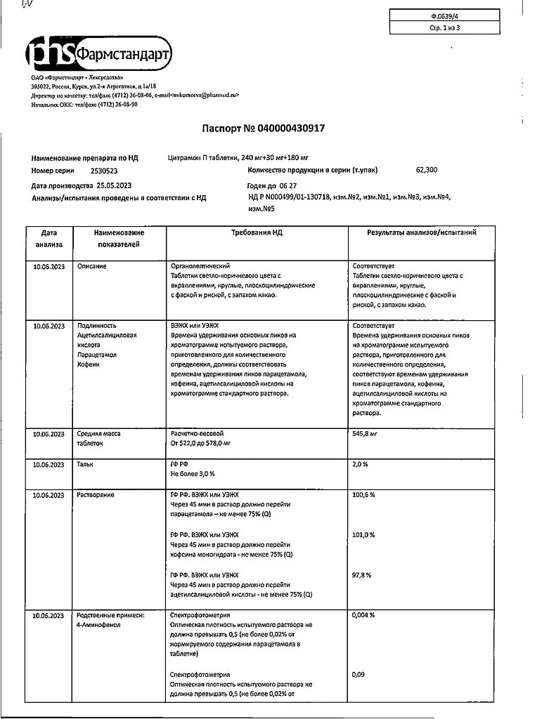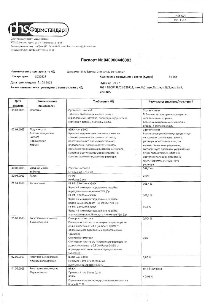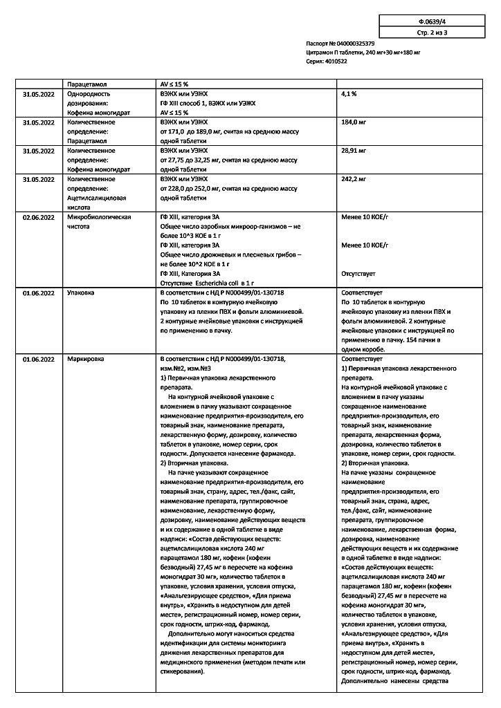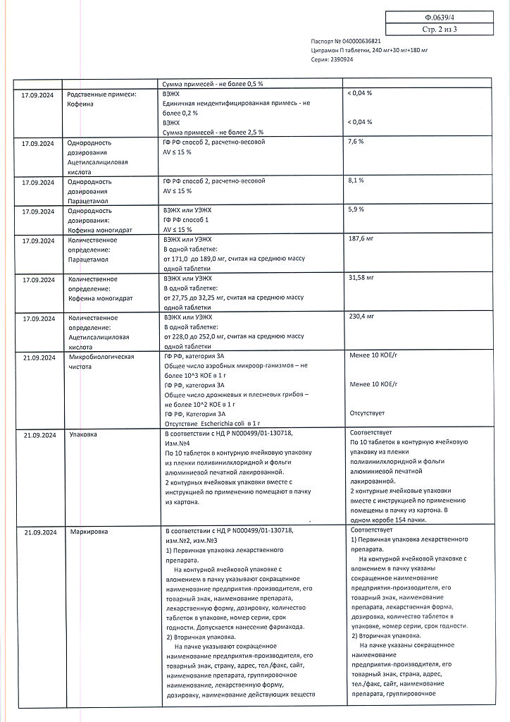 Цитрамон П таблетки 240 мг+30 мг+180 мг 20 шт: 6 отзывов покупателей и фармацевтов