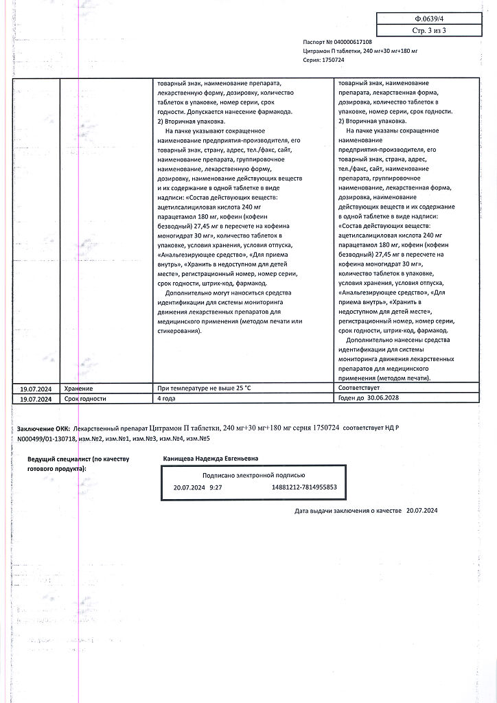 • 📒 Подробная инструкция по применению Цитрамон П таблетки 240 мг+30 мг+180 мг 20 шт