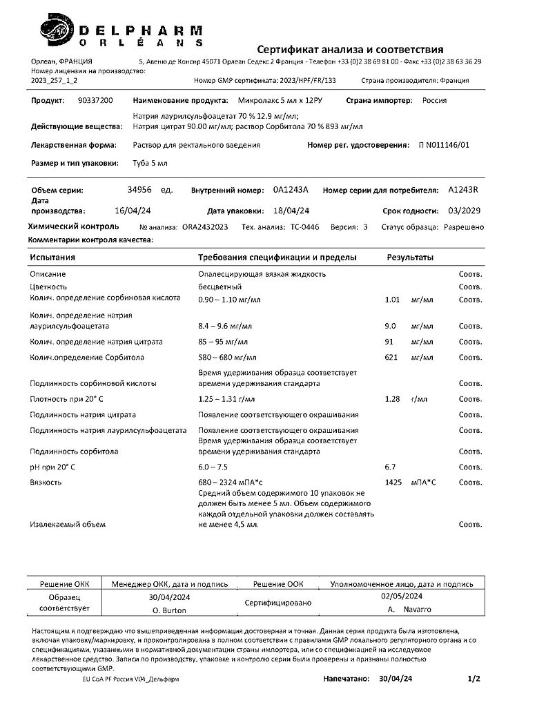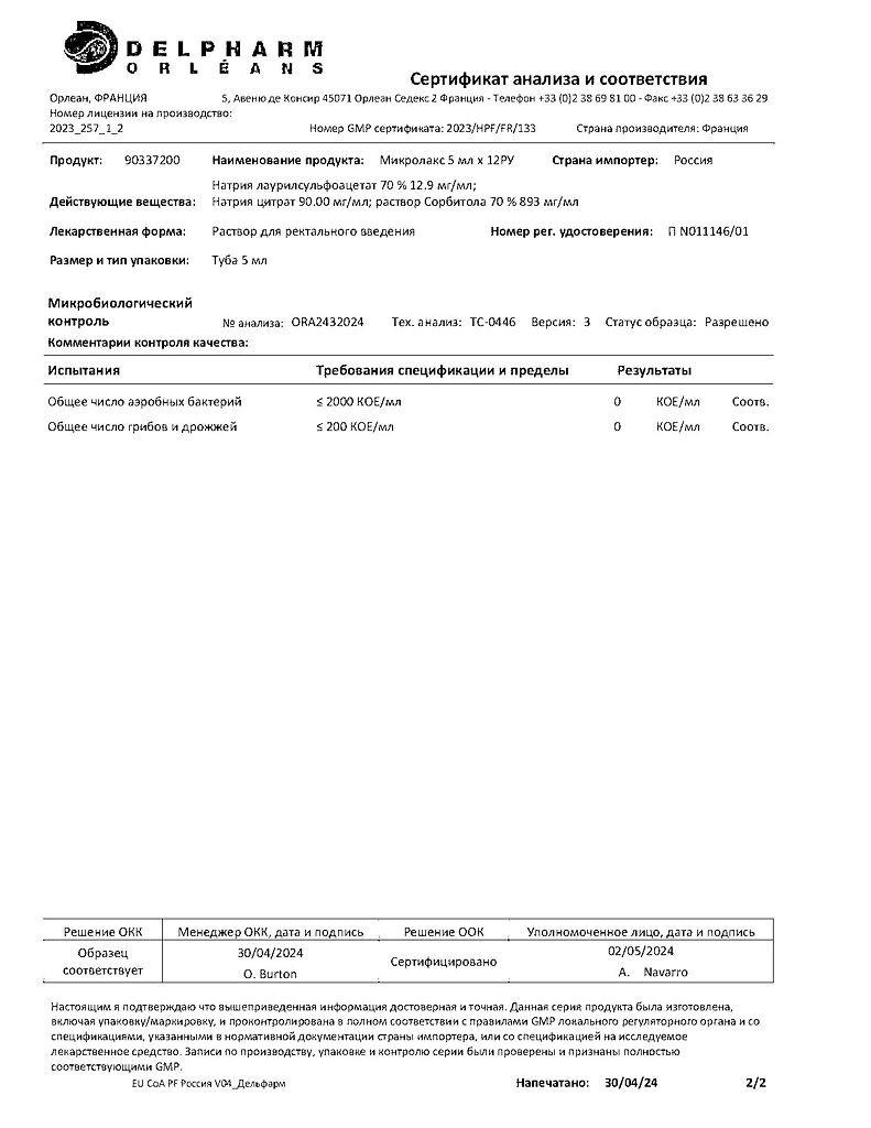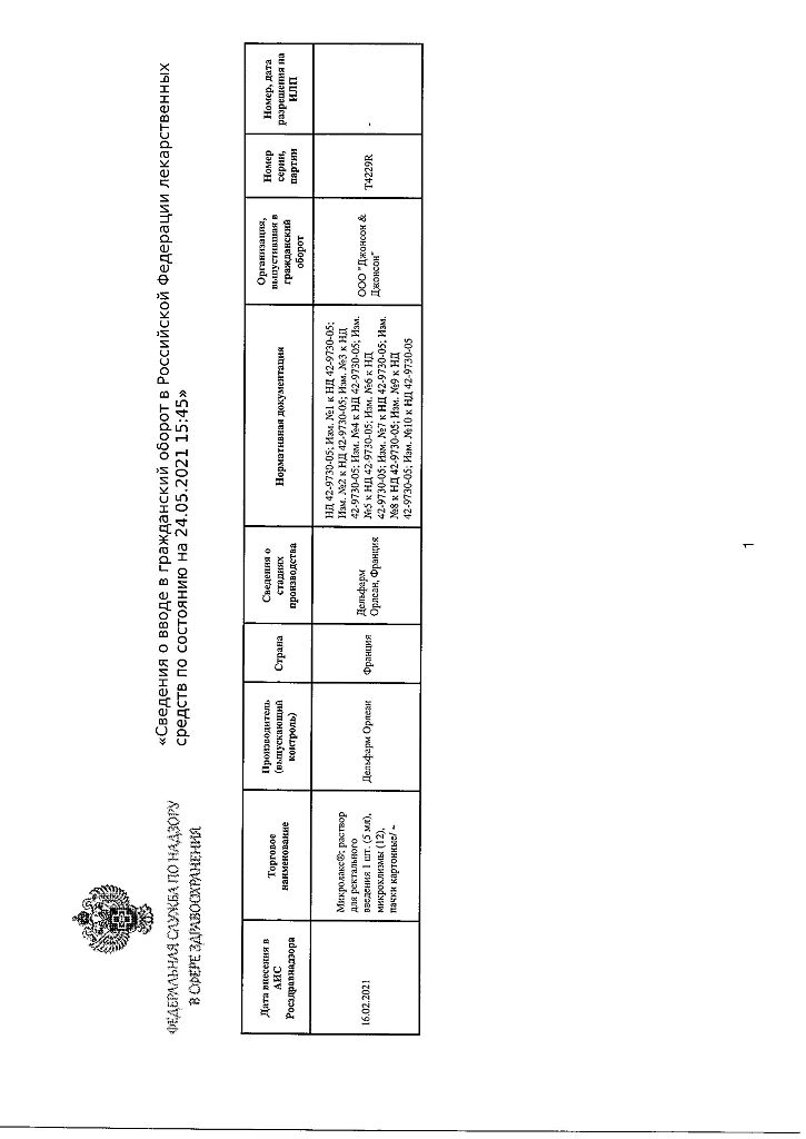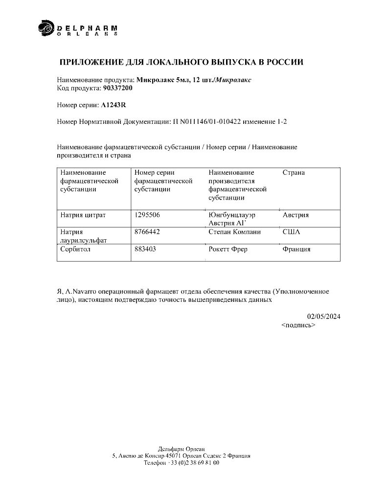 Документы Микролакс раствор для ректального введения 5 мл 12 шт