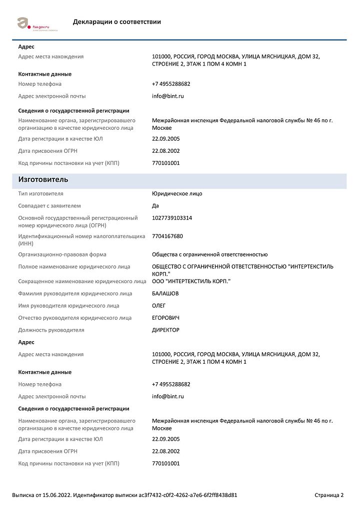 Производитель: ИНТЕРТЕКСТИЛЬ корп., Россия