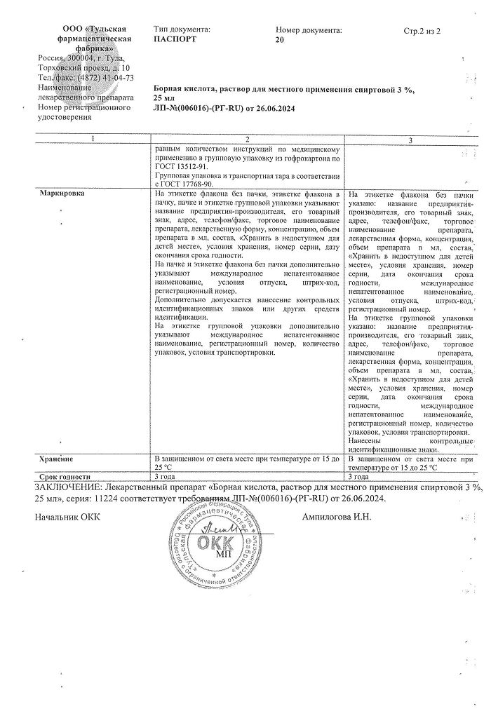 Документы Борная кислота раствор для местного применения 3 % фл 25 мл 1 шт
