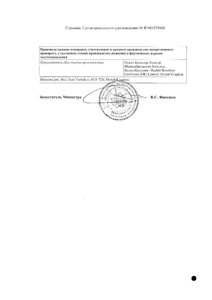 Производитель: Рекитт Бенкизер Хелскэр (Великобритания) Лимитед, Великобритания