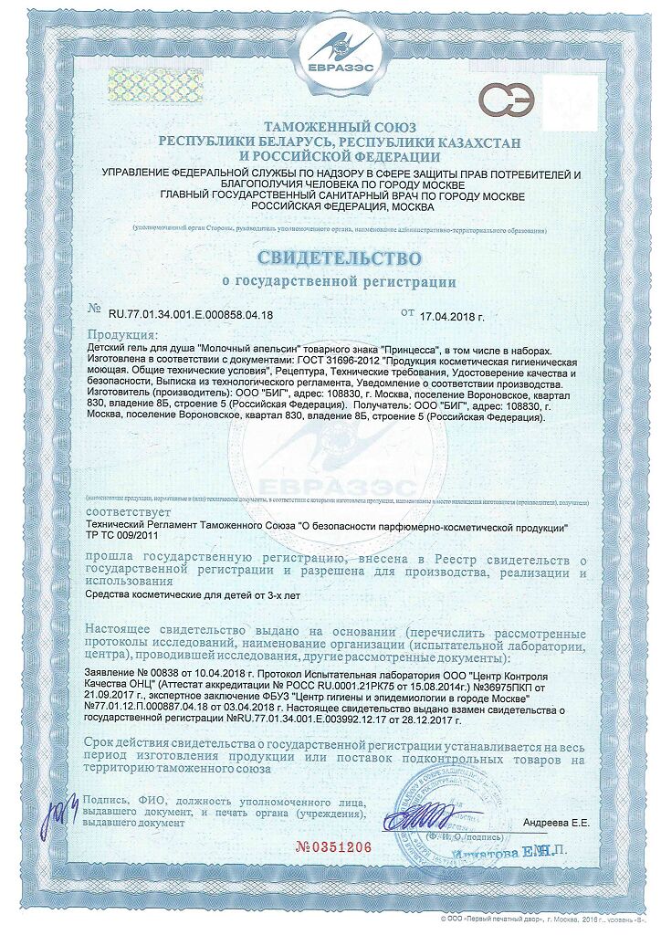 Документы Принцесса Гель для душа детский Молочный апельсин 400 мл 1 шт