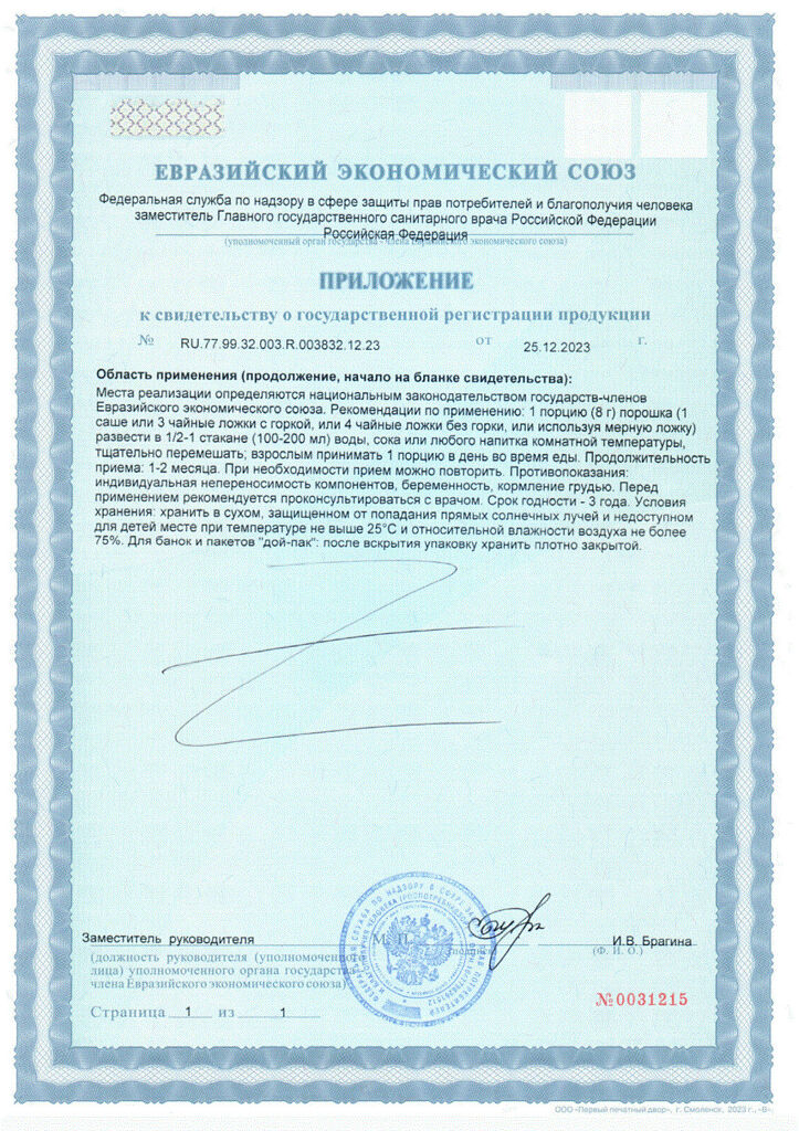 Гидролизат коллагена, мальтодекстрин, загуститель ксантановая камедь, L-аскорбат натрия (витамин С)