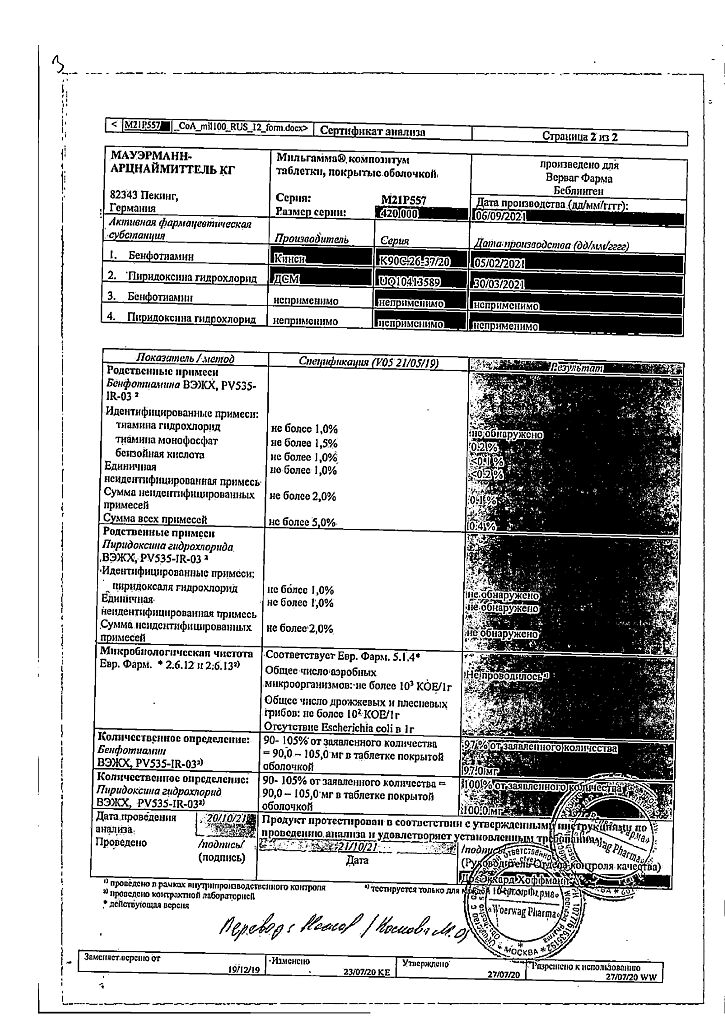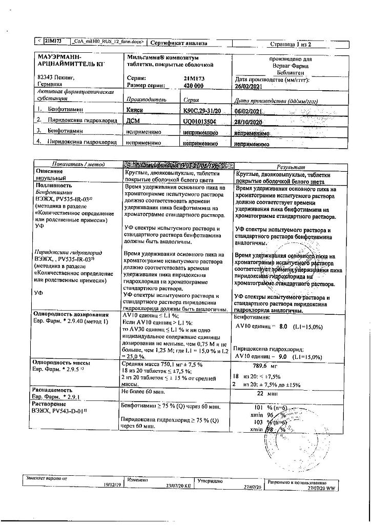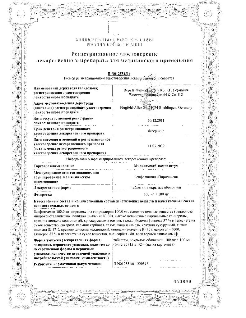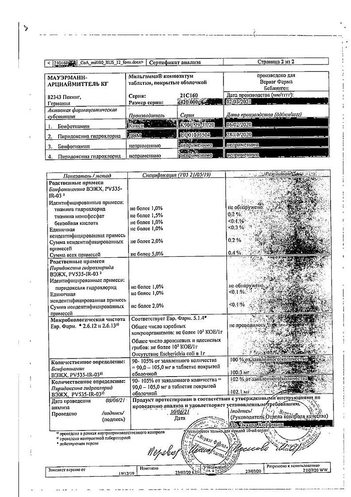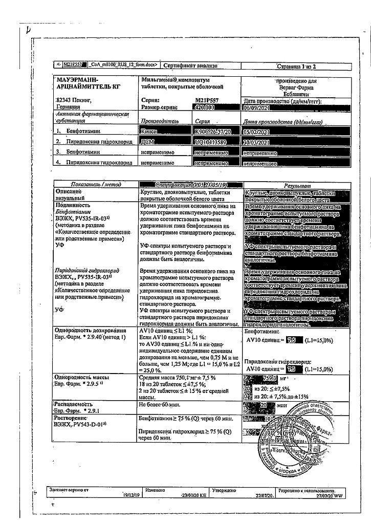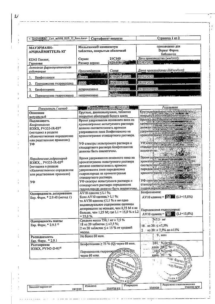 Действующее вещество: Бенфотиамин, Пиридоксин