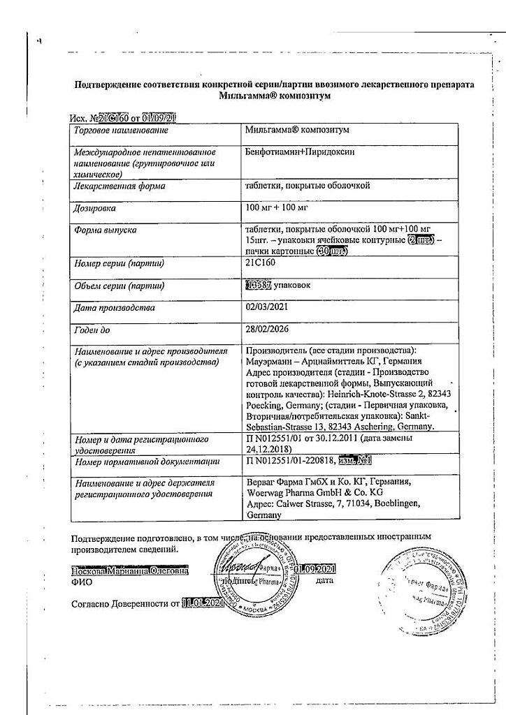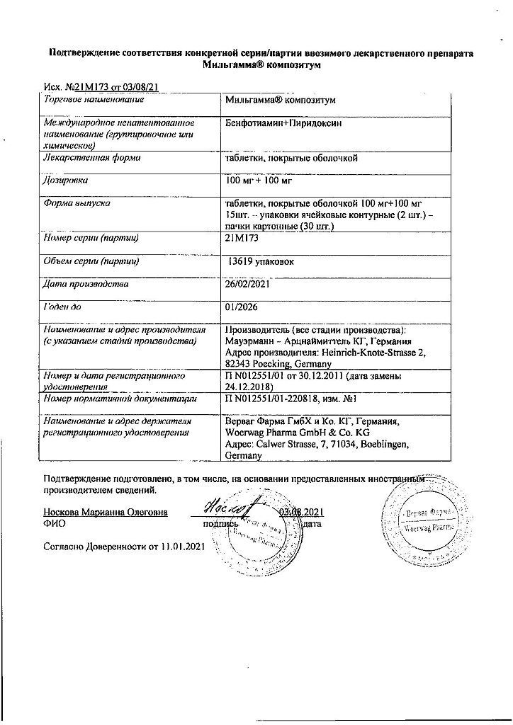 Действующее вещество: Пиридоксин, Тиамин, Цианокобаламин, [Лидокаин]