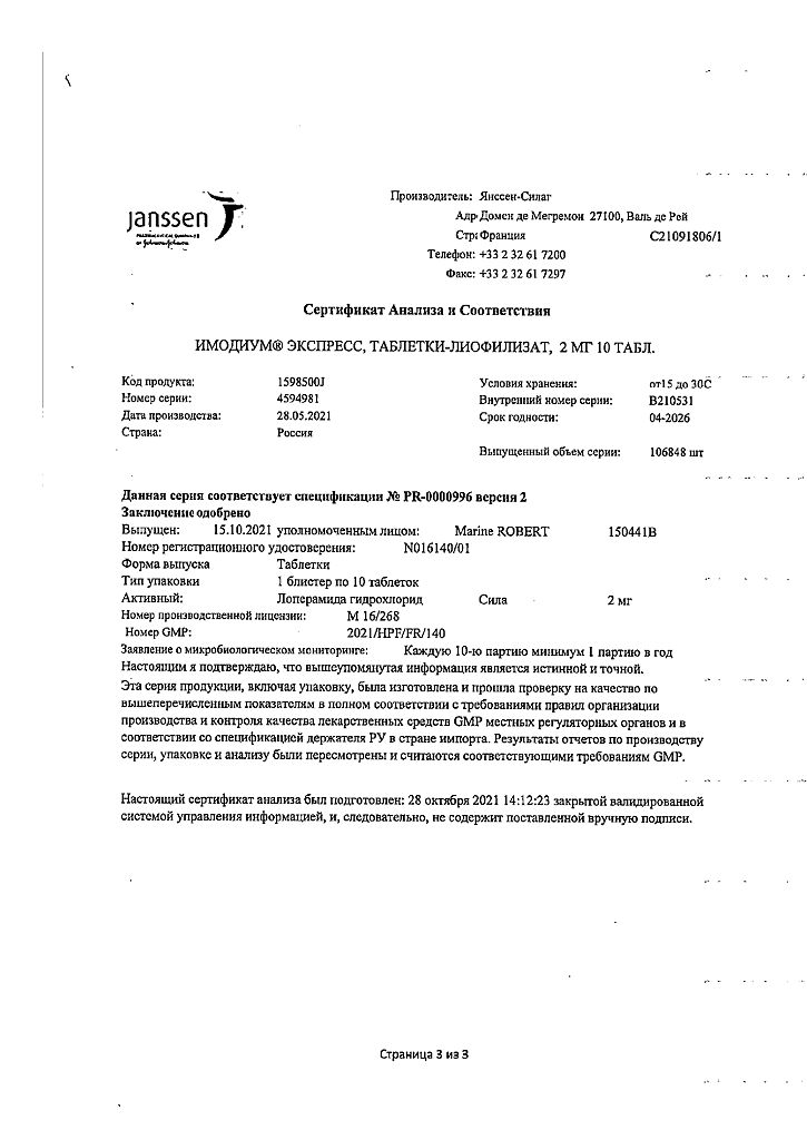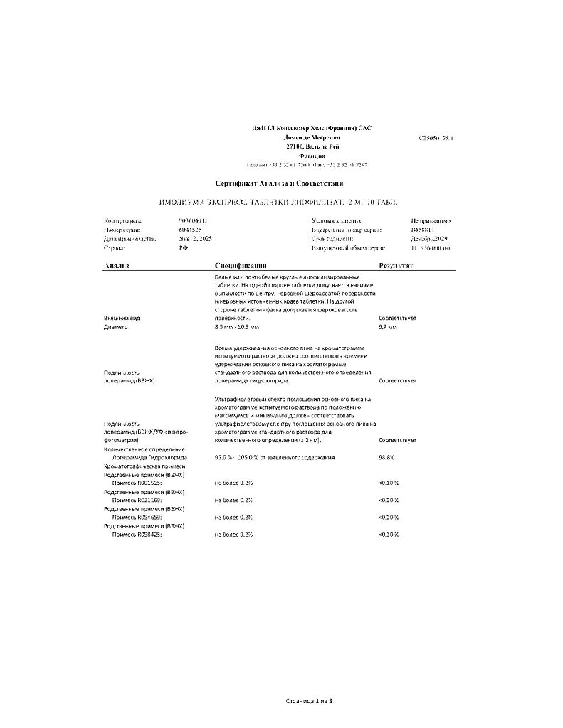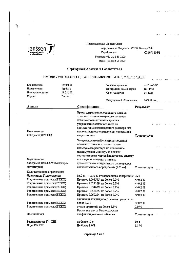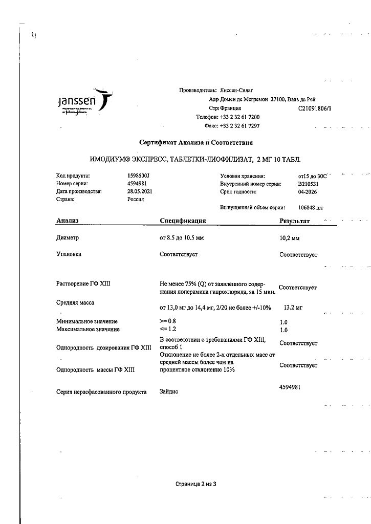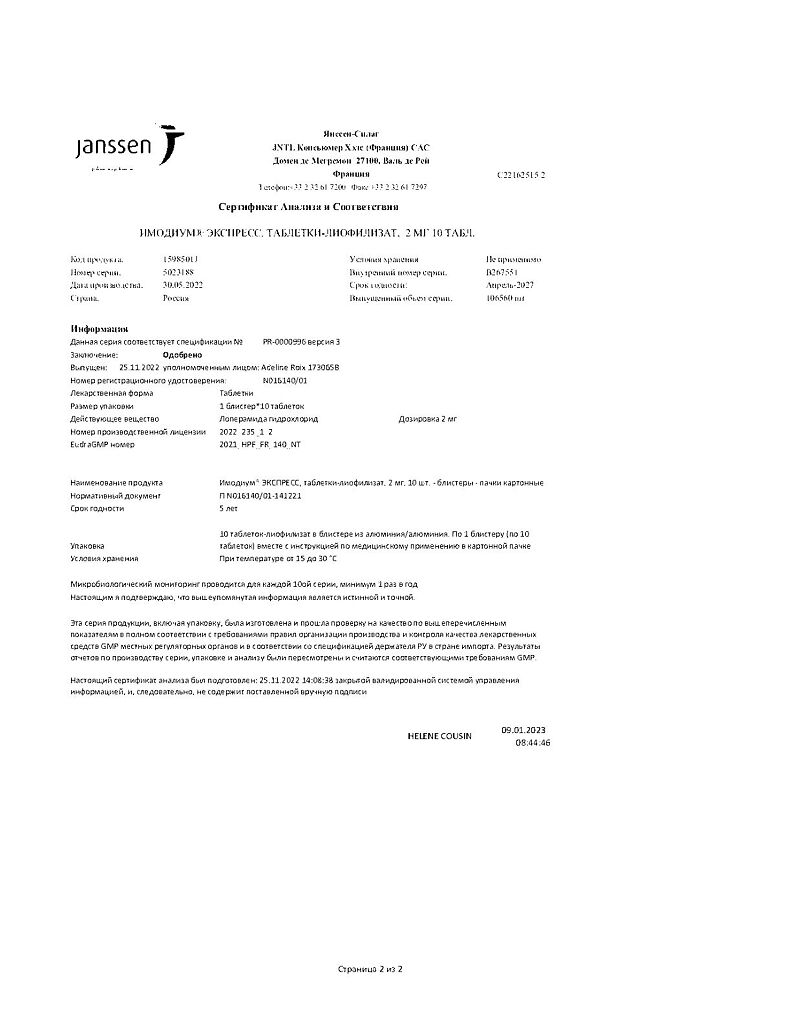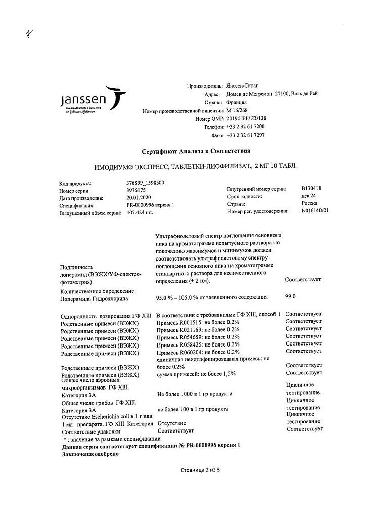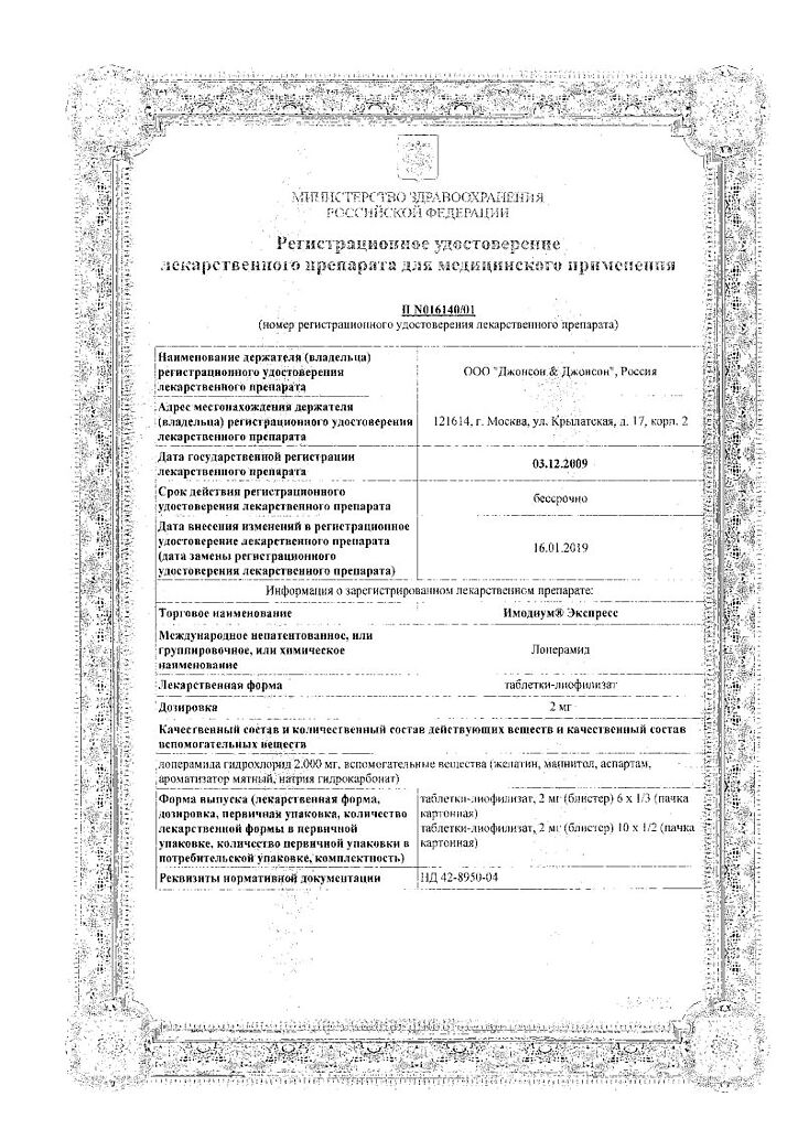 Документы Имодиум Экспресс таблетки-лиофилизат 2 мг 10 шт