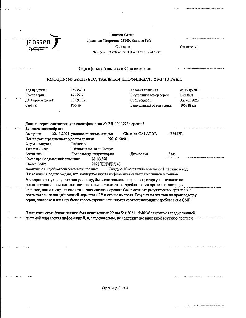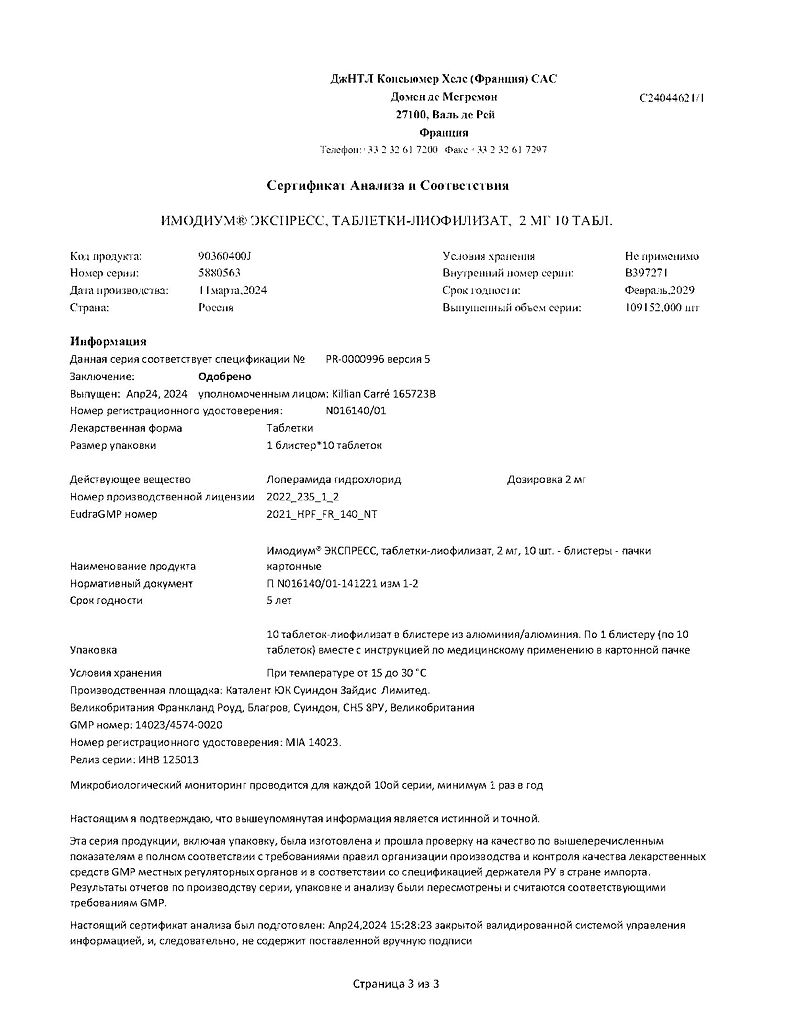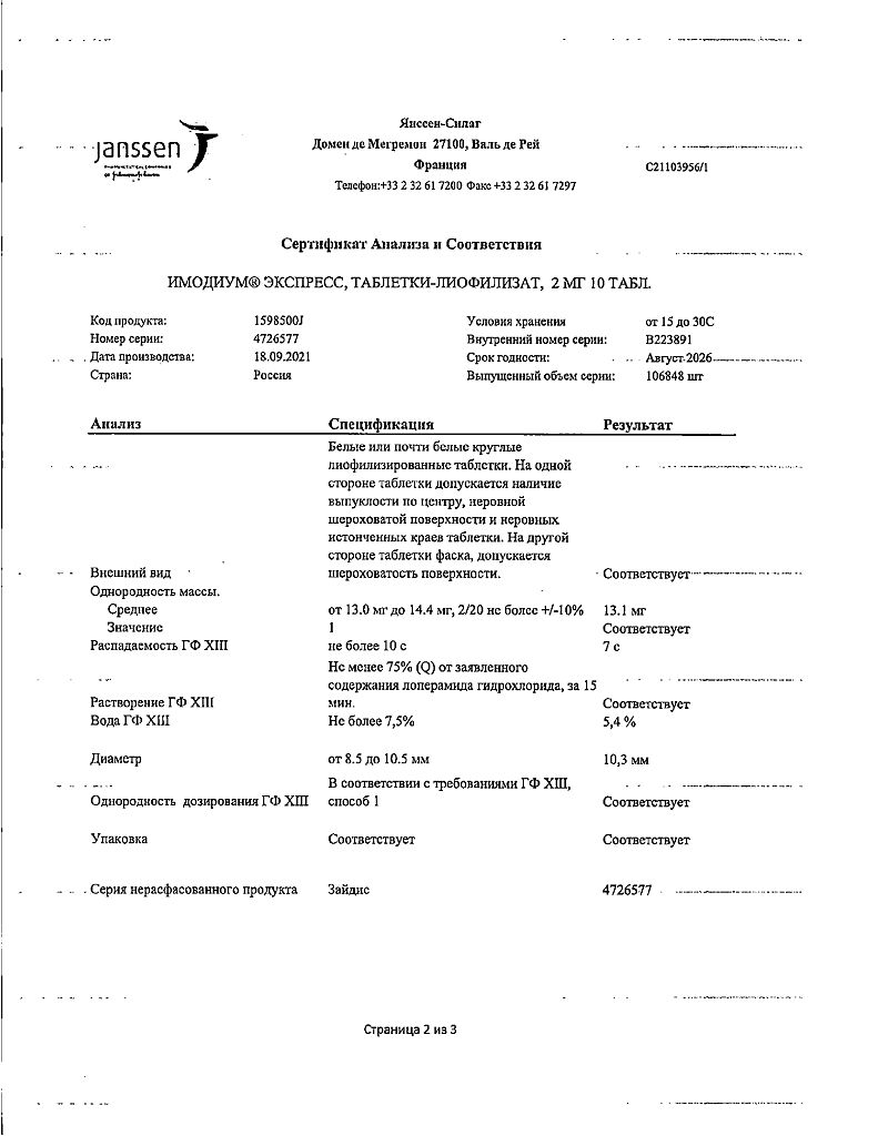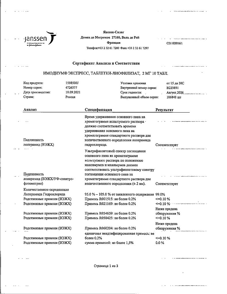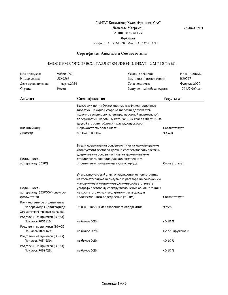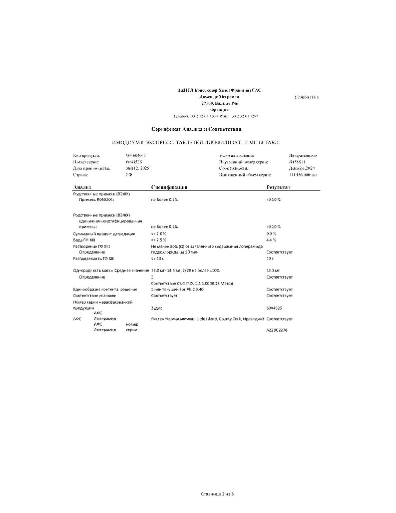 Документы Имодиум Экспресс таблетки-лиофилизат 2 мг 10 шт