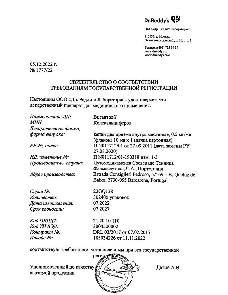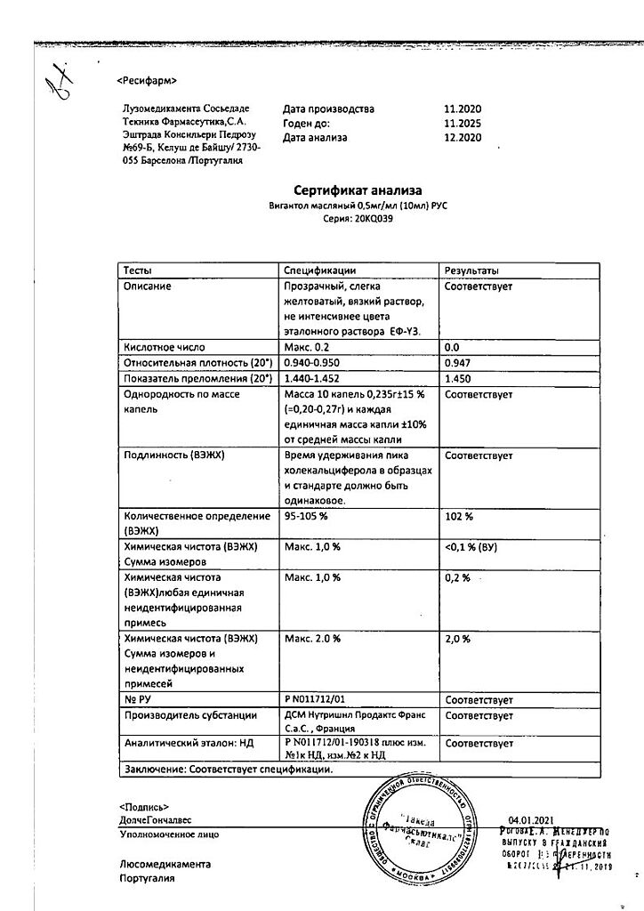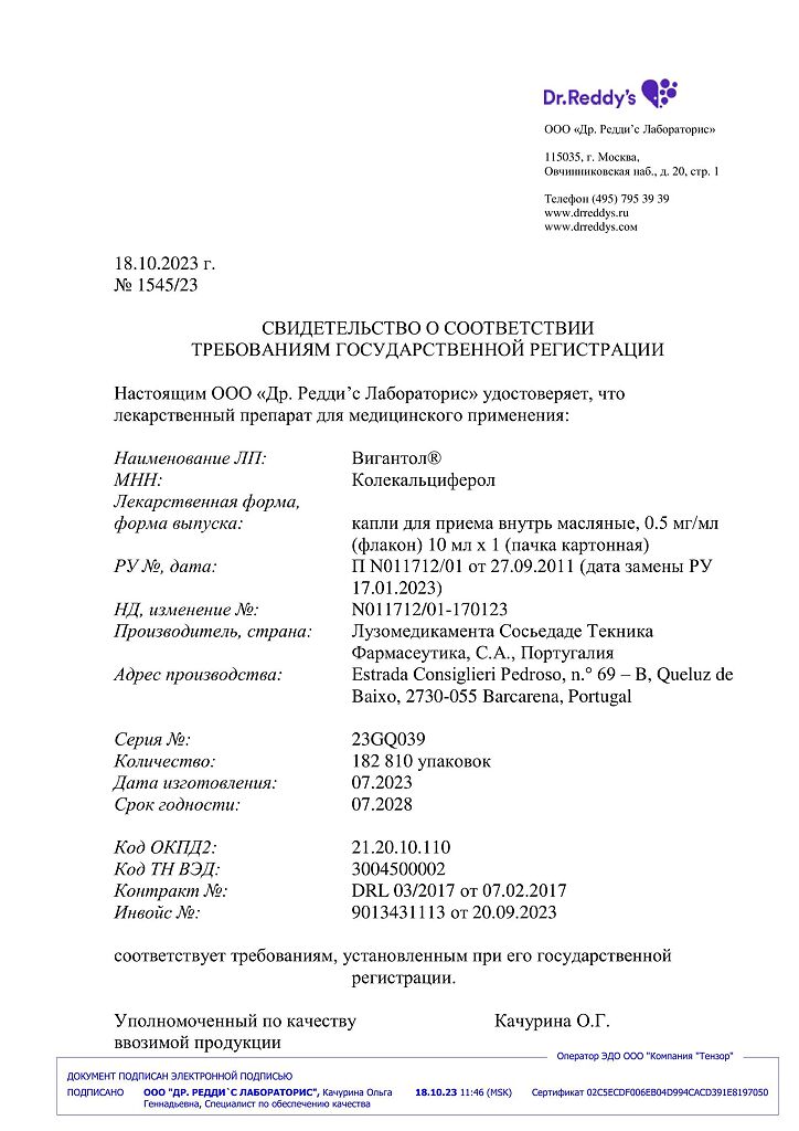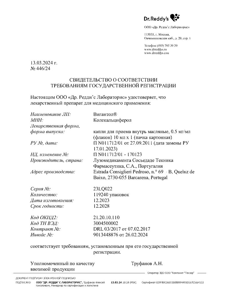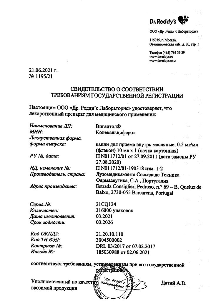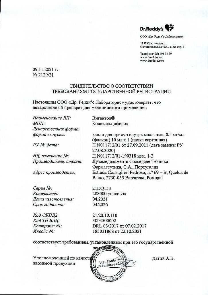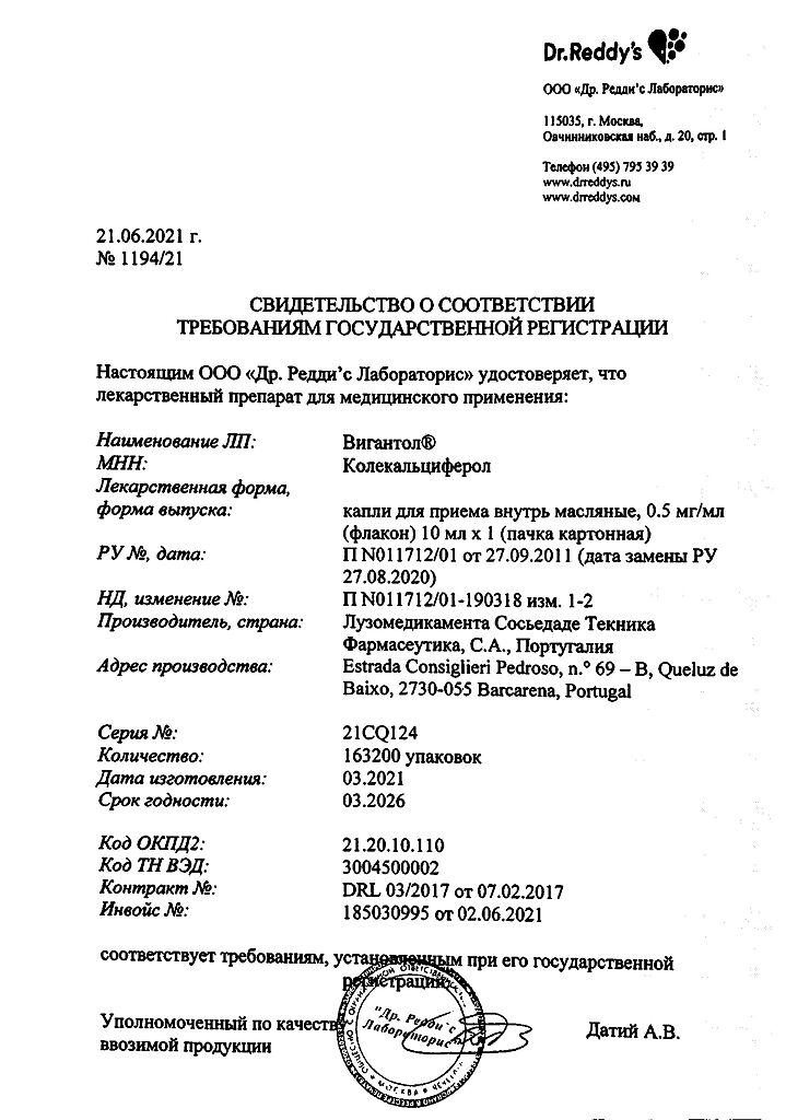 Действующее вещество: Колекальциферол