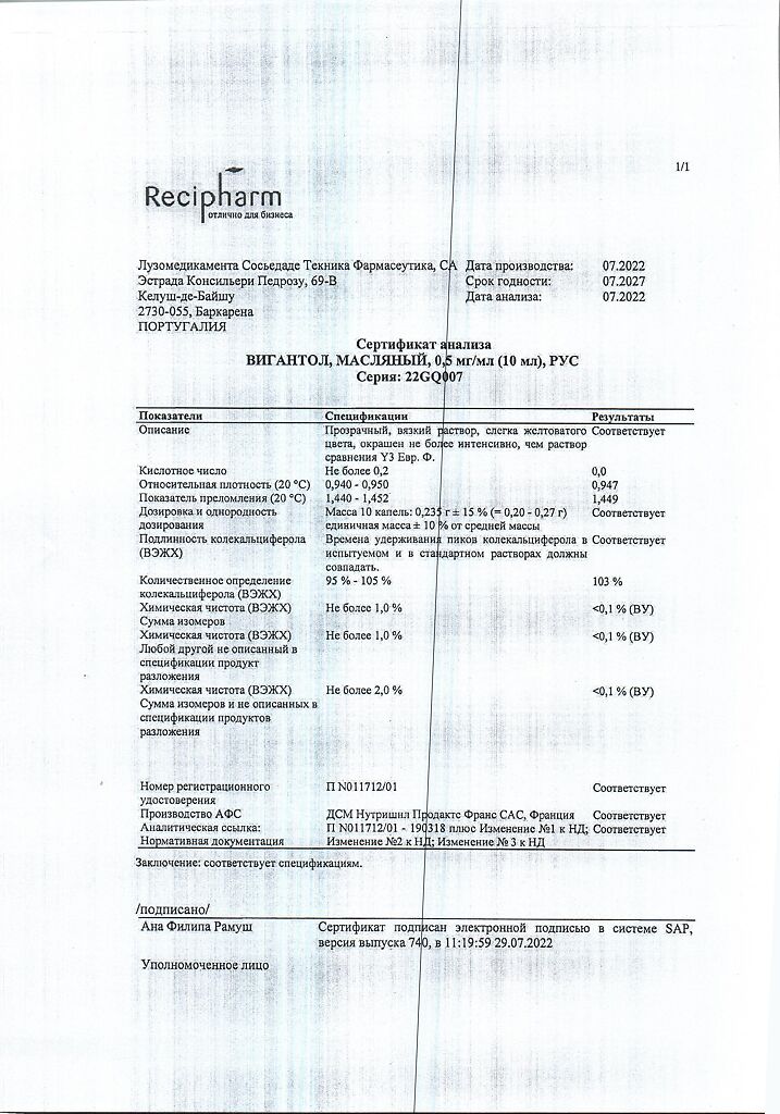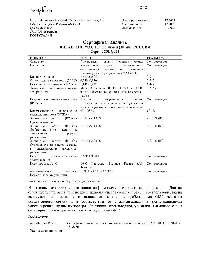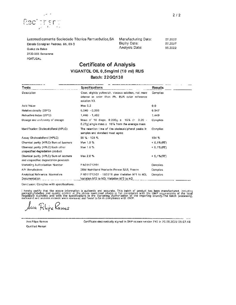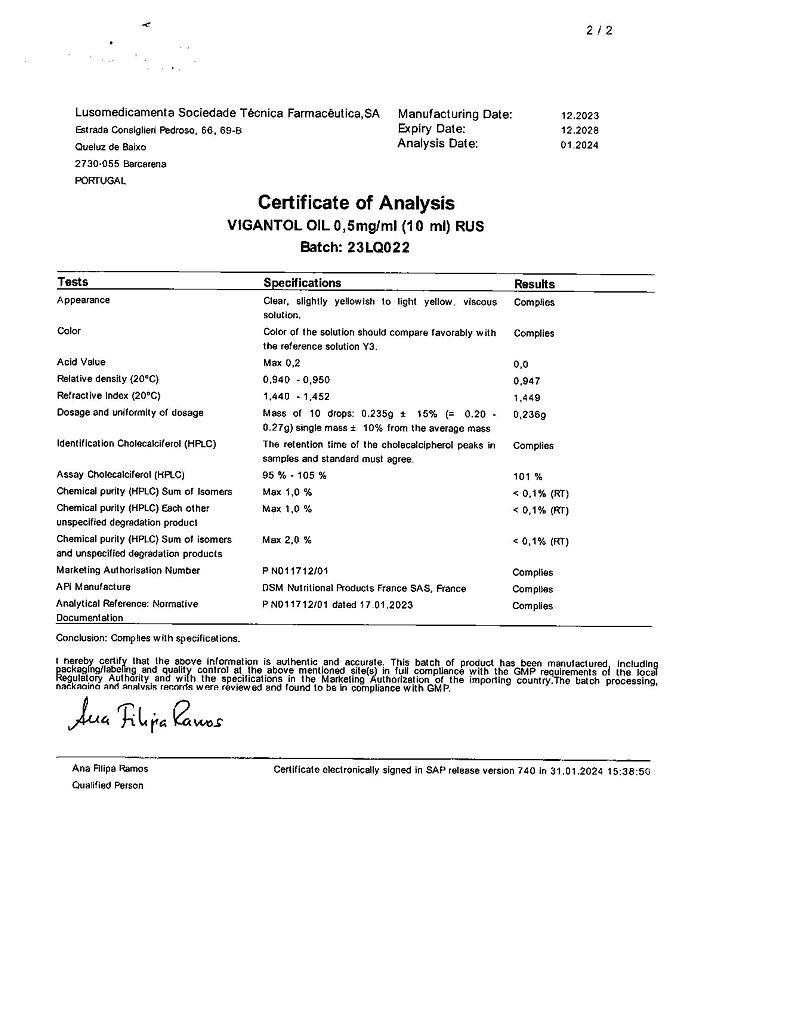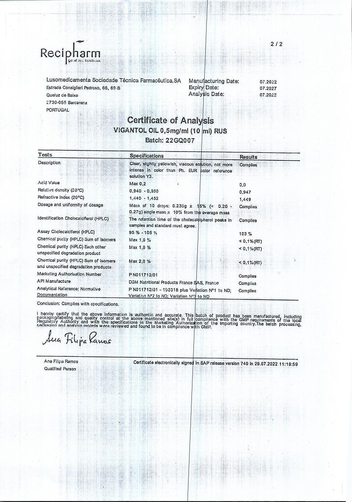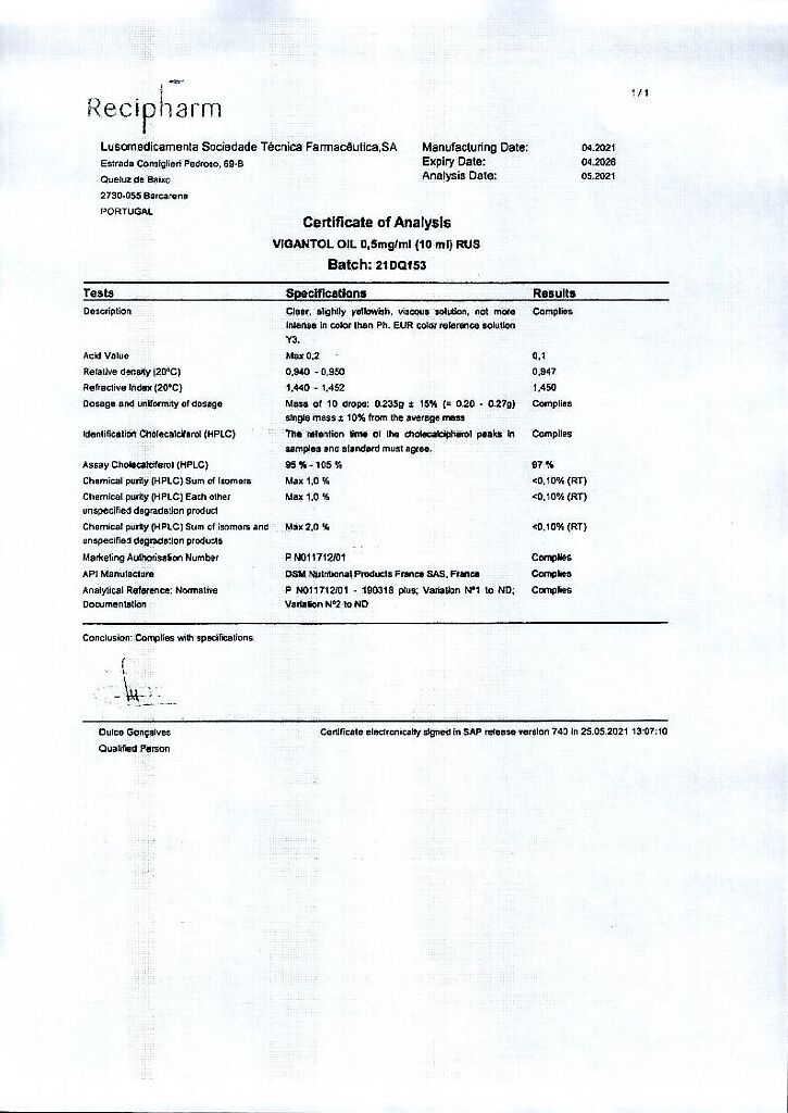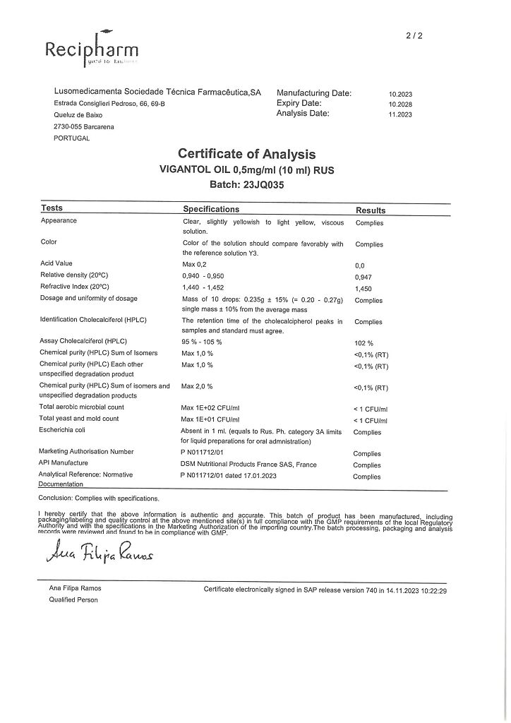 Действующее вещество: Колекальциферол