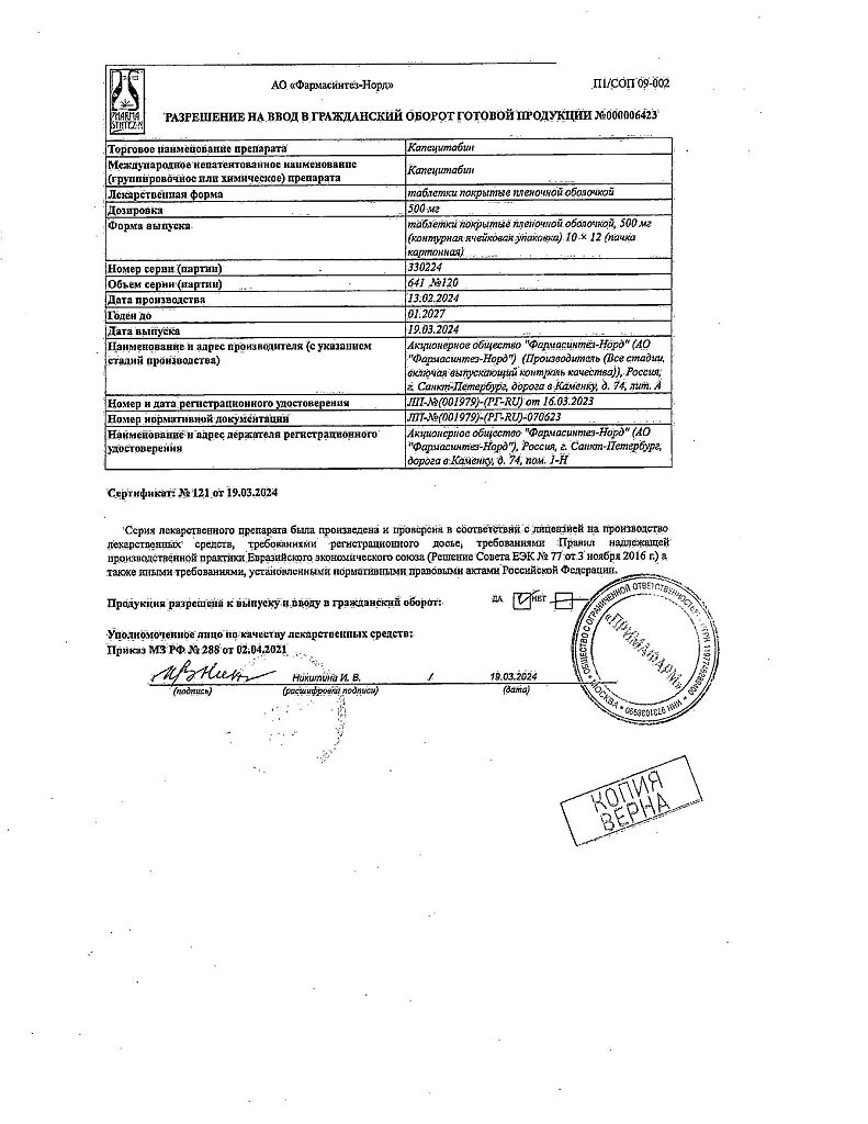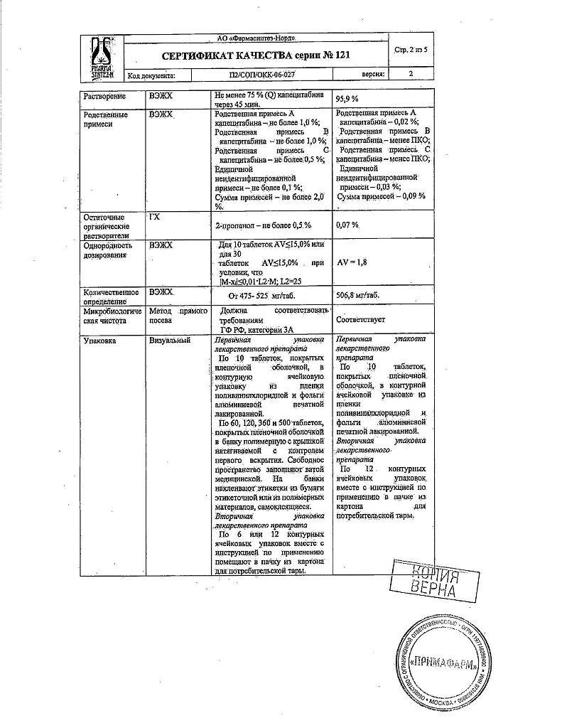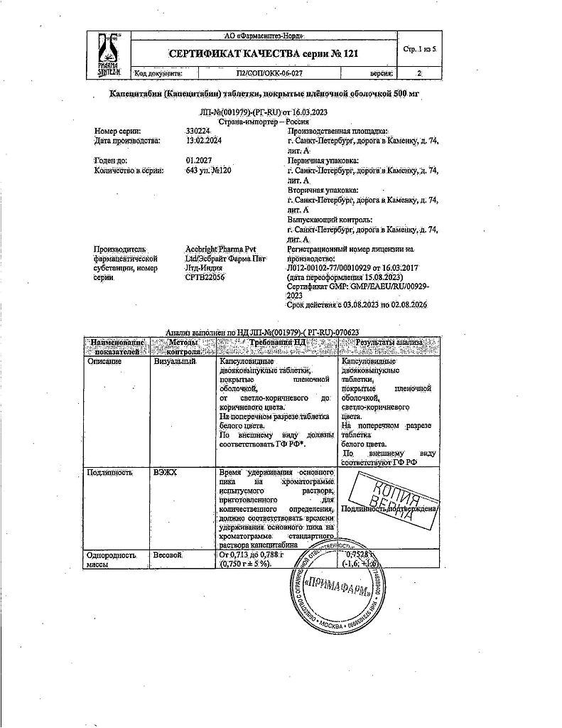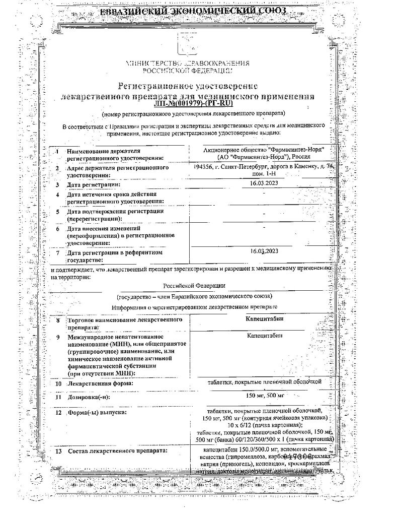 Документы Капецитабин таблетки покрыт.плен.об. 500 мг 120 шт