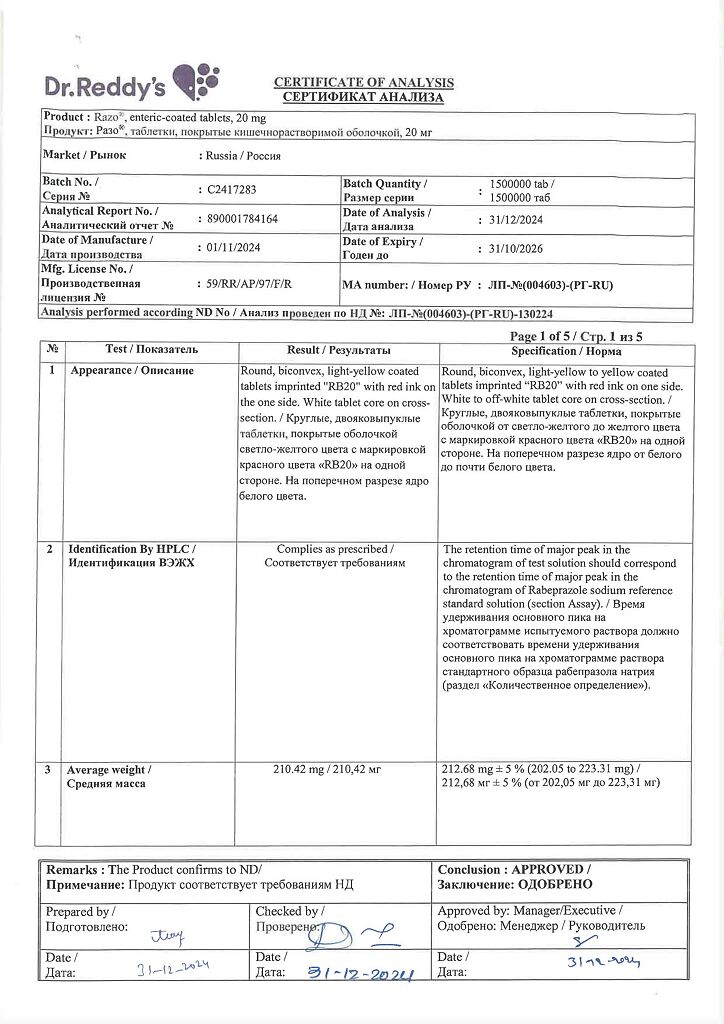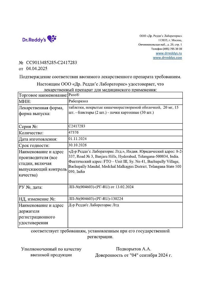 Производитель: Д-р Редди`с Лабораторис Лтд, Индия