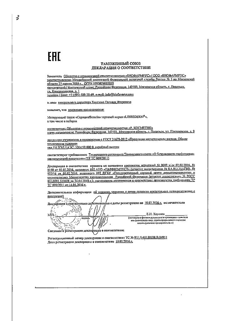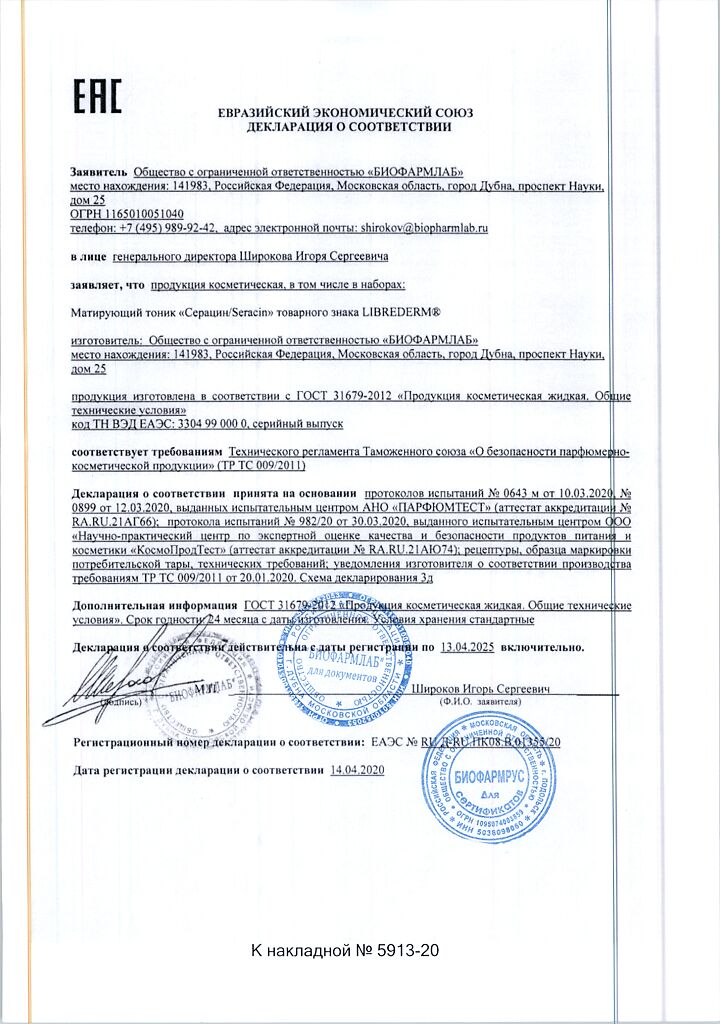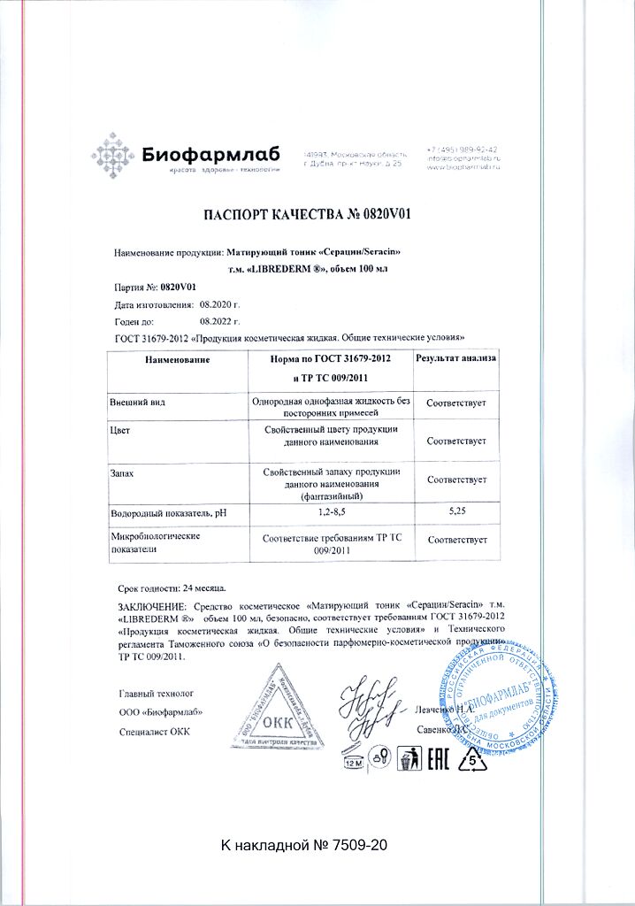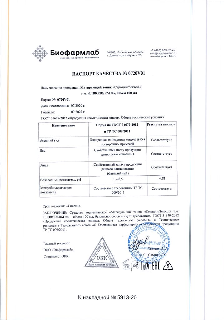 Документы Либридерм (Librederm) Seracin Тоник матирующий 100 мл 1 шт