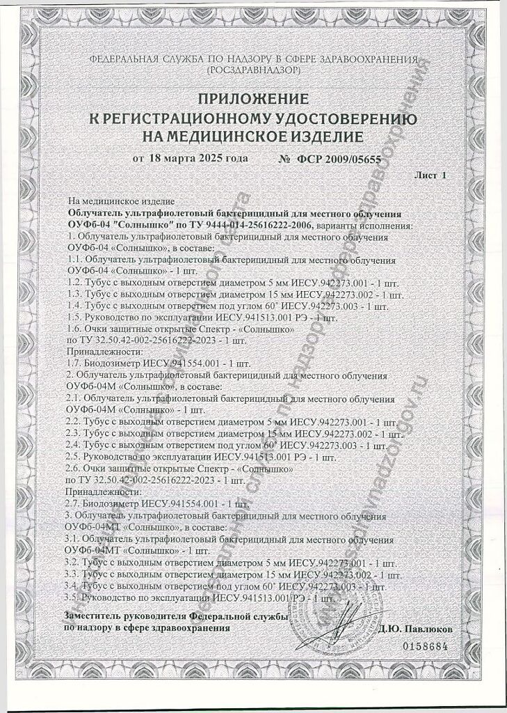 • Облучатель ультрафиолетовый для местного облучения ОУФб-04 "Солнышко" – 1 шт.