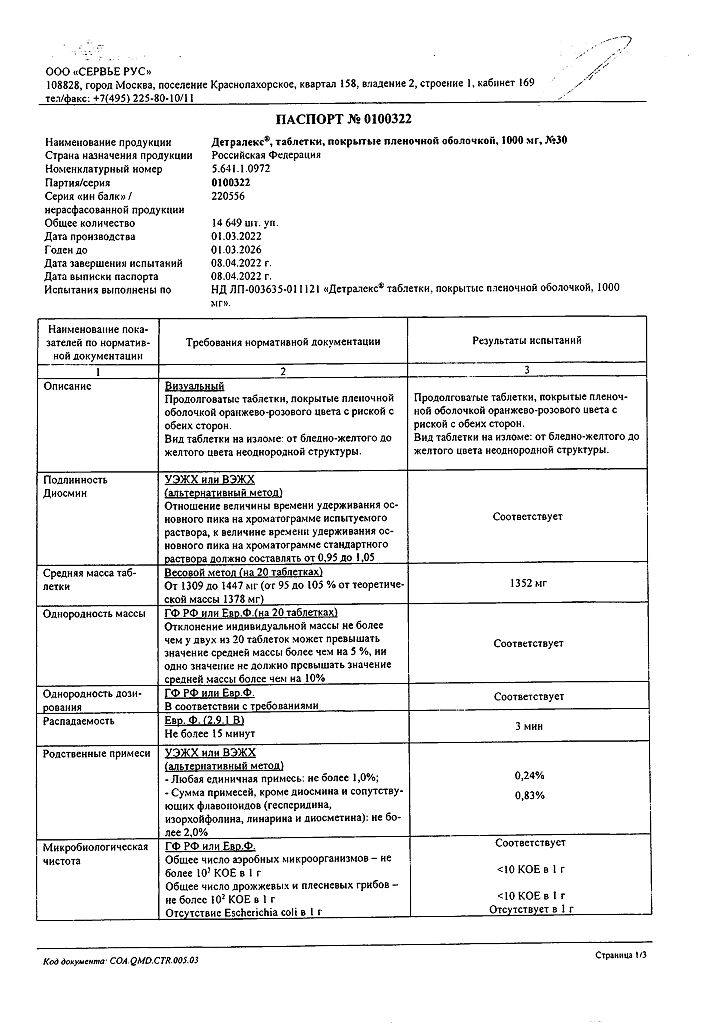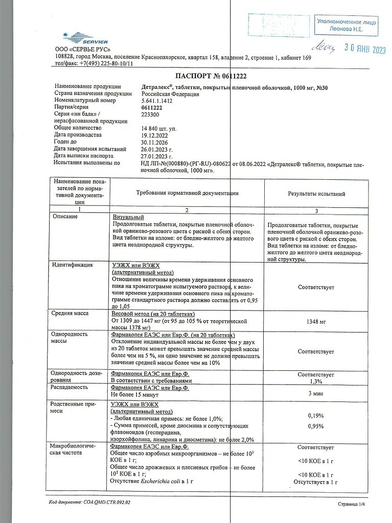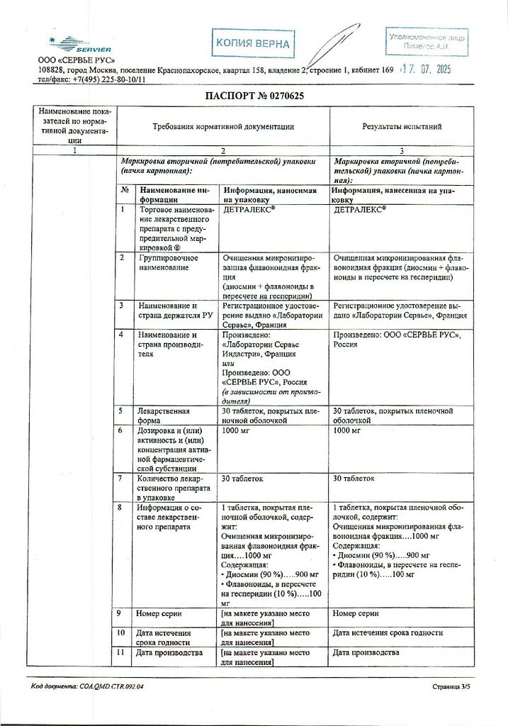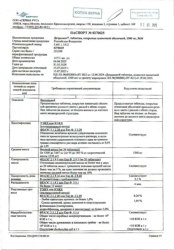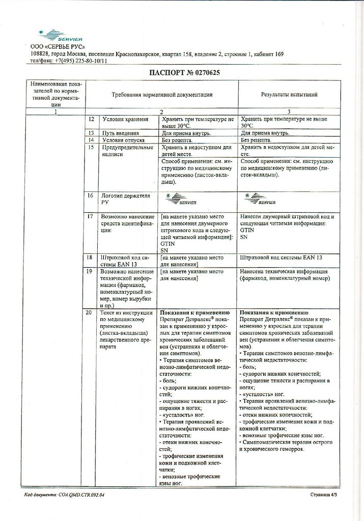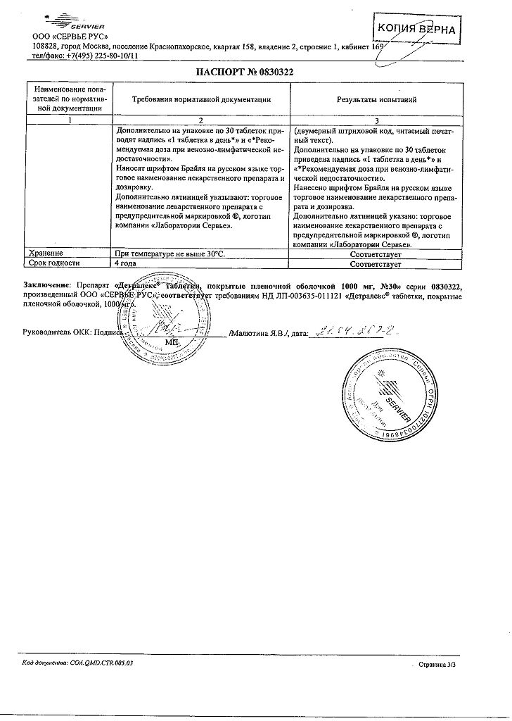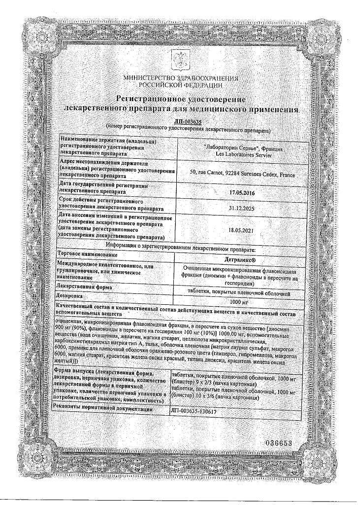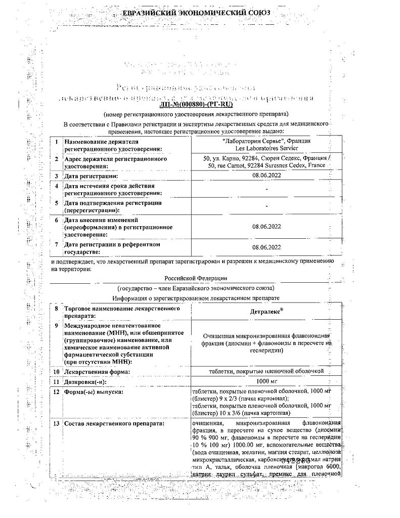 Документы Детралекс таблетки покрыт.плен.об. 1000 мг 30 шт