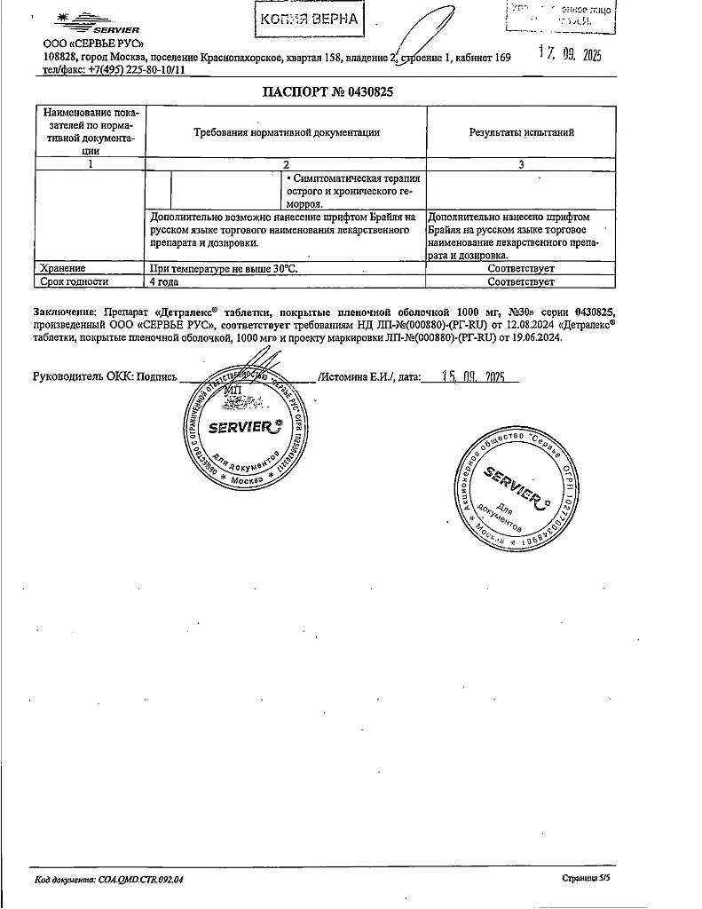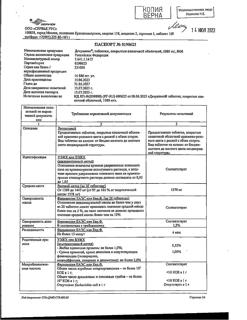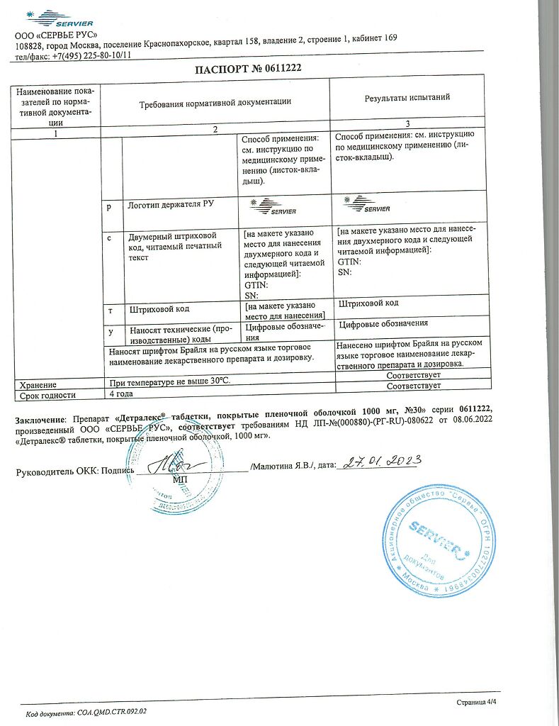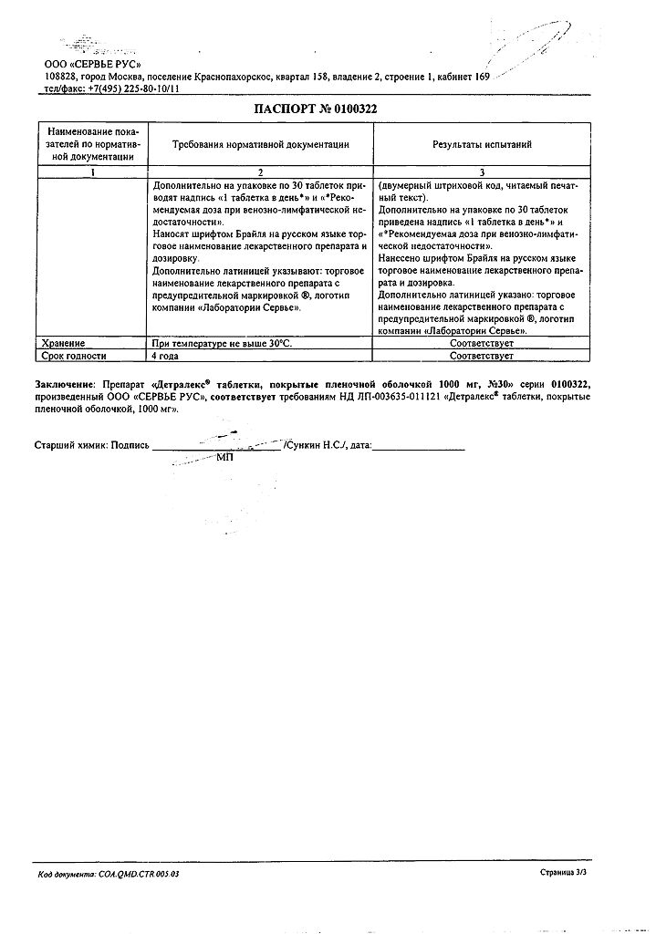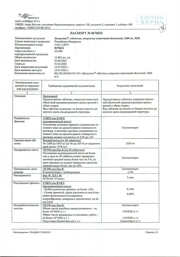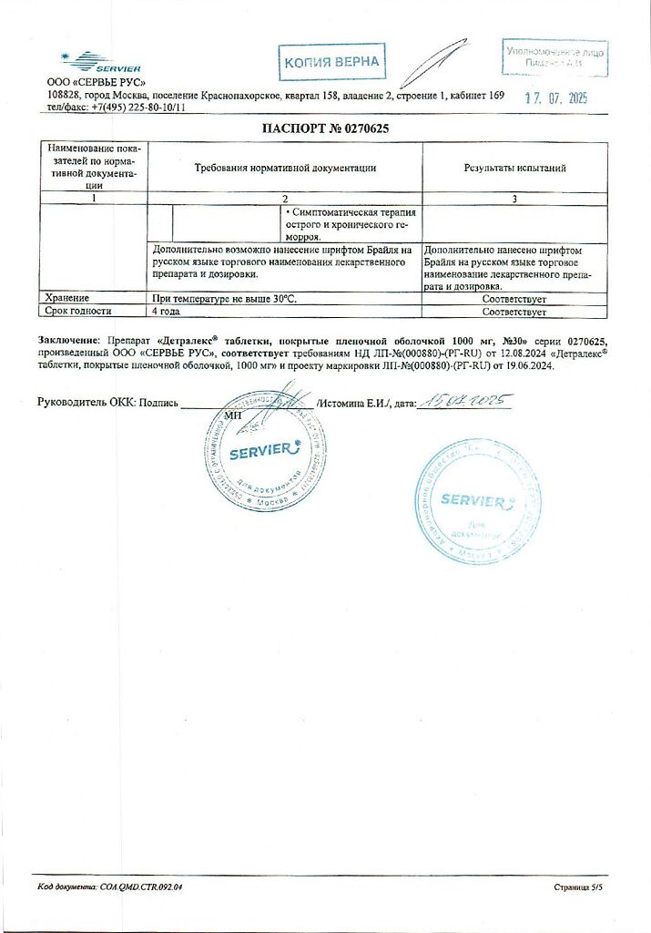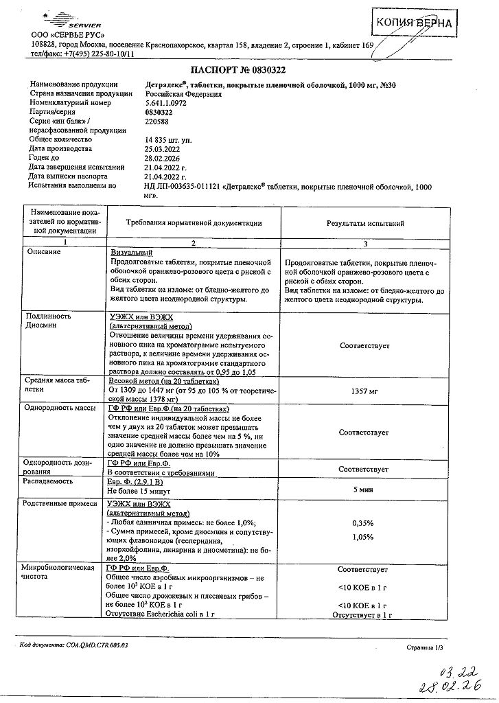 Документы Детралекс таблетки покрыт.плен.об. 1000 мг 30 шт