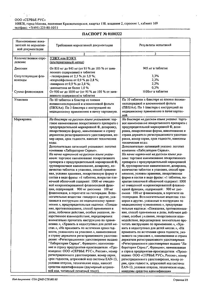 Действующее вещество: Очищенная микронизированная флавоноидная фракция (диосмин , флавоноиды в пересчете на гесперидин)