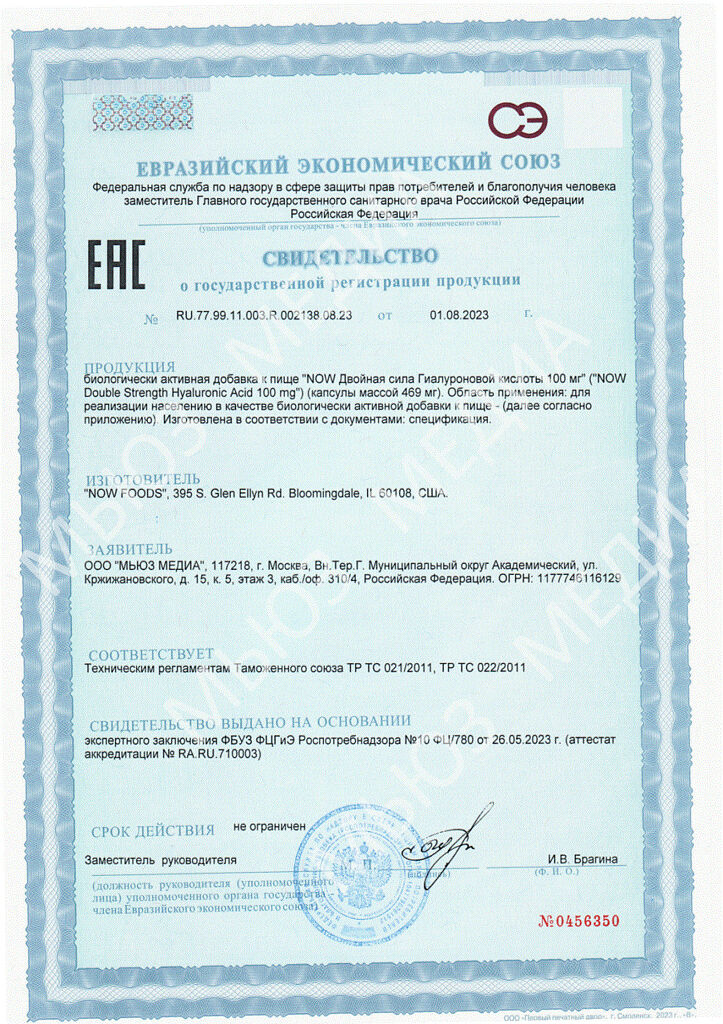 Гиалуроновая кислота (из Na гиалуроната) - 100 мг;
