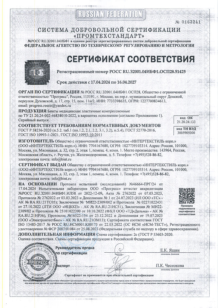 Производитель: ИНТЕРТЕКСТИЛЬ корп., Россия